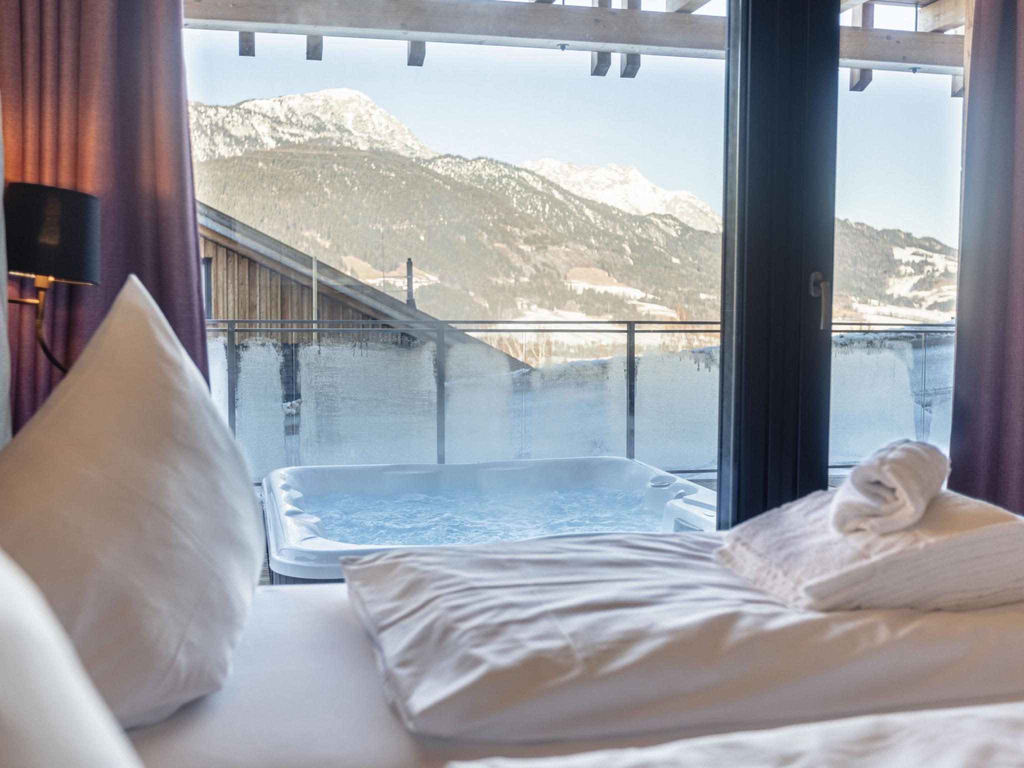 "Superior 3 SZ Sauna & Aussenbadewanne", 4-room chalet 100 m2. Comfortable and luxurious furnishings: large living/dining room with dining nook, satellite TV and flat screen. 2 double bedrooms. 1 double bedroom with 1 x 2 bunk beds, shower/WC. Open kitchen (oven, dishwasher, 4 ceramic glass hob hotplates, toaster, kettle, freezer, electric coffee machine) with Scandinavian wood stove. 2 showers/WC, 2 sep. WC's. Balcony. Balcony furniture. Very beautiful panoramic view of the mountains. Facilities: sauna. Internet (WiFi, free). Please note: non-smokers only. The property is one of a type of property or apartment. This chalet has an outdoor hot tub!
