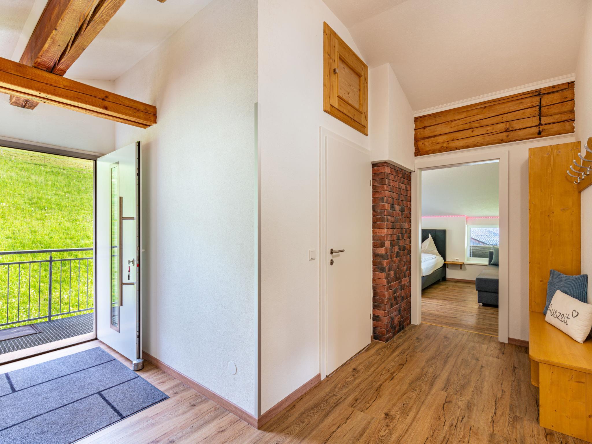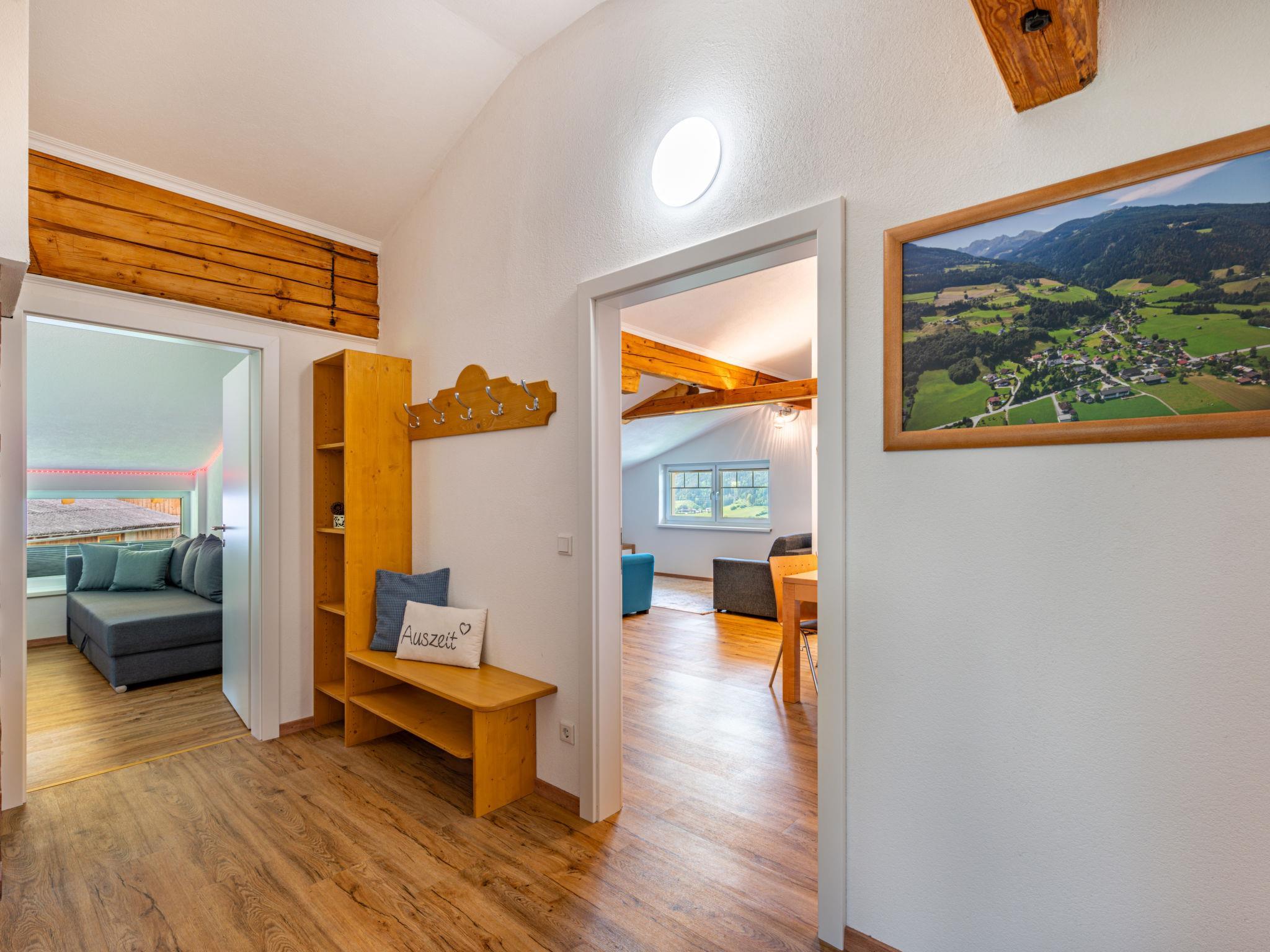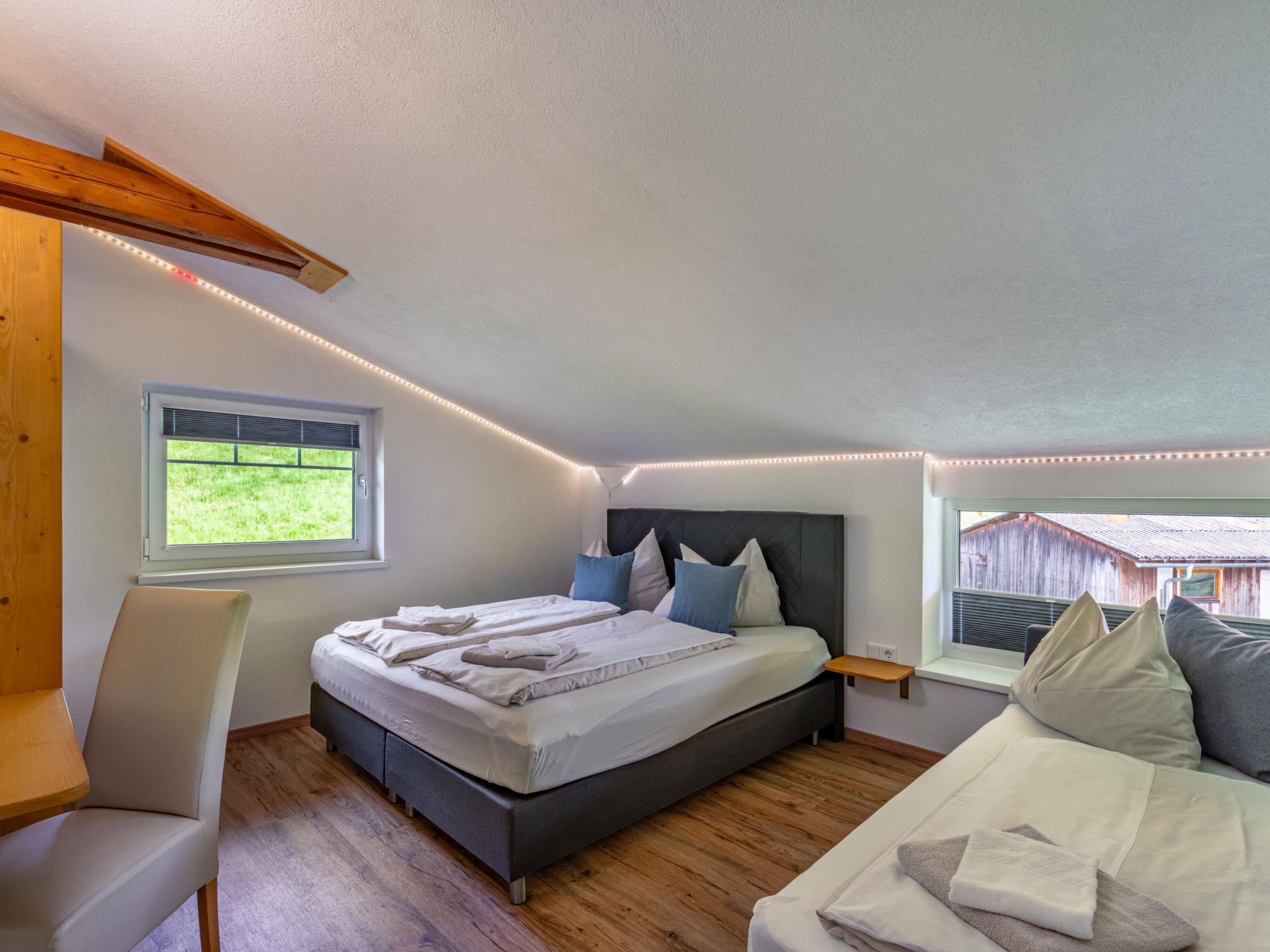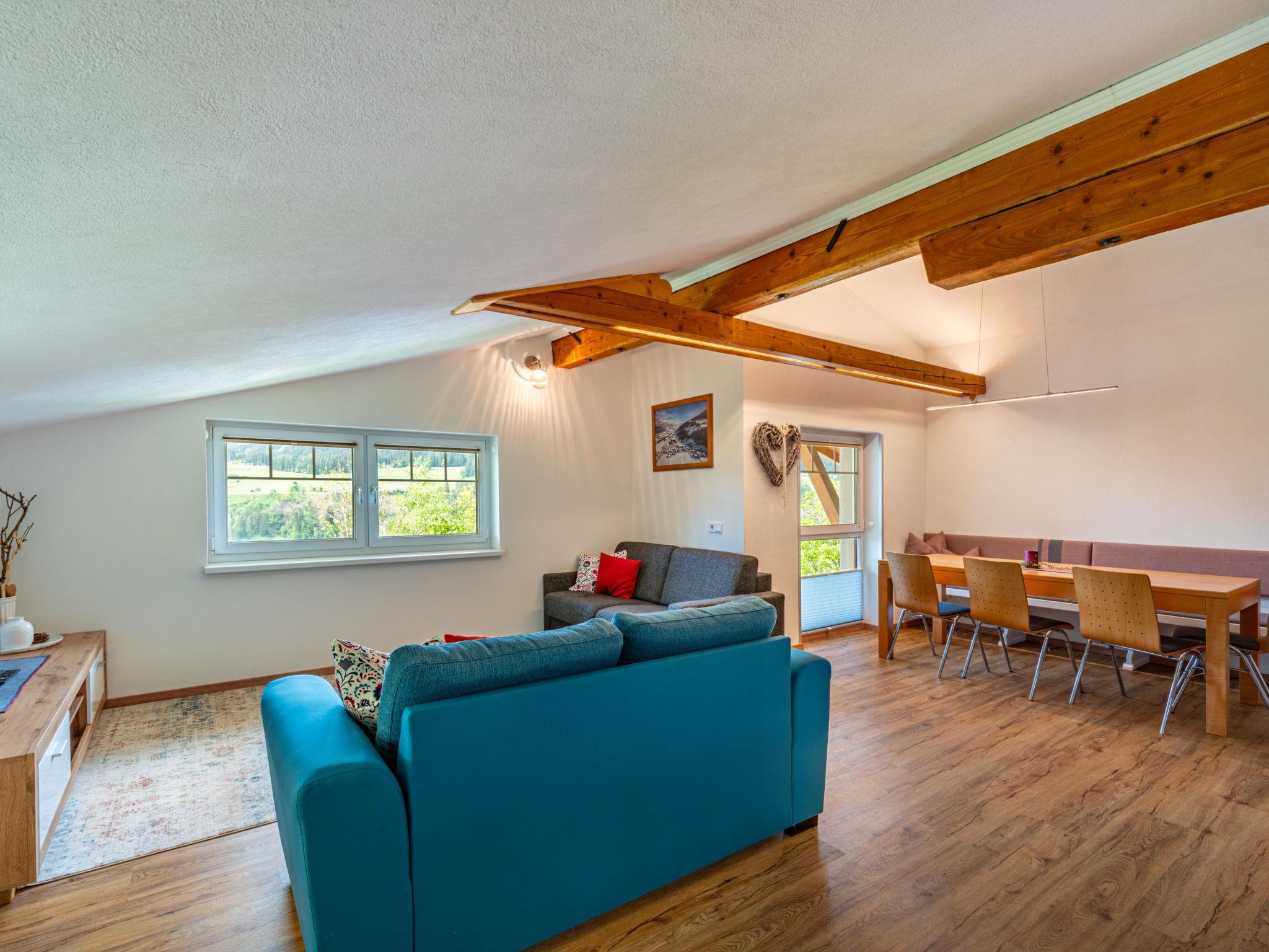 "Mawa", 3-room apartment 106 m2, on the top floor. Partly with sloping ceilings, cosy furnishings: living/sleeping room with 1 double sofabed, dining table, satellite TV and international TV channels (flat screen). 2 rooms, each room with 1 sofabed, 1 double bed, satellite TV and international TV channels (flat screen). Open kitchen (oven, dishwasher, 4 ceramic glass hob hotplates, toaster, kettle, electric coffee machine). Shower, sep. WC, double hand-basin. Heating. Parquet floors. Beautiful panoramic view of the mountains and the valley. Facilities: Internet (WiFi, free). Please note: non-smokers only. Note: Access via external spiral staircase or internally.