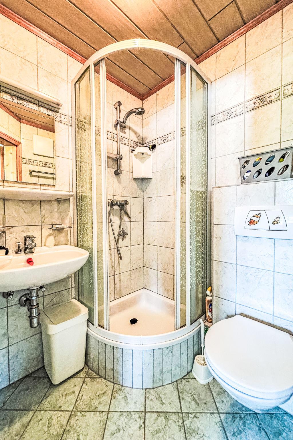 "Christoph", 3-room apartment 90 m2 on 1st floor. Spacious and bright, cosy furnishings: entrance hall. Exit to the balcony. Living/dining room with dining nook, satellite TV and international TV channels (flat screen). 1 double bedroom with shower/WC, satellite TV and international TV channels (flat screen). 1 double bedroom with shower/WC. Open kitchen (oven, dishwasher, 4 ceramic glass hob hotplates, toaster, kettle, microwave, freezer, electric coffee machine). Parquet floors. Balcony. Balcony furniture. Facilities: children's high chair, baby cot for up to 2 year olds. Internet (WiFi, free). Please note: one double bedroom is outside the apartment. Non-smokers only. Maximum 1 pet/ dog allowed. Smoke alarm.