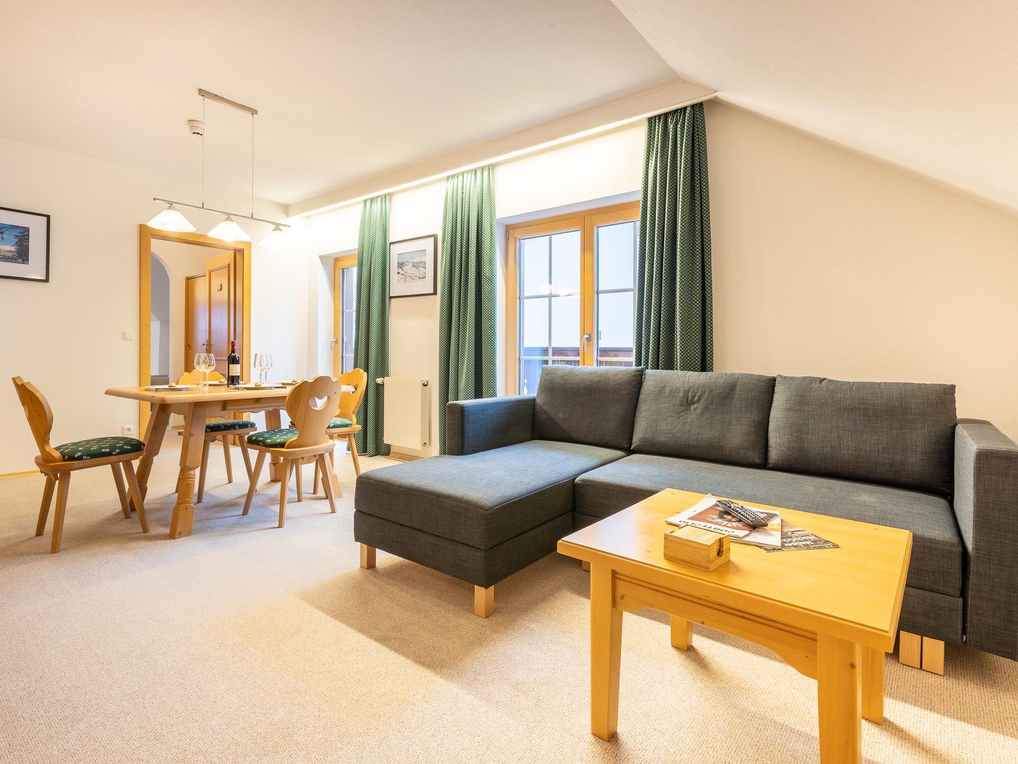 Aparthaus Sonnenberg – Top 10 Kaibling befindet sich im 2. Stock und bietet auf 52?m² Platz für bis zu 4 Personen. Die Wohnung umfasst ein Schlafzimmer mit Doppelbett sowie ein Schlafsofa im Wohnzimmer. Eine voll ausgestattete Küche, zwei separate Badezimmer und ein Balkon sorgen für hohen Wohnkomfort. Ein Parkplatz steht ebenfalls zur Verfügung. Der hauseigene Saunabereich sorgt für zusätzliche Entspannung.