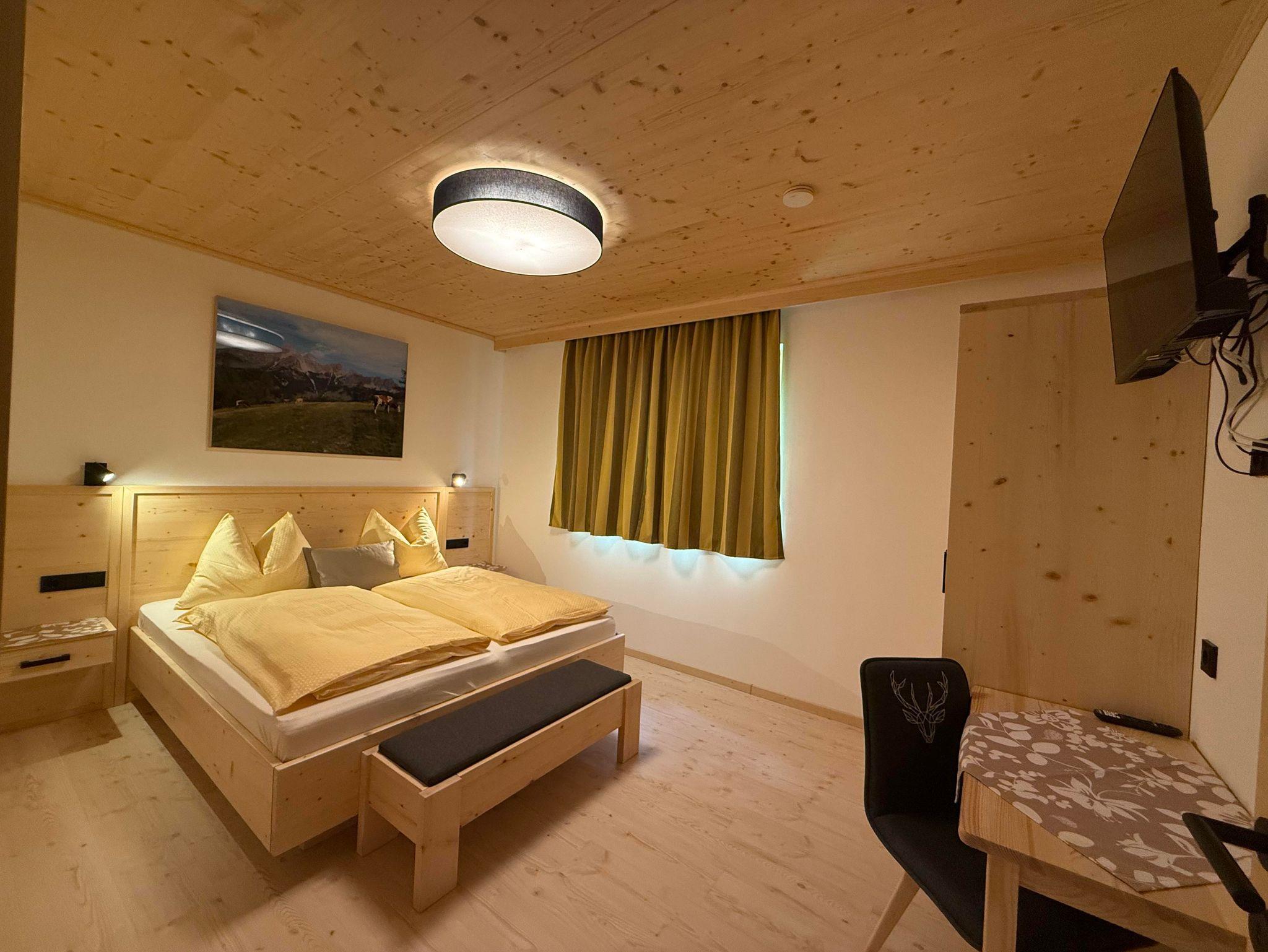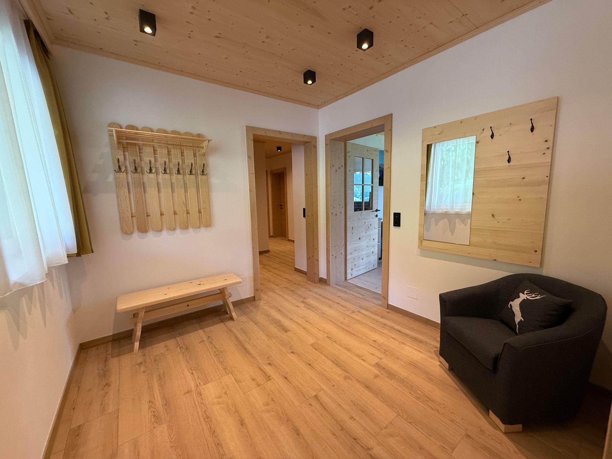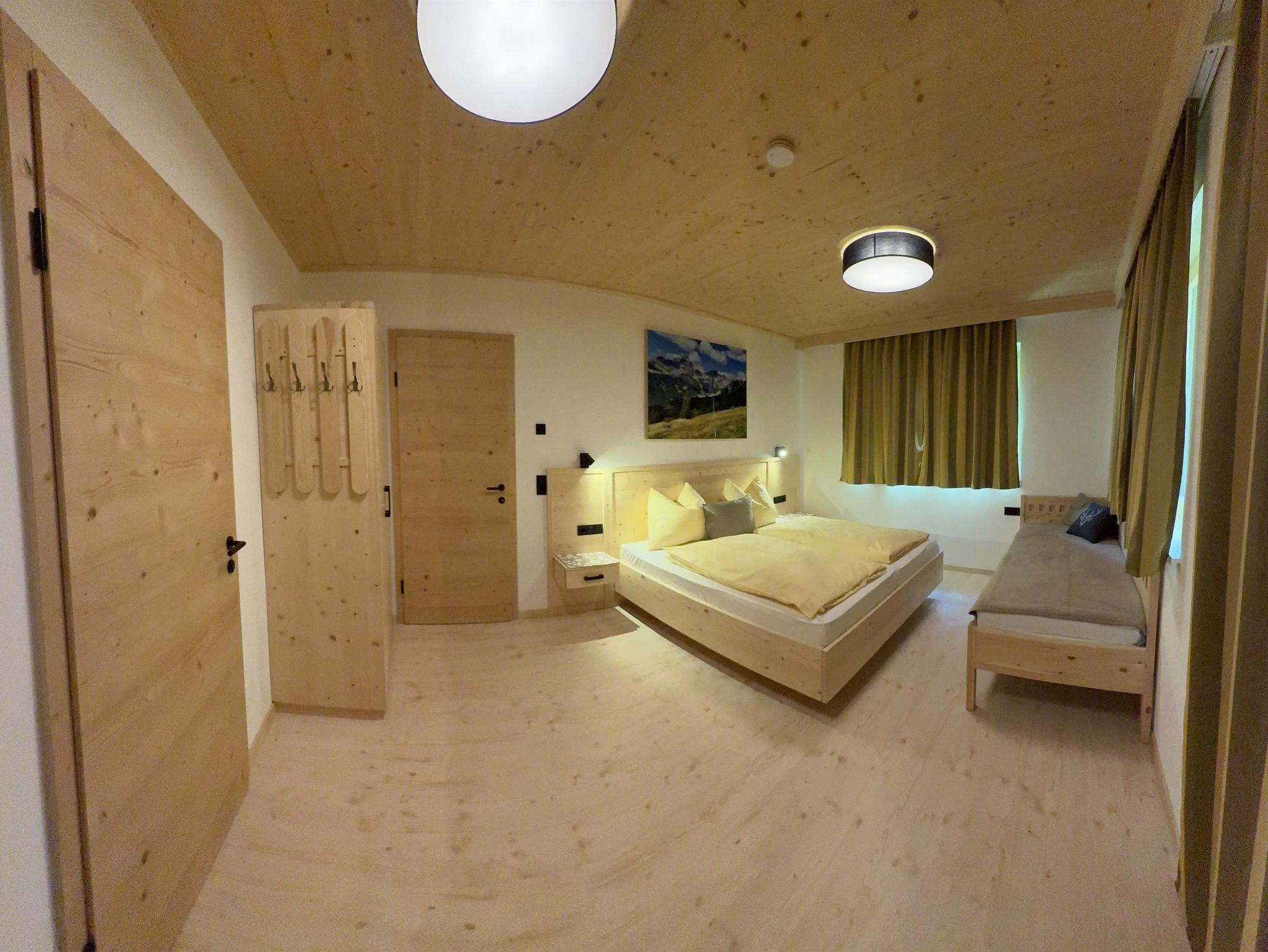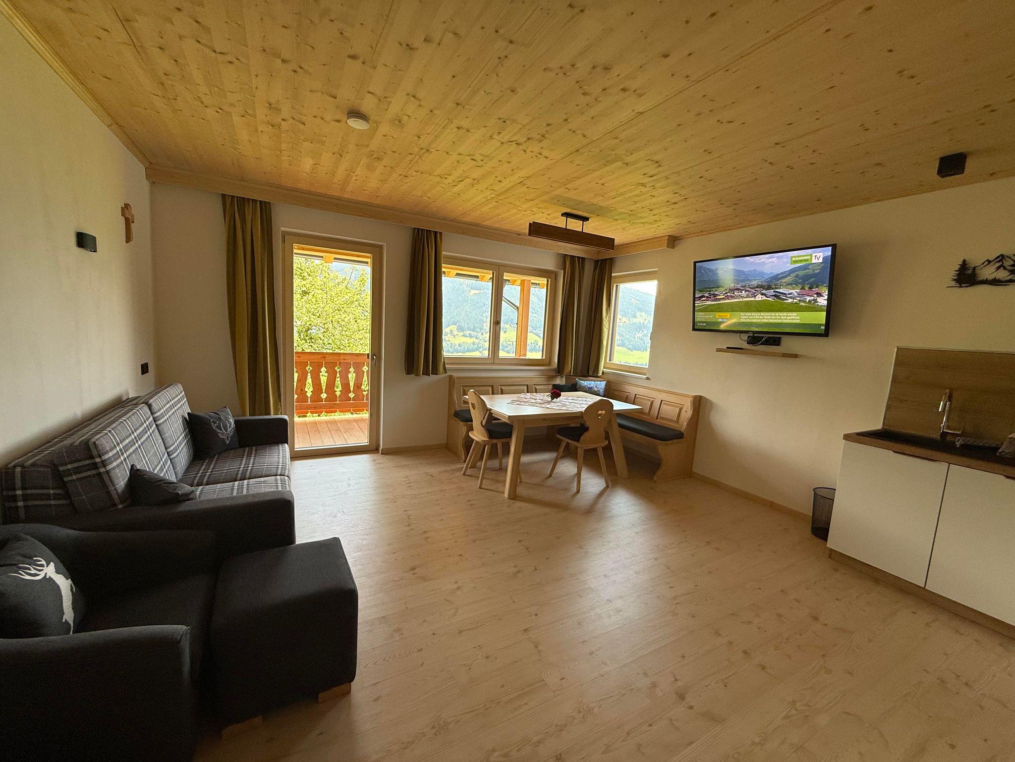 Wohnung Fichte: Diese Wohnung ist liebevoll mit Fichtenholz eingerichtet und verfügt über eine vollausgestattete Küche mit einer gemütlichen Sitzecke, ideal für gemeinsame Mahlzeiten oder entspannte Abende. Zwei separate Schlafzimmer, jedes mit eigenem Bad, bieten ausreichend Raum und Komfort. Ein zusätzliches separates WC, eine Infrarot-Sauna, ein barrierefreier Zugang und ein Balkon mit atemberaubendem Fernblick runden das Angebot ab.