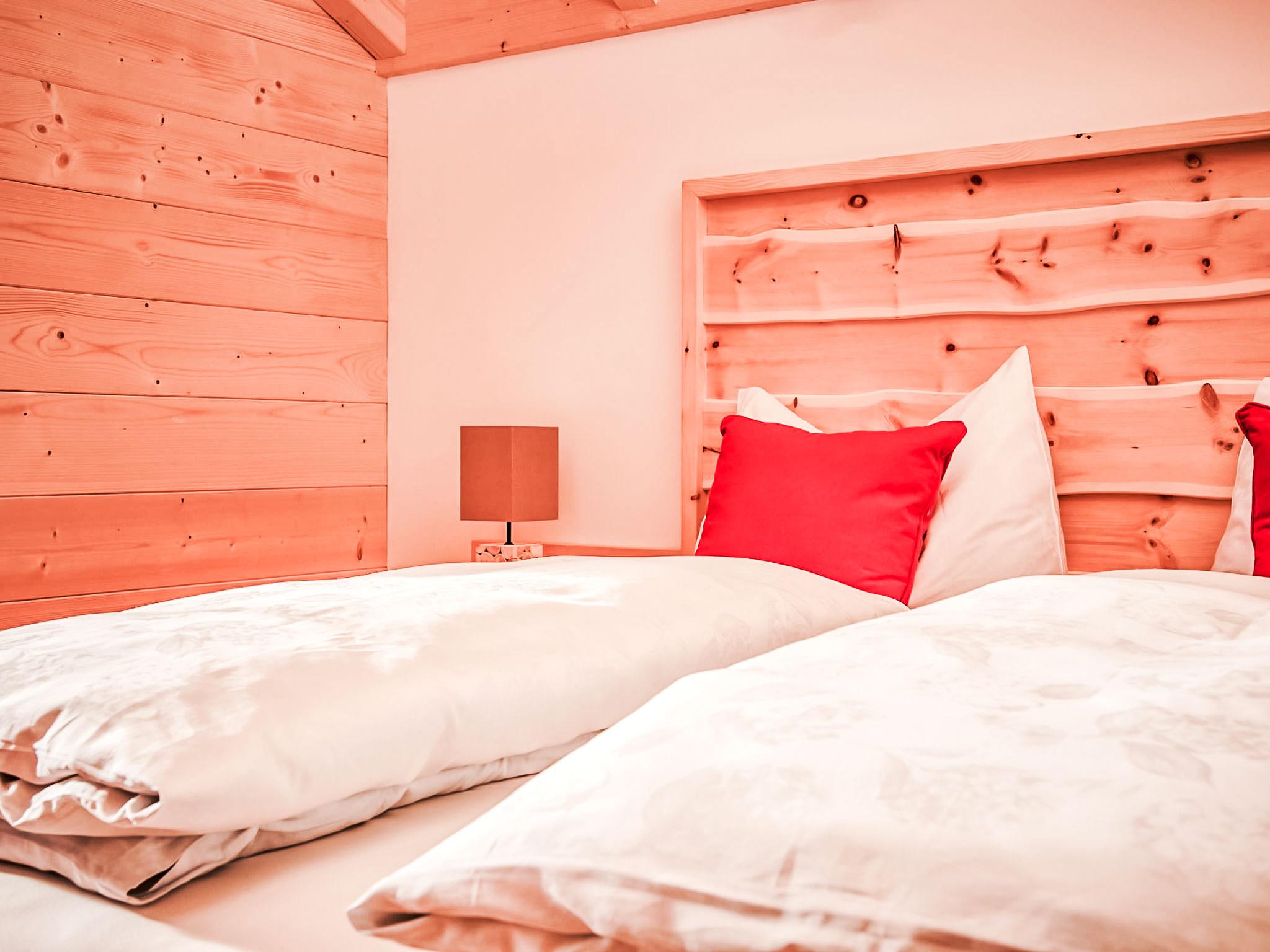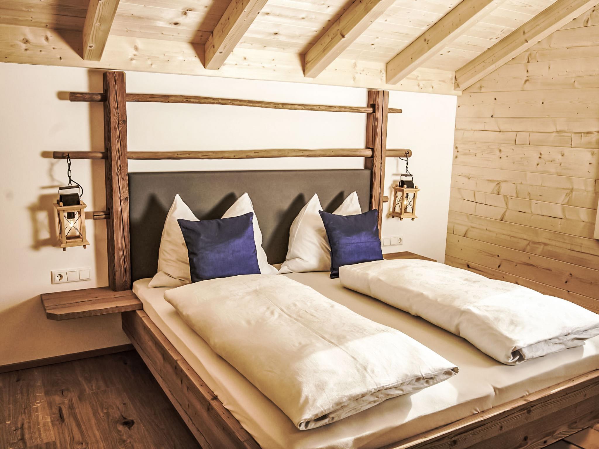 4-room cottage 110 m2 on 2 levels. Romantic and wooden furniture furnishings: entrance hall. 1 double bedroom. Open living room with satellite TV (flat screen), wood-burning stove. Exit to the terrace. Open kitchen (oven, dishwasher, 4 ceramic glass hob hotplates, microwave, freezer, electric coffee machine) with dining nook. 2 showers/WC, double hand-basin. Floor heating. Top floor: 1 room with 2 beds (90 cm, length 200 cm). 1 double bedroom. Exit to the balcony. Balcony 7 m2, south facing position, large terrace 20 m2, south facing position. Terrace furniture, deck chairs (4). Very beautiful panoramic view of the mountains. Facilities: washing machine, children's high chair, baby cot for up to 2 year olds, hair dryer. Internet (WiFi, free). Please note: suitable for families. Non-smokers only. Maximum 1 pet/ dog allowed. Smoke alarm. In the attic one of the best is a bunk bed in the attic.