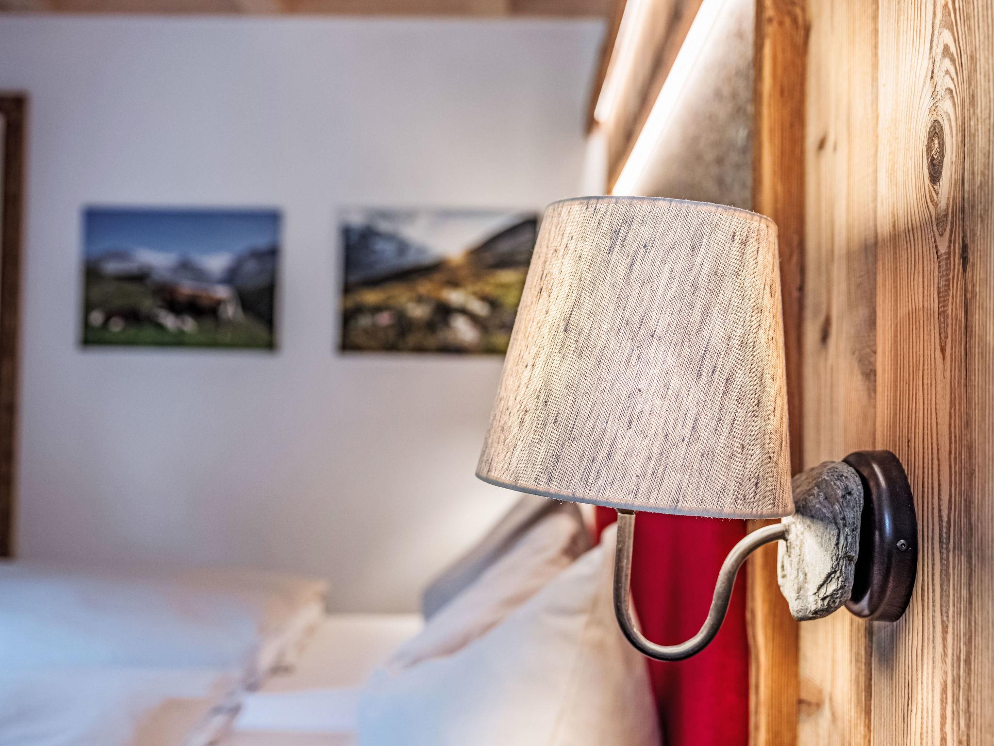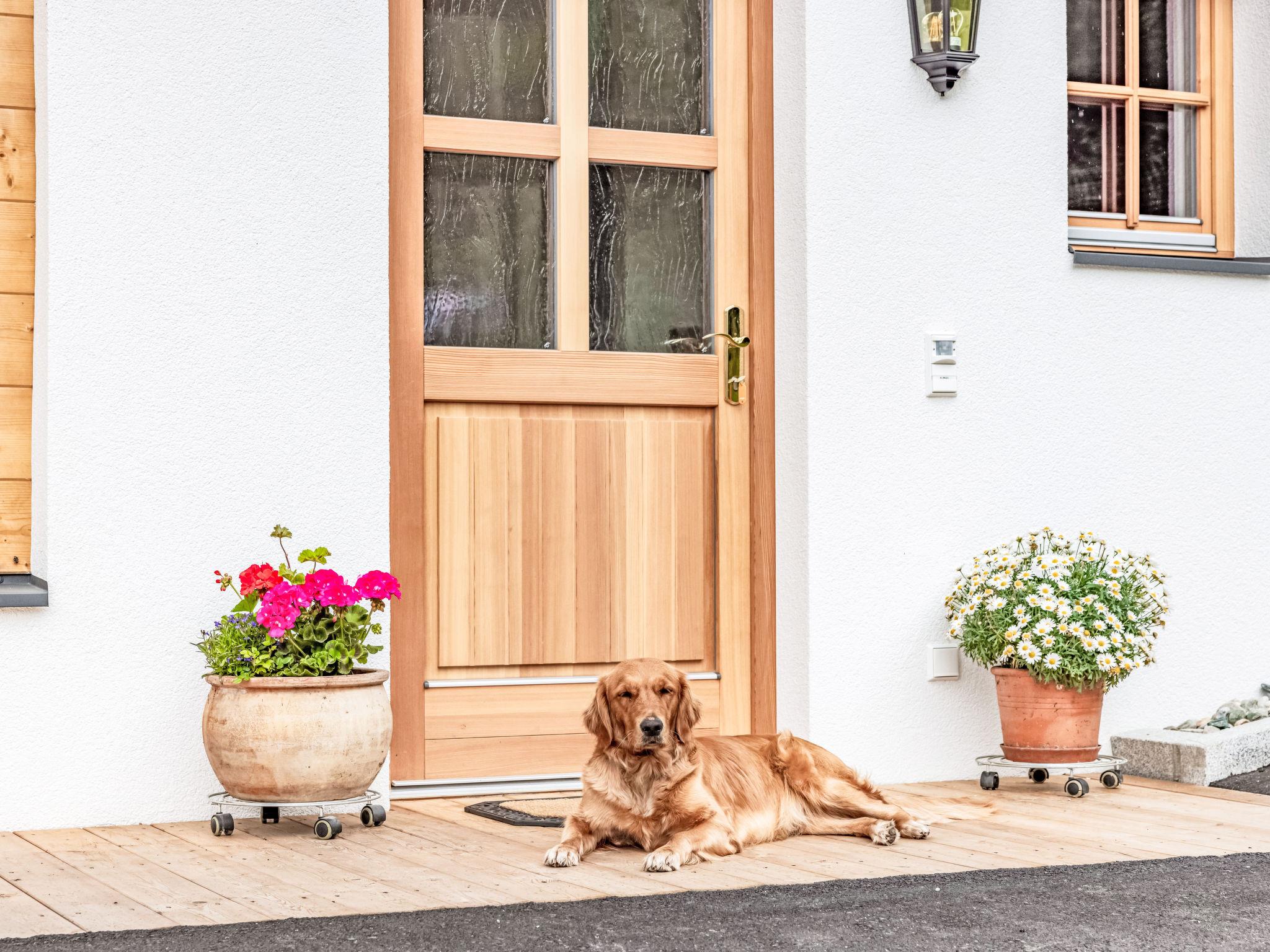 4-room chalet 110 m2 on 2 levels. Romantic and wooden furniture furnishings: entrance hall. Open living room with satellite TV (flat screen), wood-burning stove. Open kitchen (dishwasher, 4 ceramic glass hob hotplates, toaster, microwave, freezer) with dining nook. 2 showers/WC, double hand-basin. Floor heating. Top floor: 1 room with 2 beds (90 cm, length 180 cm). 2 double bedrooms. Exit to the balcony. Balcony 7 m2, south facing position, large terrace 20 m2. Terrace furniture, deck chairs (4). Very beautiful panoramic view. Facilities: washing machine, children's high chair, baby cot, hair dryer. Internet (WiFi, free). Please note: non-smokers only. Maximum 1 pet/ dog allowed. Smoke alarm. There are 2 large wooden loungers for approx. 4 people available for guests in the garden.