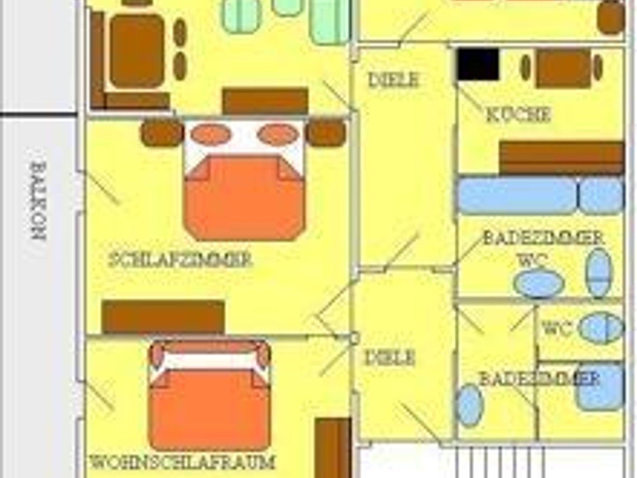 Gemütliches Appartement mit Balkon, 2 Fernseher/Sat, W-LAN und drei Schlafzimmern, (3x Doppelbett 180cm breit). Ein Wohnzimmer mit Essecke, Couch, . Eine Küche mit E-Herd, Geschirrspüler, Kühl/Gefrierschrank, Kaffeemaschine, Mikrowelle. Zwei Badezimmer mit Dusche/WC. Diese Wohnung ist mit einem geölten BIO-Naturholzboden ausgestattet.