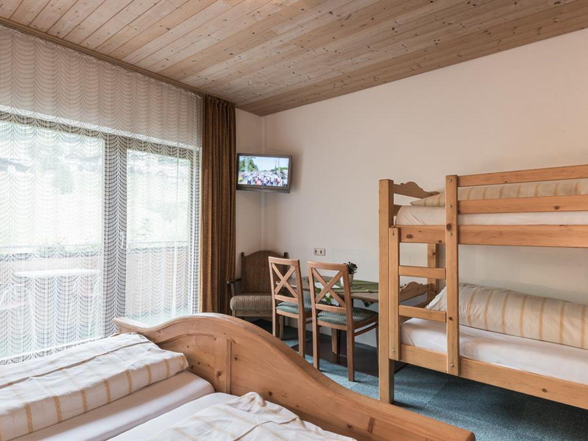 Dreibettzimmer mit Dusche und WC, 1 Doppelbett und 1 Einzelbett, Radio, Sat-TV, Bergblick, traditionelle Holzeinrichtung mit Sitzgelegenheit, Dachschräge