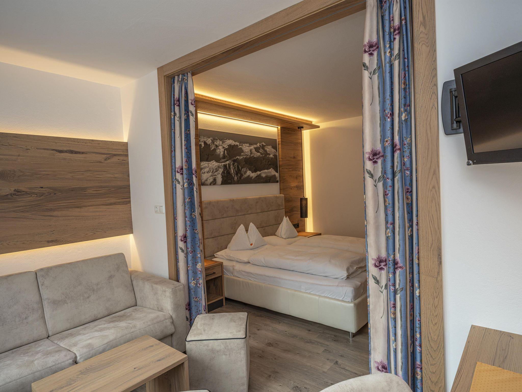 Dreibett Zimmer Almrausch - Doppelbett und ausziehbares Sofa mit Sitzecke, Bad/WC, Flachbild Fernseher, großes Panorama Fenster und kostenlosen W - Lan.