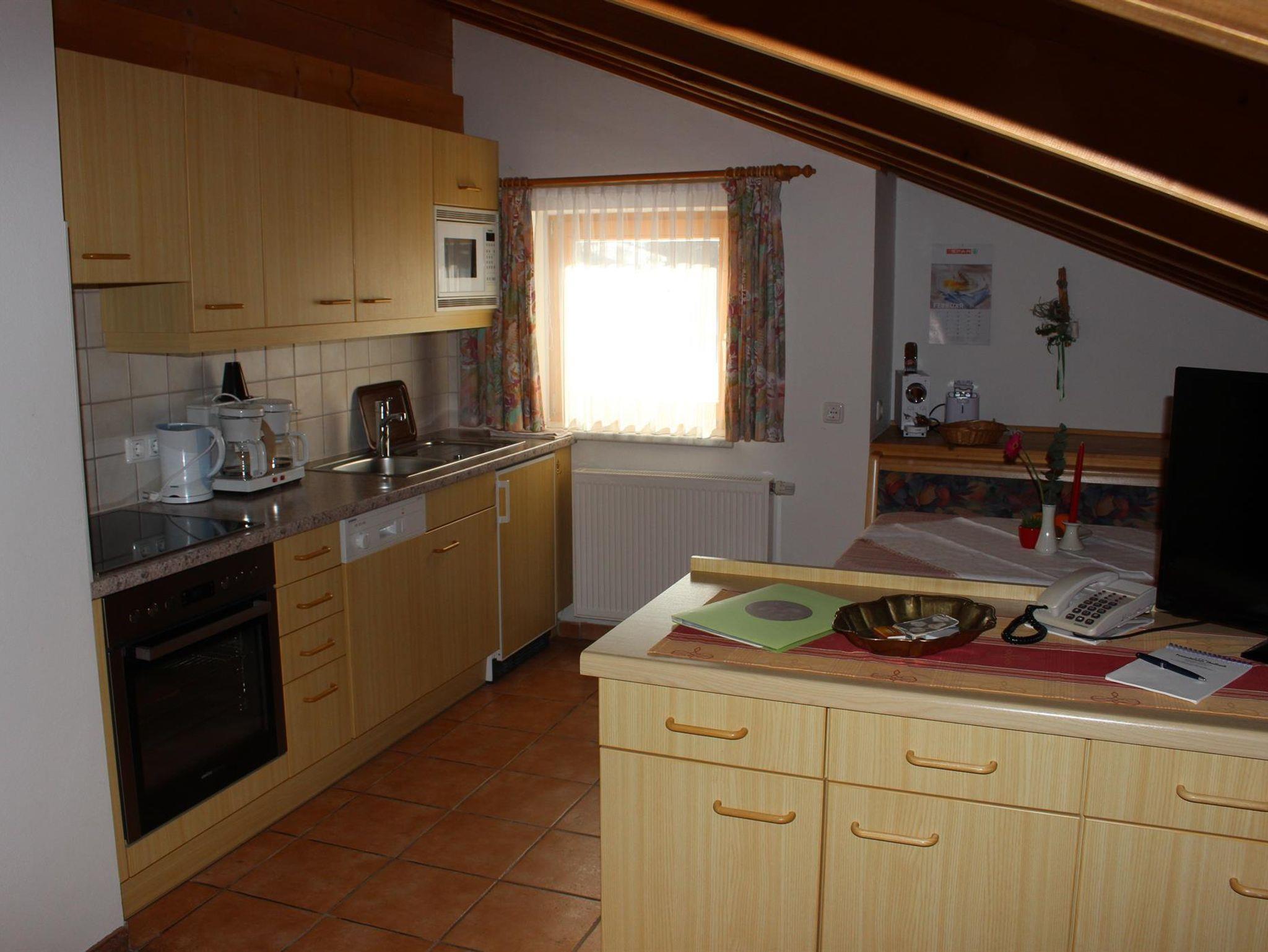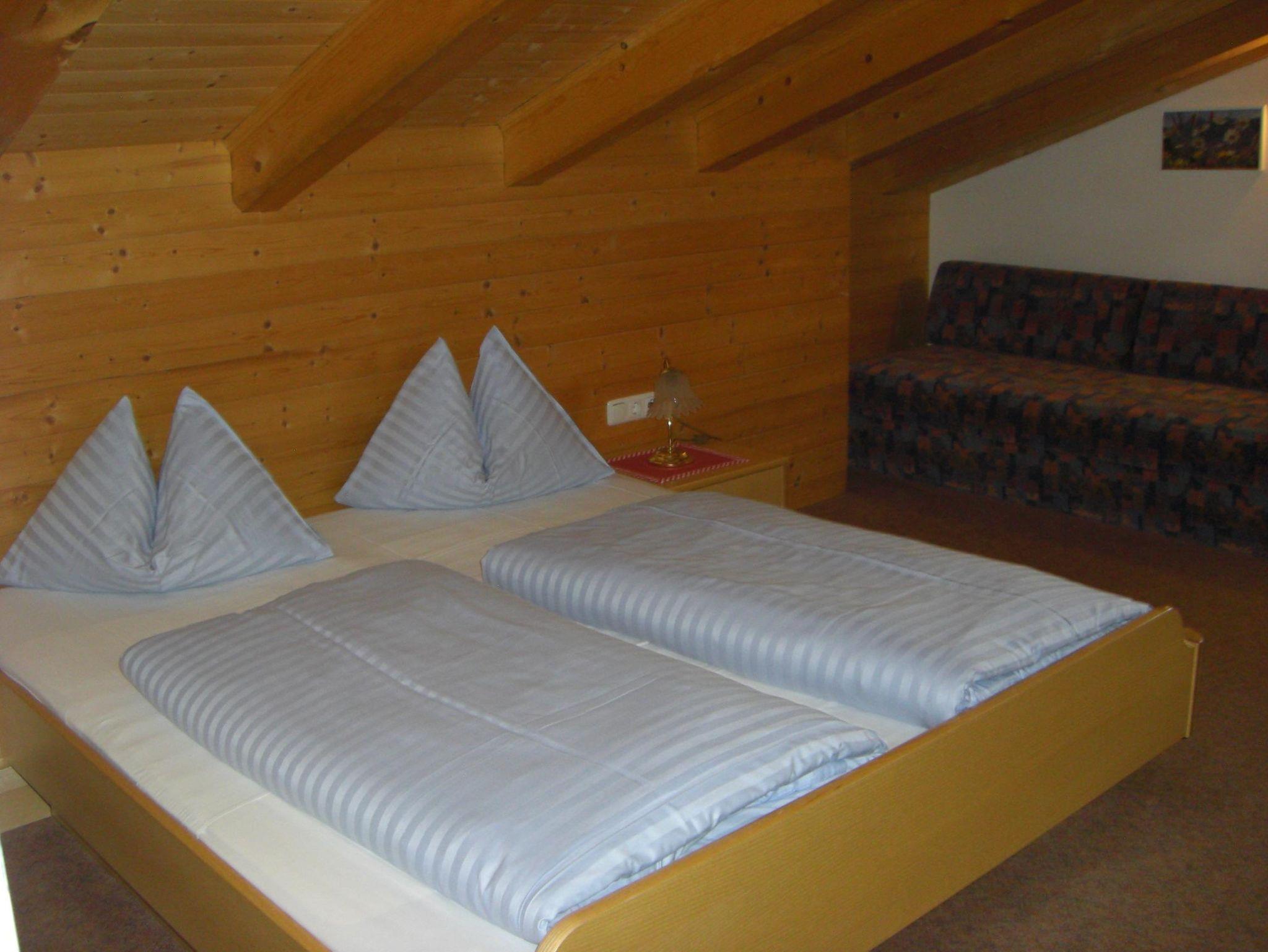Urgemütlich, mit Naturholz ausgebautes Dachgeschoss; NICHTRAUCHER Wohnung! Küche, Ess- und Wohnecke, Doppelzimmer mit Couchbett, Kinderkabinett mit Dachfenster und zwei Betten, Badezimmer mit Duschkabine und Badewanne, WC extra