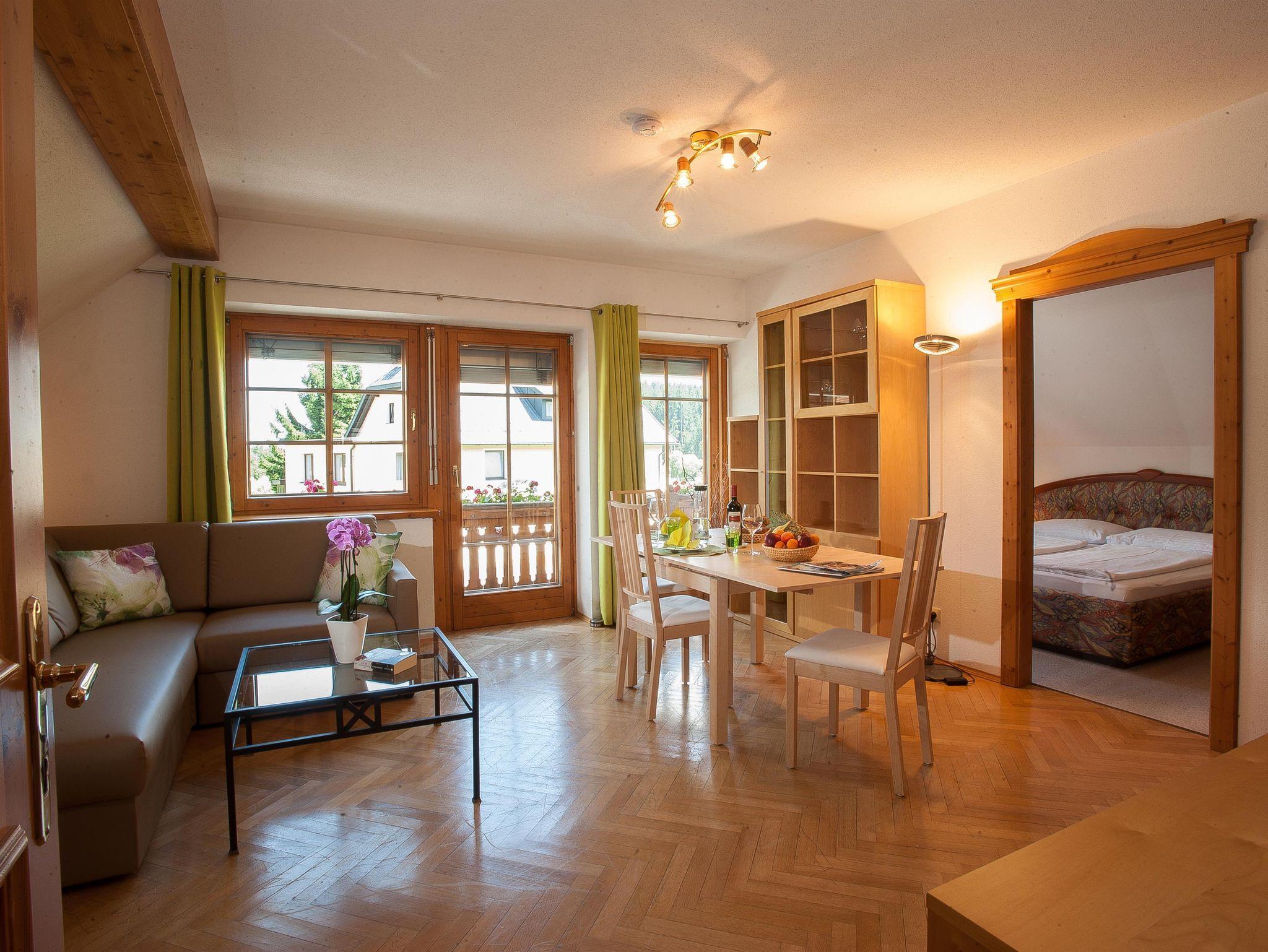Das Appartement 2+2 bietet einen geräumigen und gemütlichen Aufenthalt. Die Wohnung ist für maximal 4 Personen geeignet, befindet sich im ersten Stock und es gibt keinen Aufzug. Im Wohnzimmer befindet sich eine gemütliche Sitzecke mit einem Schlafsofa (2 Personen) und einem Fernseher, ein Essbereich und eine Küche, die unter anderem mit einem Geschirrspüler, einer Mikrowelle und einer Nespresso-Maschine ausgestattet ist. Das Schlafzimmer ist mit einem Doppelbett ausgestattet. Das Badezimmer hat eine Badewanne, eine Dusche und ein Waschbecken. Die Toilette befindet sich in einem separaten Raum. WLAN steht kostenlos zur Verfügung. Haustiere sind darüber hinaus erlaubt.
