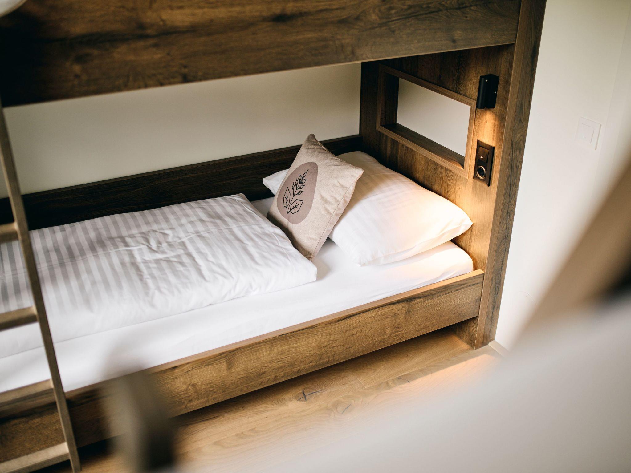 Our premium chalet flats, located in the Nassfeld mountain paradise, offer the perfect place for enjoyment and relaxation at an altitude of 1,500 metres on 55m². With a fully equipped kitchen, a cosy dining area, two bedrooms - one with a double bed and one with a bunk bed - as well as a high-quality bathroom with shower and Finnish sauna, our flats offer you luxury to suit your taste in an exclusive environment.