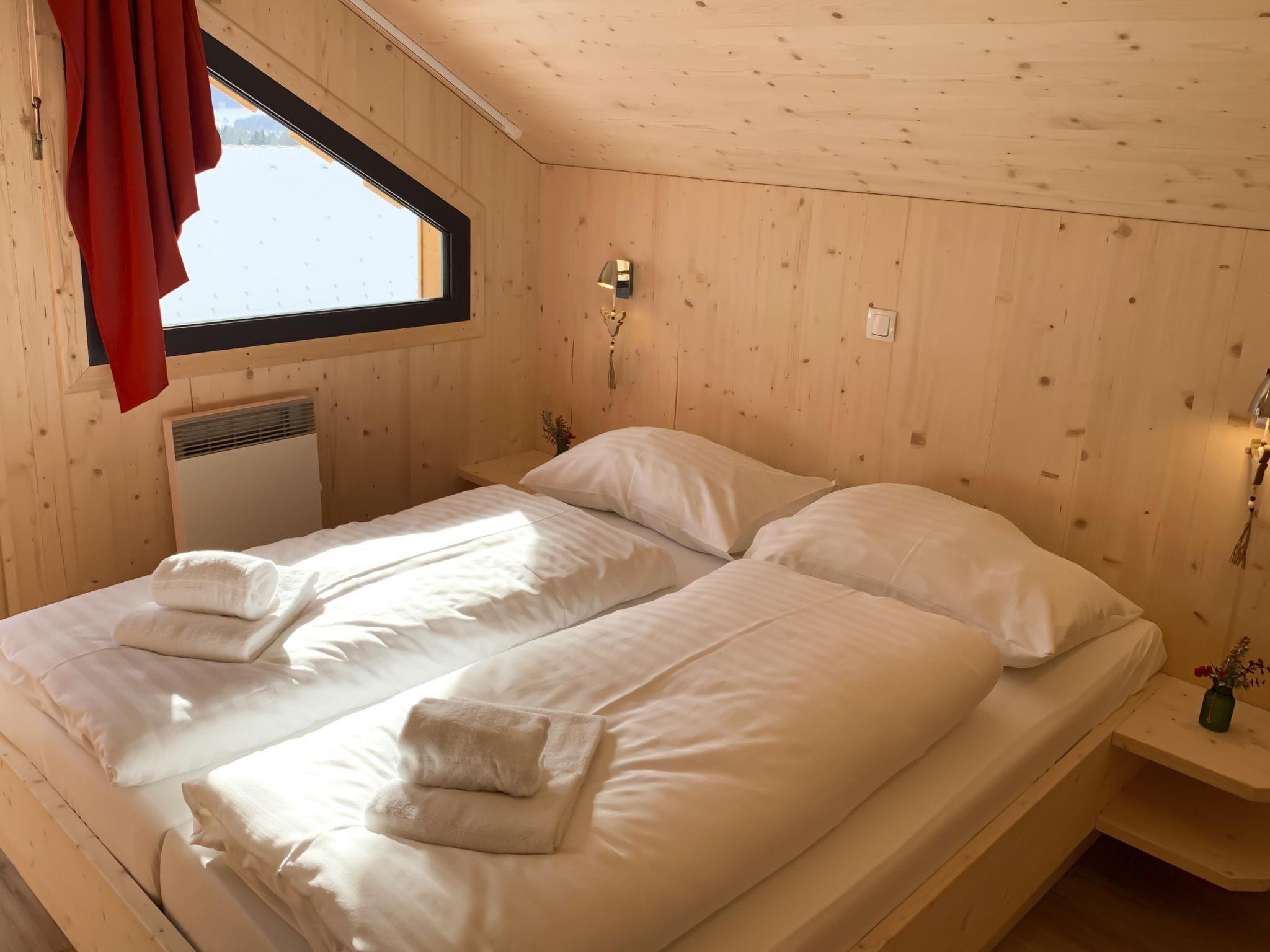"Superior 48 mit IR Sauna", 4-room house 70 m2 on 2 levels. Bright, comfortable and tasteful furnishings: living/dining room with dining table, satellite TV, flat screen and gas heater. 2 double bedrooms. Open kitchen (oven, dishwasher, 4 ceramic glass hob hotplates, microwave, electric coffee machine). Bath/WC. Wooden floors. Balcony or small terrace. Terrace furniture. Very beautiful view of the mountains and the countryside. Facilities: sauna. Internet (WiFi, free). Parking at the house. Please note: non-smoking house.
