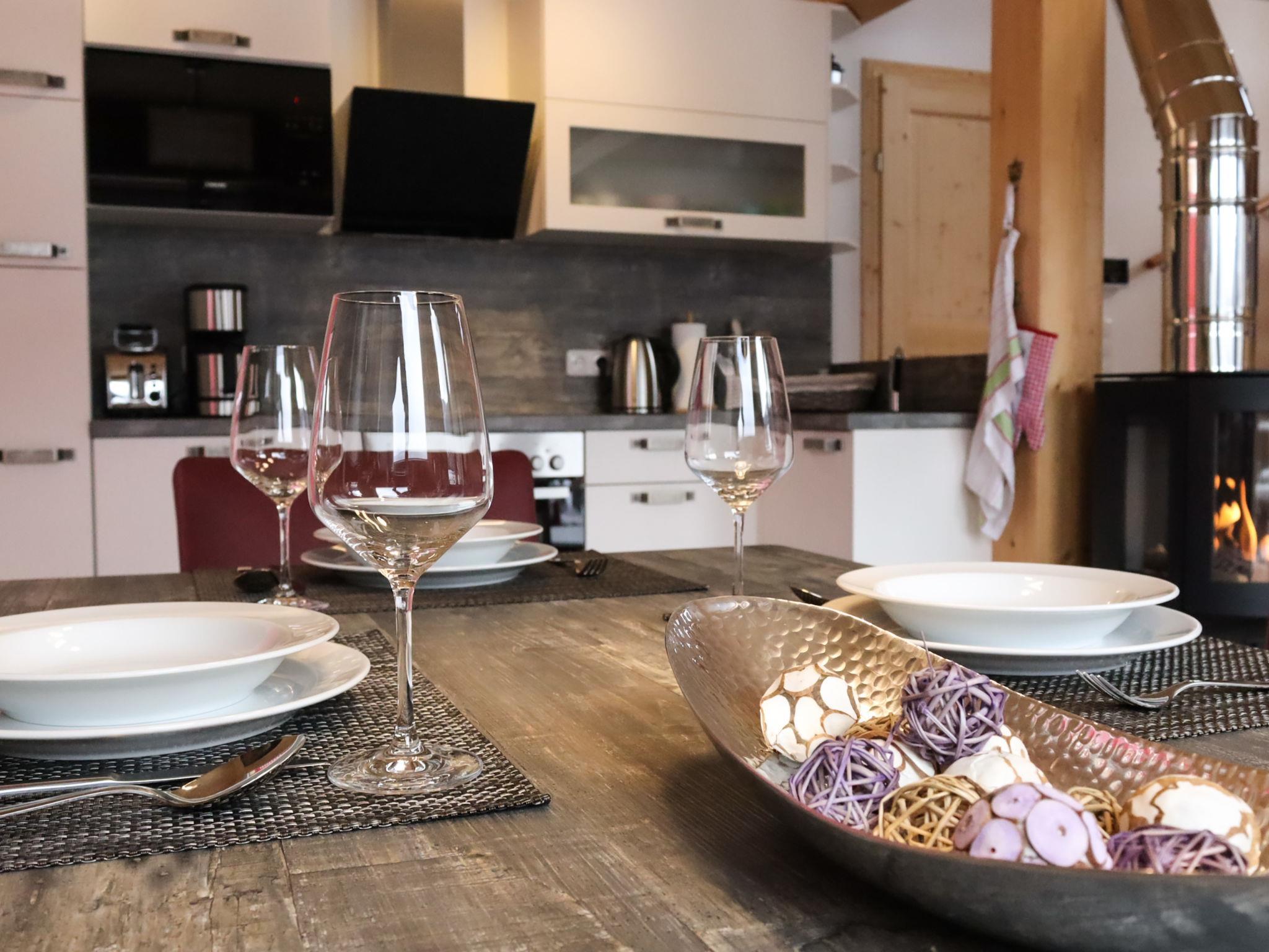 "Superior 61 IR-Sauna", 4-room house 70 m2 on 2 levels. Spacious and bright, comfortable and tasteful furnishings: entrance hall. Living/dining room with dining table, satellite TV, flat screen and gas heater. 1 double bedroom. 1 room with 1 x 2 bunk beds. Walk-through room with 1 double bed. Open kitchen (oven, dishwasher, 4 ceramic glass hob hotplates, microwave, electric coffee machine). Bath/WC, shower/WC, hydro massage shower, Sauna. Terrace. Terrace furniture. Very beautiful view of the mountains and the countryside. Facilities: Internet (WiFi, free). Parking at the house. Please note: non-smoking house.
