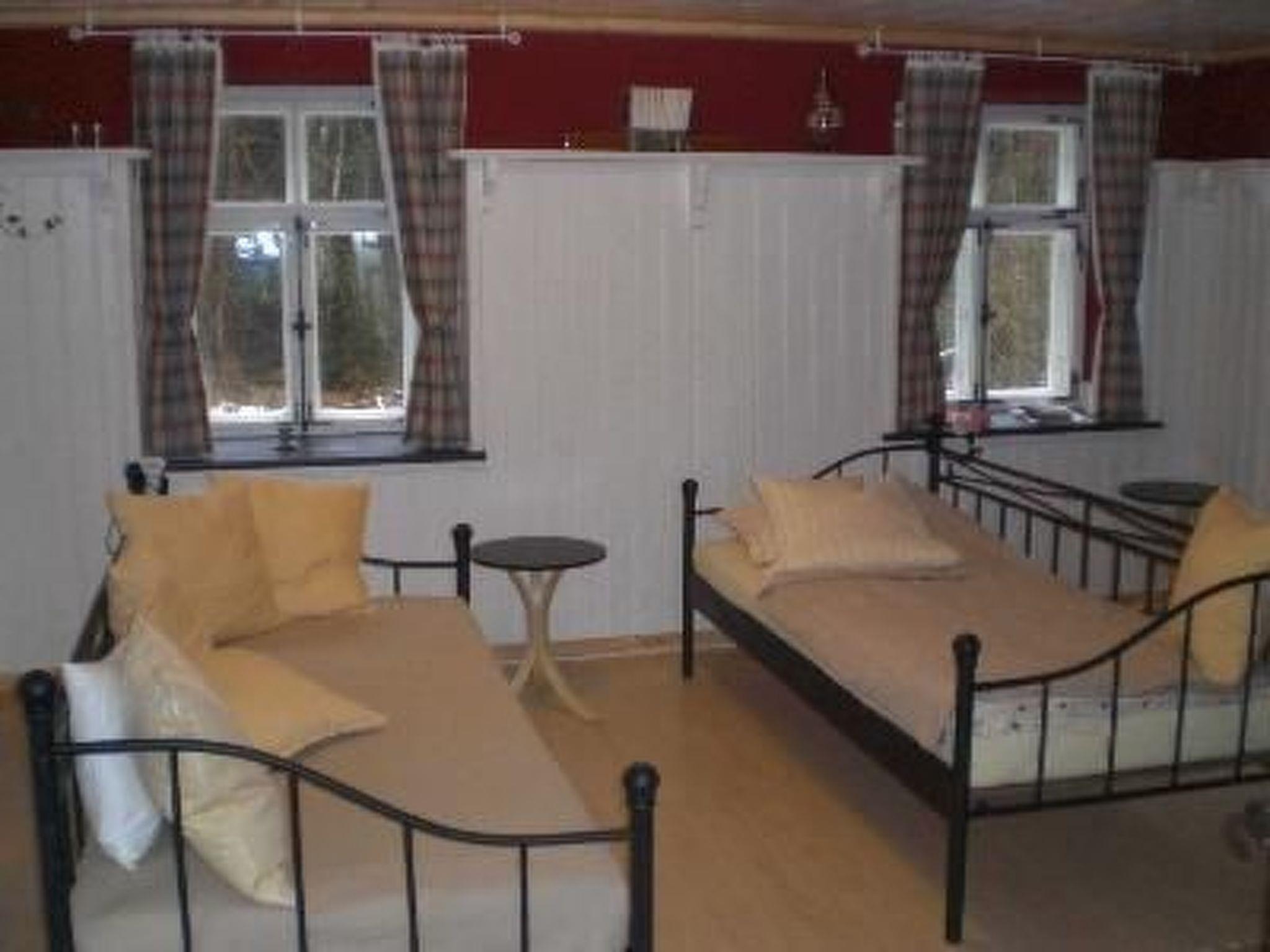 Inside, the house impresses with practical amenities that will make your stay comfortable. There are two sleeping options in the living room/bedroom, ideal for cooler days. A tiled stove and a wood-burning stove provide entertainment and moments of well-being, inviting you to sit cosily by the fire and enjoy the warmth. The kitchen is equipped with a coffee machine and a kettle, guaranteeing carefree mornings.