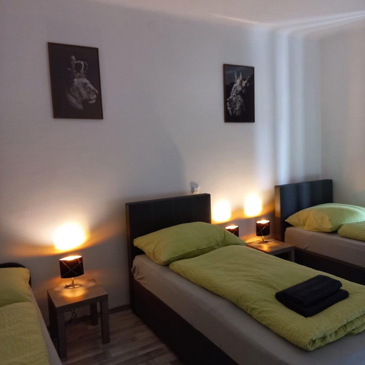 Das Apartments besteht aus 2 Schlafräumen mit insgesamt 5 Einzelbetten, Wohnzimmer mit Schlafcouch, Wohnküche, Bad/WC, Sat-TV, Free-WLAN.