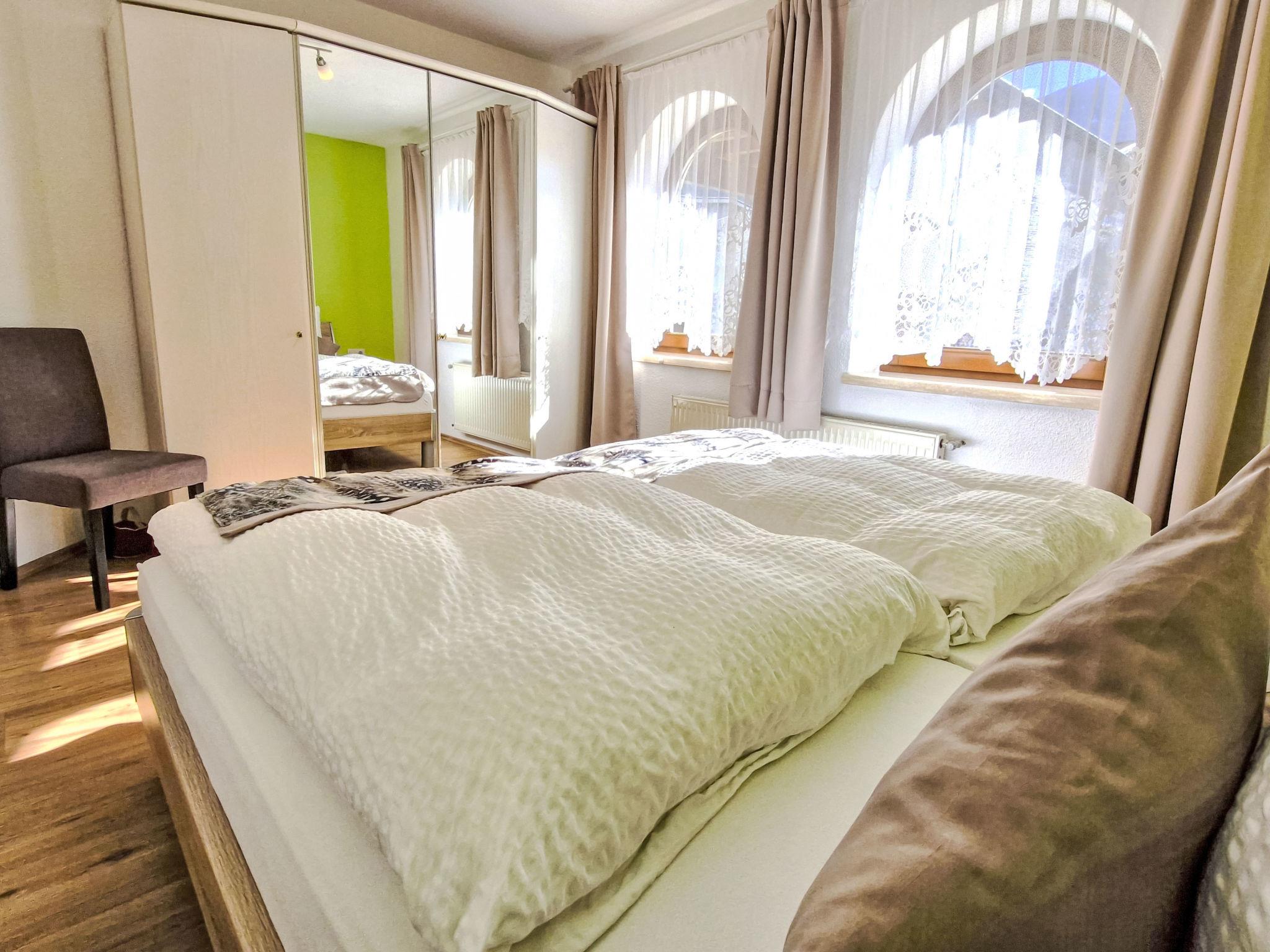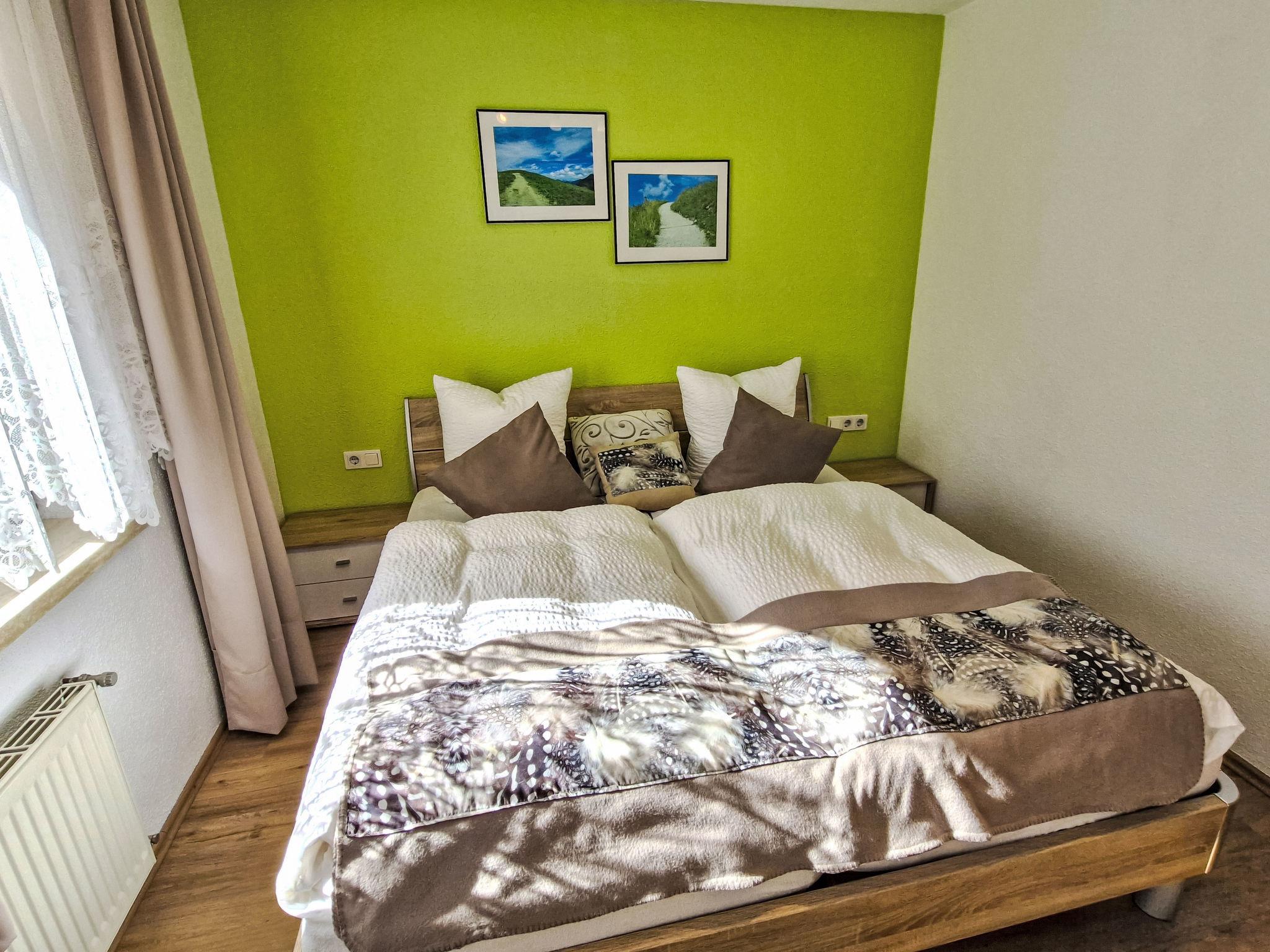 "Helga", 1-room apartment 33 m2, on the lower ground floor. Practical and cosy furnishings: entrance hall. 1 double bedroom. Small kitchen (oven, dishwasher, 4 ceramic glass hob hotplates, toaster, kettle, electric coffee machine) with dining nook and satellite TV (flat screen). Shower/WC. Heating. Parquet floors. Small patio. Facilities: Internet (WiFi, free). Parking (roofed) at the house. Please note: non-smokers only. Maximum 1 pet/ dog allowed. Private entrance.