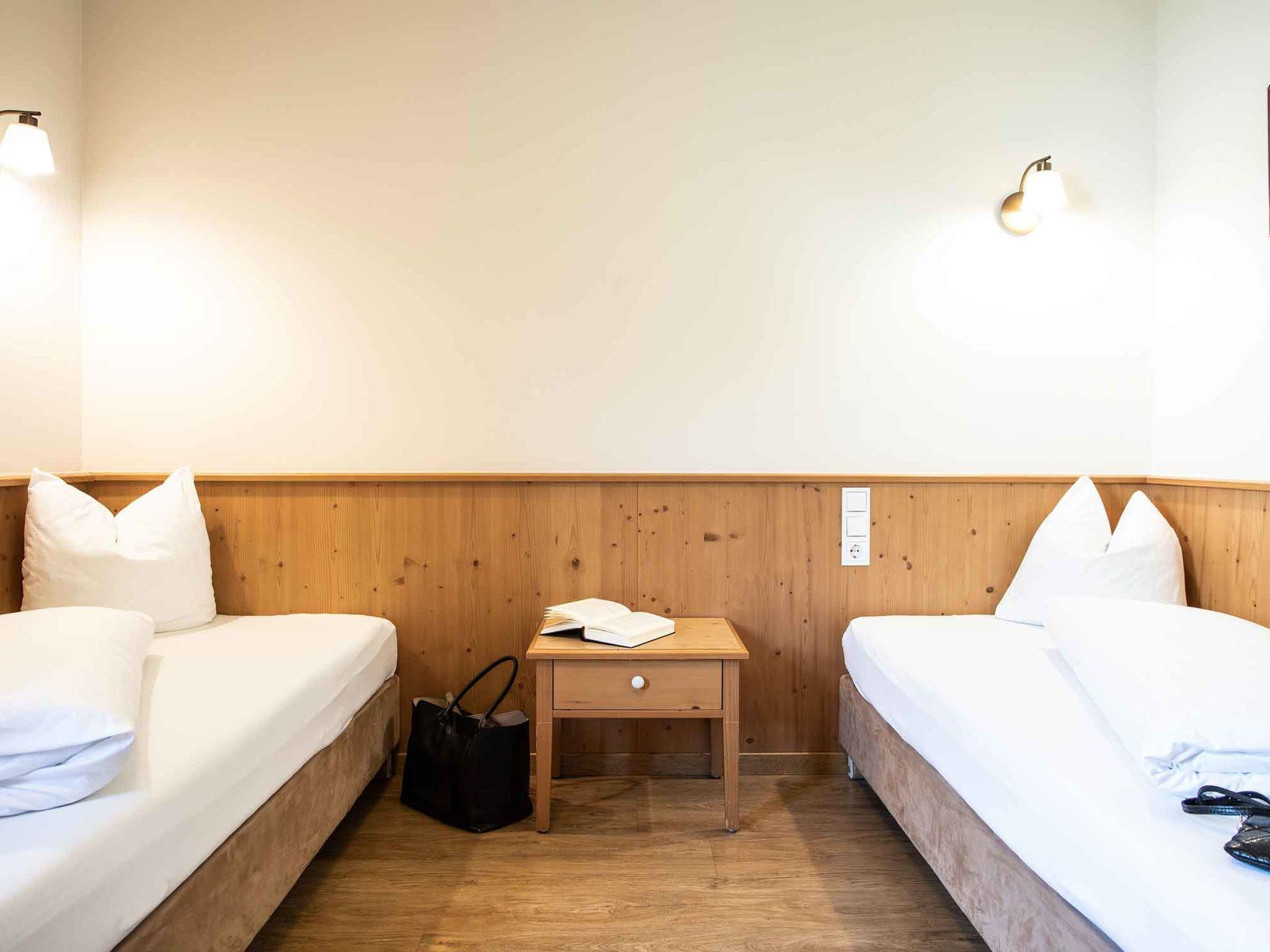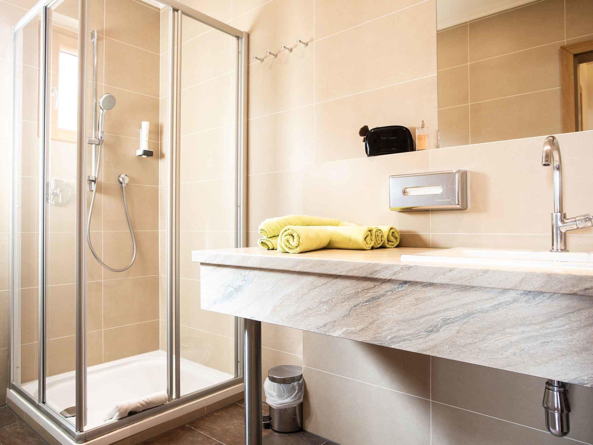 "Edith", 3-room apartment 66 m2, on the ground floor. Bright, beautiful and tasteful furnishings: living/sleeping room with 1 double sofabed, dining table and cable TV. Exit to the garden, to the balcony, to the terrace. 1 double bedroom with TV (flat screen). 1 room with 2 beds and TV (flat screen). Open kitchen (oven, dishwasher, 4 ceramic glass hob hotplates, toaster, kettle, microwave, freezer, electric coffee machine). Shower, sep. WC. Underfloor heating. Parquet floors. Terrace, garden. Terrace furniture. Side panoramic view of the mountains. Facilities: baby cot, hair dryer. Internet (WiFi, free). Parking (2 cars). Maximum 1 pet/ dog allowed. The indoor pool, wellness area and restaurant are located in the Hotel Hirschen (approx. 500m). Terrace or garden, otherwise 2 identical apartments.