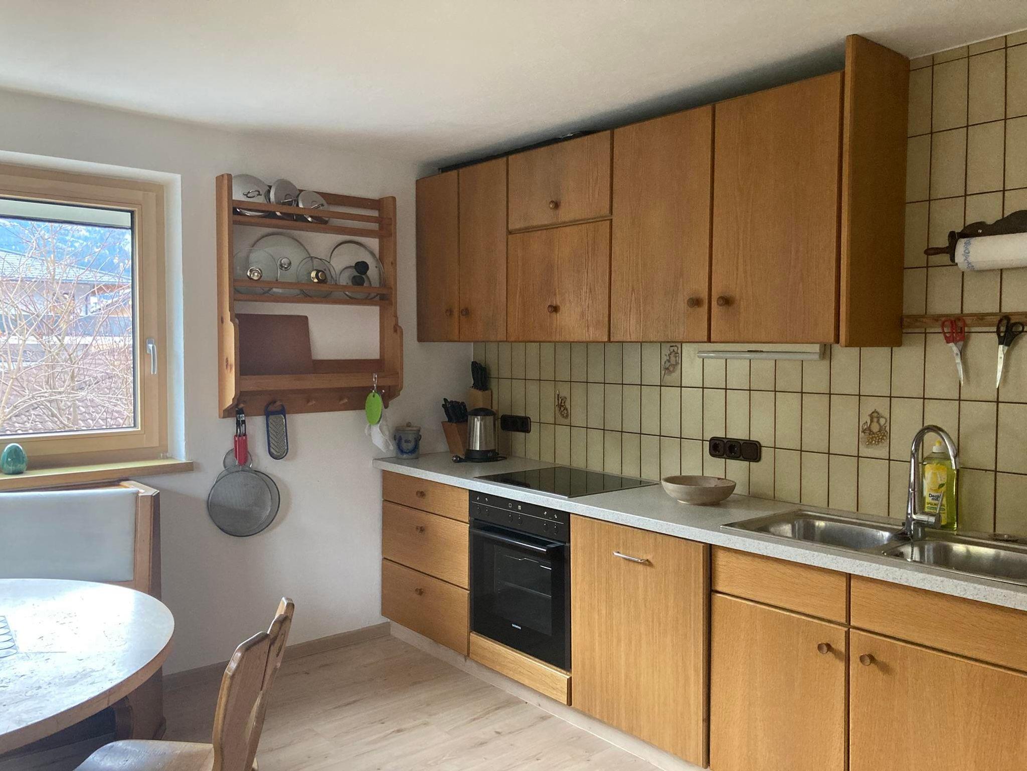 Ein echtes Highlight ist der lichtdurchflutete, 30 m² große Wintergarten mit privater Infrarotkabine – perfekt zum Entspannen nach einem Tag in den Bergen, inklusive Bergblick. Die geräumige Einbauküche ist voll ausgestattet mit Kühlschrank, Elektroherd, Backofen, Kaffeemaschine, Wasserkocher sowie ausreichend Geschirr und Besteck. Das Badezimmer verfügt über eine Badewanne mit Duschwand, Waschbecken und WC.