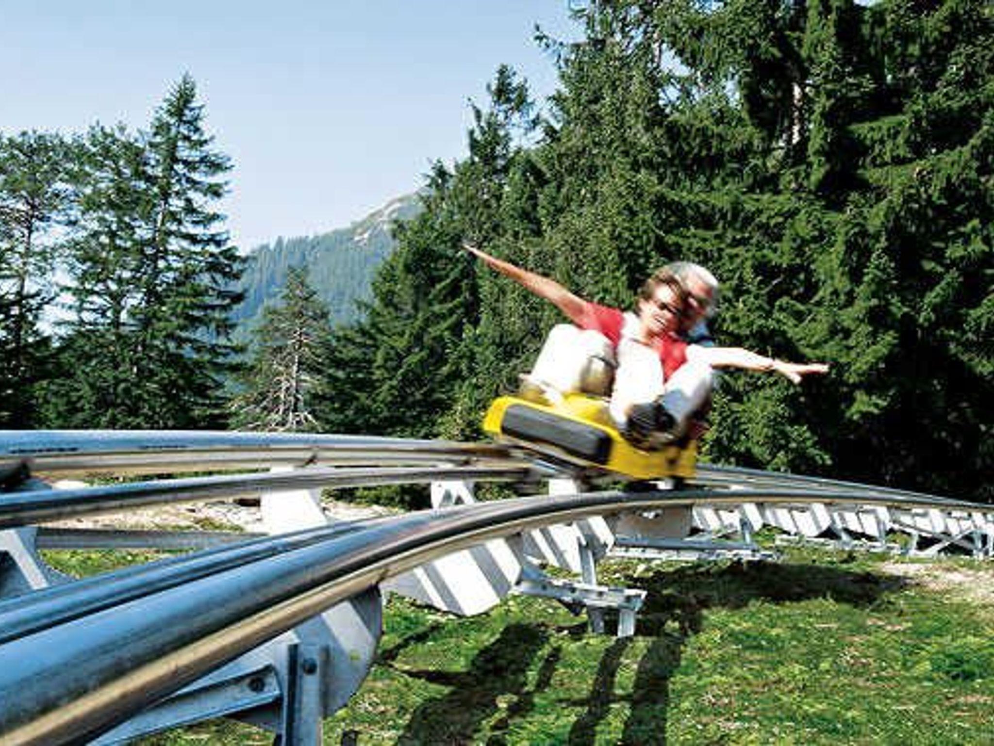 Die längste Alpen-8er-Rodelbahn der Welt befindet sich in Hoch-Imst, nur einige Kilometer entfernt (Sommer- und Winterbetrieb).