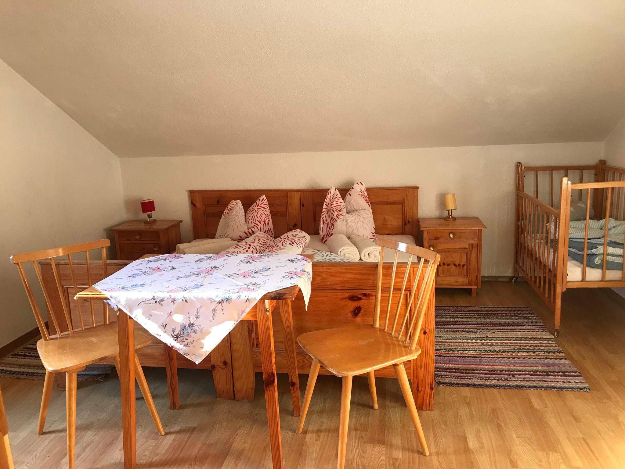 Das 160m² große Ferienhaus besitzt mit dem Erdgeschoss noch zwei weitere Stockwerke. Die Ferienwohnung befindet sich im 2. Obergeschoss. Die Bauernstube befindet sich im Parterre. Weiters gibt es noch eine zweite Küche im Erdgeschoss. Das Haus besitzt zwei Bäder (2. und 3. Stockwerk) und 8 Zimmer. Die 8 Zimmer sind wie folgt aufgeteilt: 4 Zweibettzimmer, 3 Einbettzimmer und 1 Dreibettzimmer. Im Erdgeschoss steht auch ein Waschraum zur Verfügung.