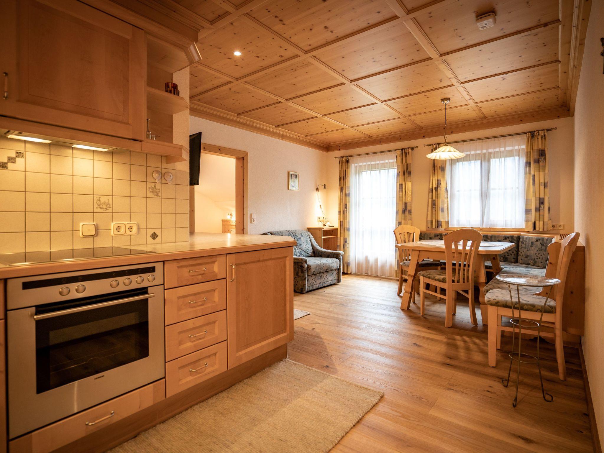 Our comfortably furnished holiday flat is located on the 2nd floor of our farmhouse and is lovingly furnished with lots of wood from local spruce in the Villgrater architectural style.