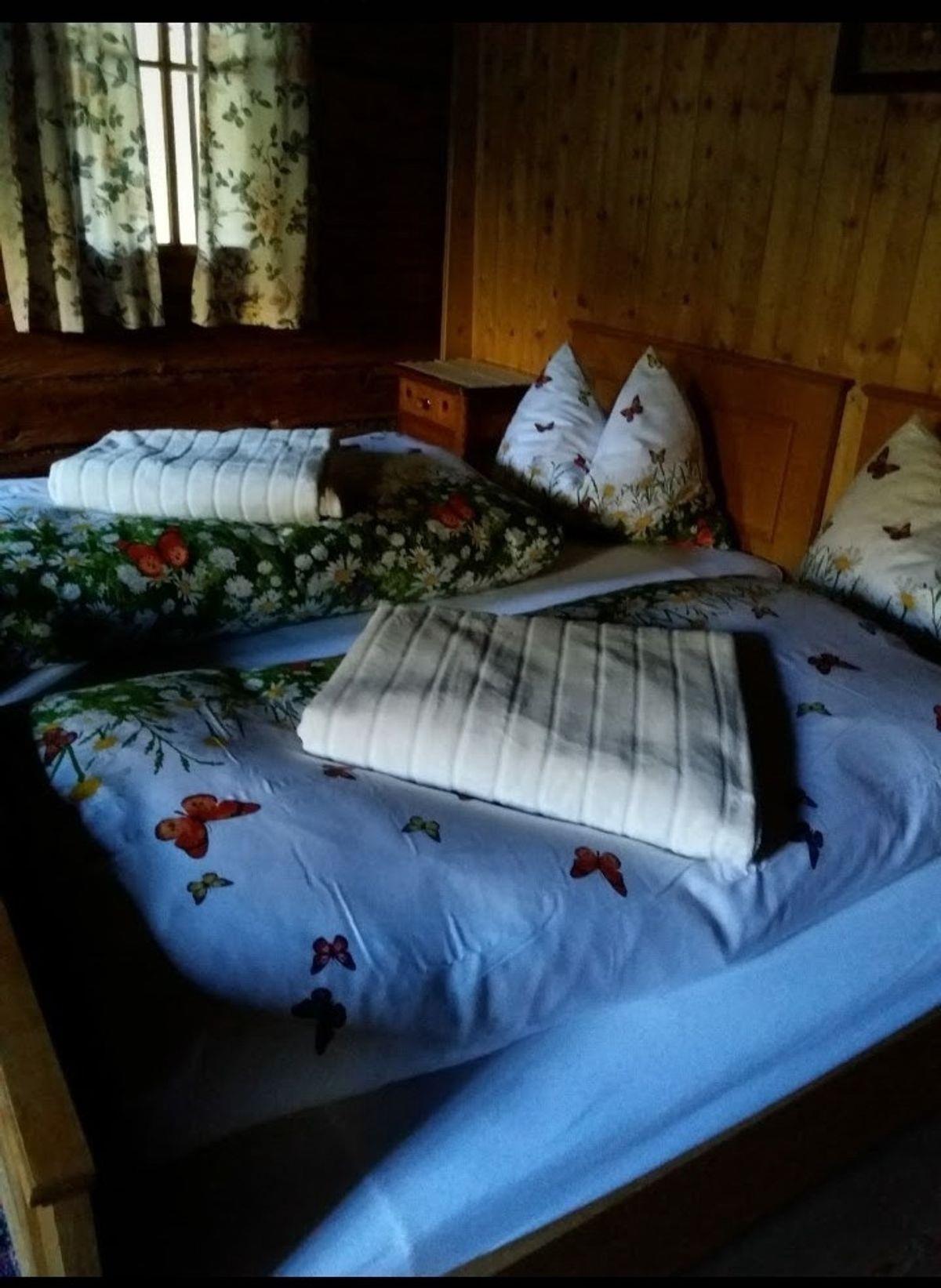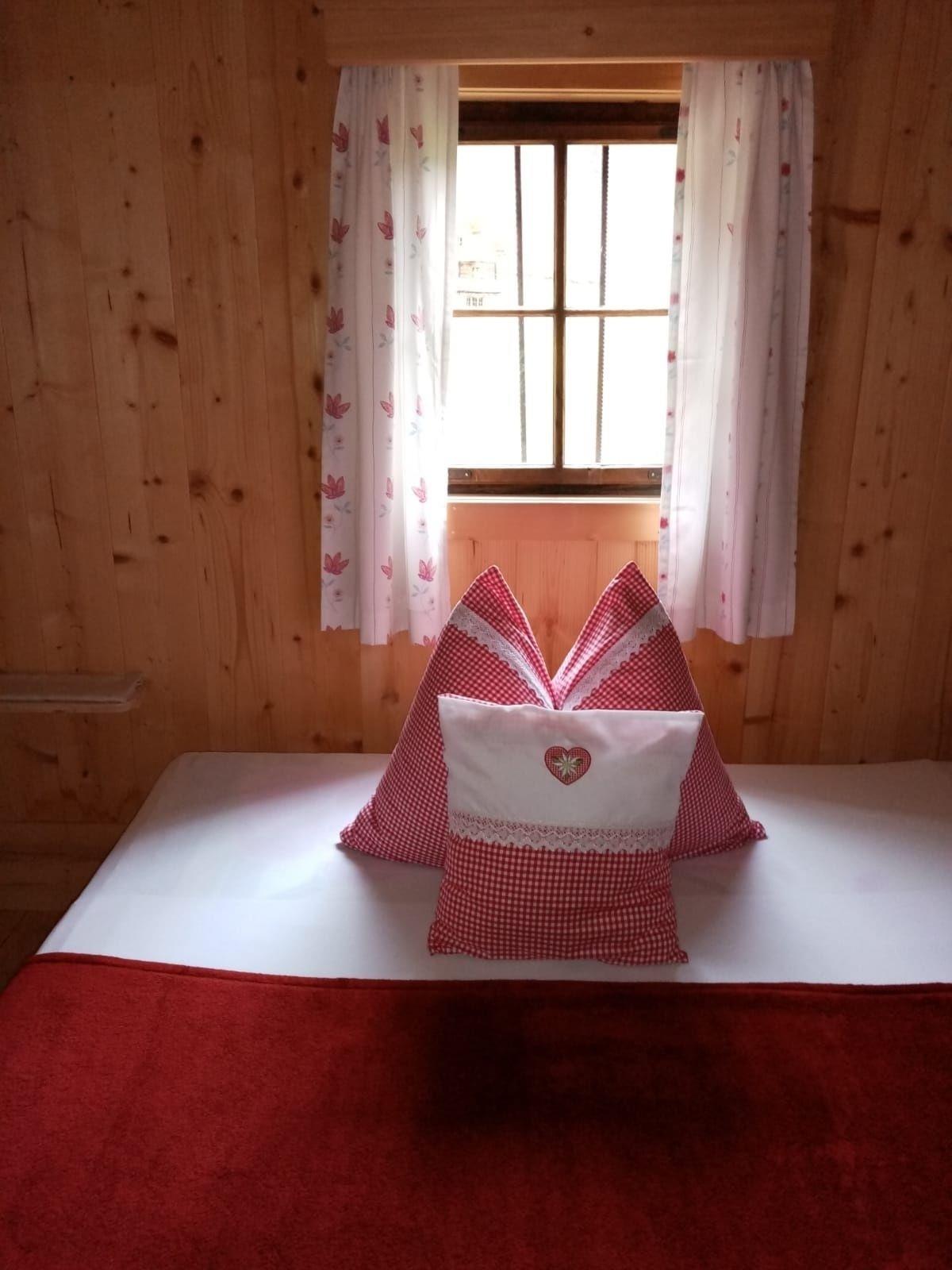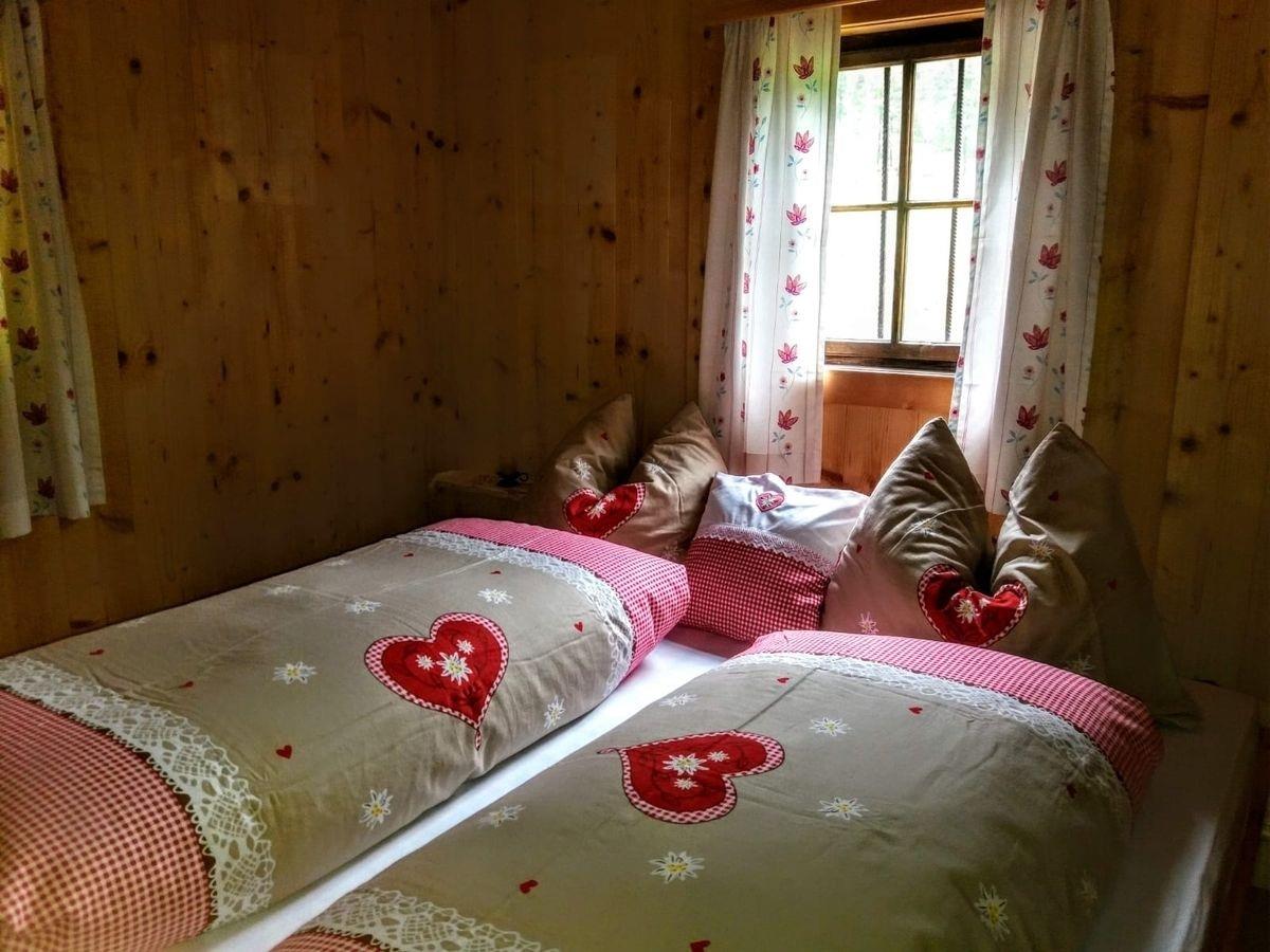 Die Unterkofler Almhütte verfügt über ein Doppelbettzimmer und zwei Zweibettzimmer, die rustikal und liebevoll eingerichtet sind. Das Badezimmer mit Dusche und WC wird durch den Ofen in der Stube mit Warmwasser versorgt – ganz wie früher.