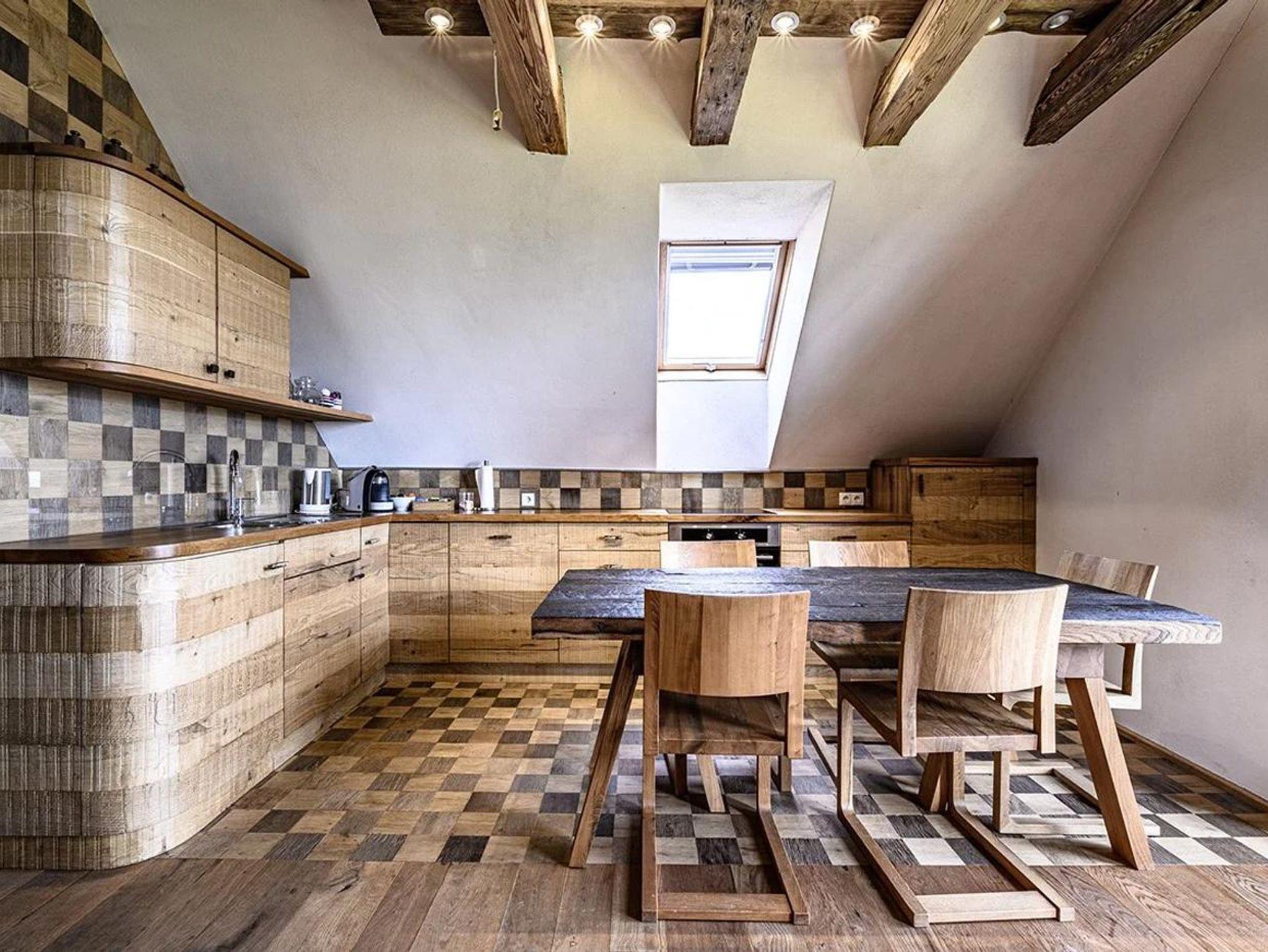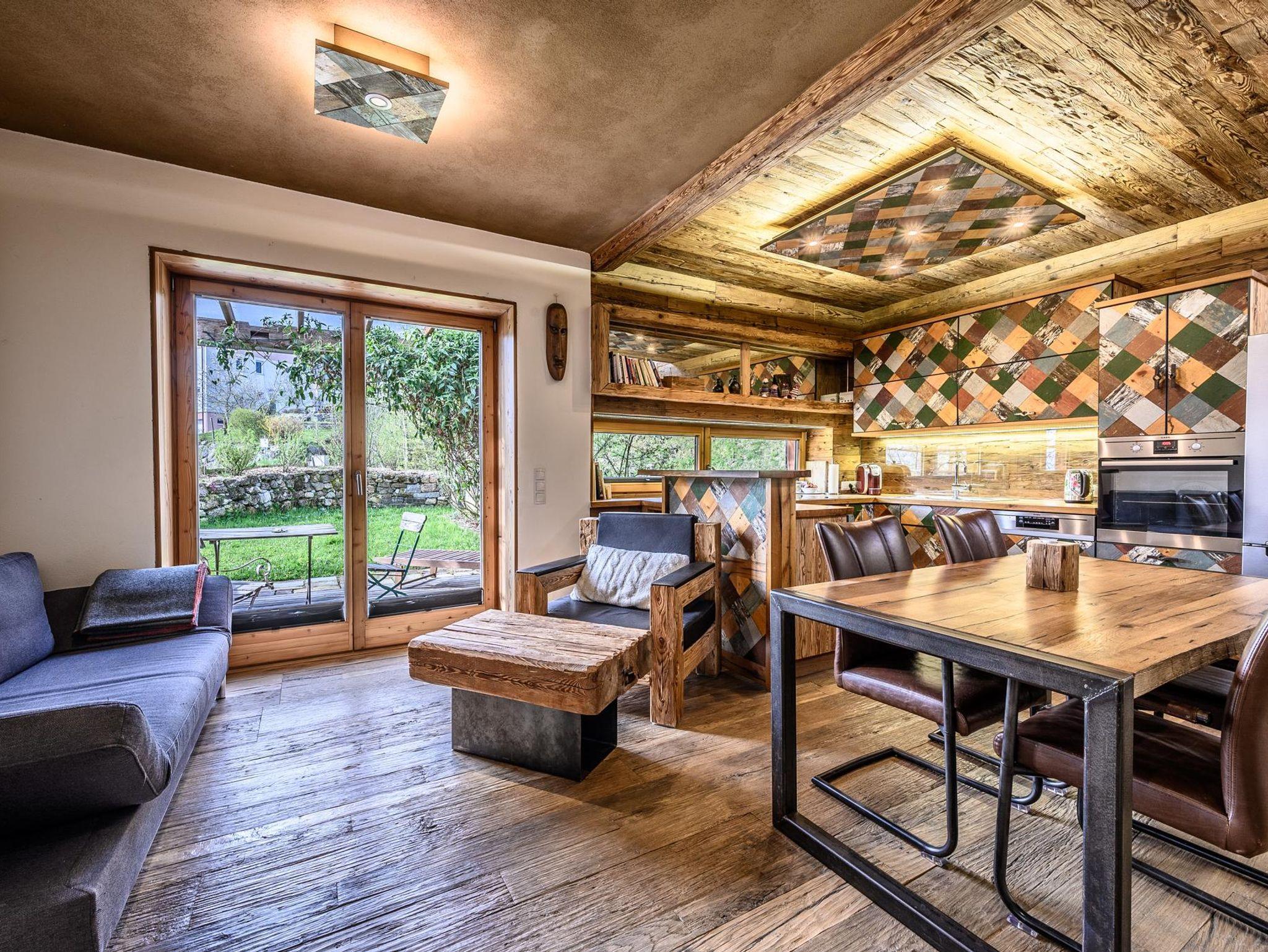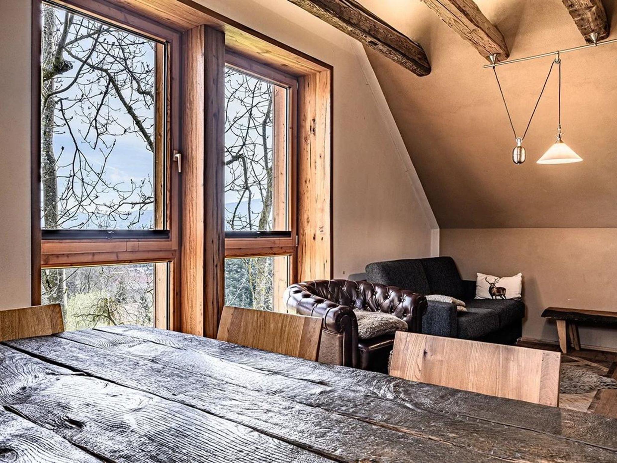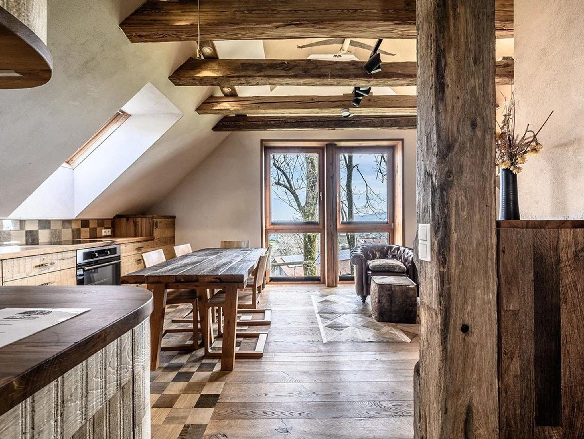 Was für ein Morgen: der Blick aus den bodenlangen Fenstern der Küche fällt auf einen Sonnenaufgang und zwei alte, freundliche Eschen. Abends kannst Du am Kaminfeuer entspannen und mit Familie und Freunden am großen Esstisch Platz nehmen.