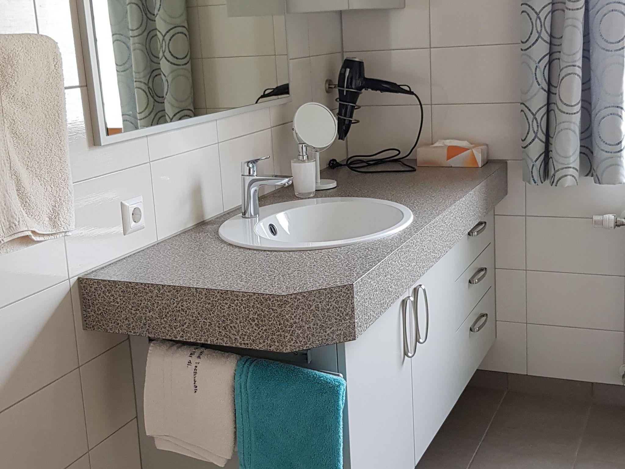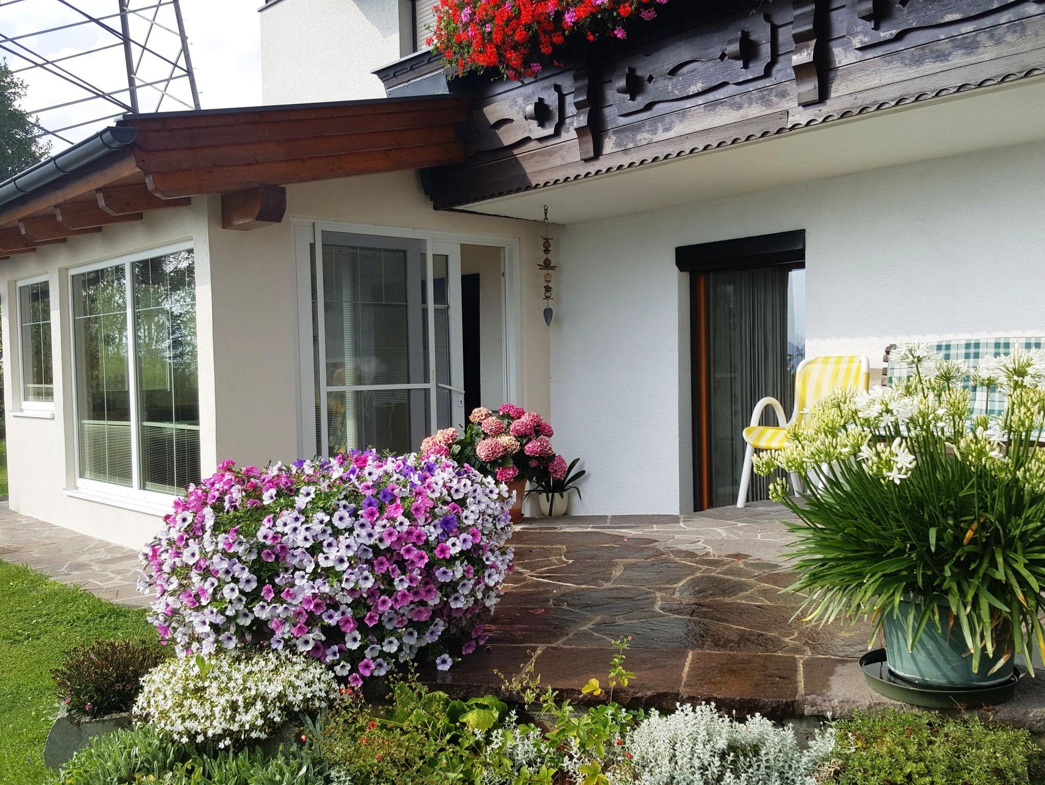 Ruhige, sonnige 75m² große FerWO im 1. Stock :2 Schlafzimmer mit Doppelbetten, Wohnküche mit gemütlicher Sitzecke und voll ausgestatteter Küche, geräumiges Duschzimmer , sep.WC, großer Balkon, Vorraum mit Garderobe, Carport, Garten-Benützung.