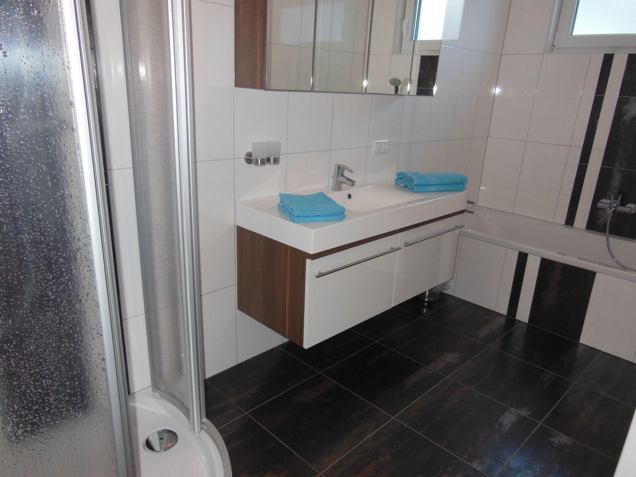 This light-flooded holiday flat offers you two bedrooms, a living room with dining and cooking area, a bathroom and a separate WC. The entire living area of 65 m² is pleasantly tempered by underfloor heating. In the first bedroom you sleep in a double bed measuring 180 cm x 200 cm, which is surrounded by two bedside tables on both sides. The second bedroom is furnished in the same way, but also has a single bed measuring 90 cm x 200 cm. Wardrobes for storing your travelling wardrobe are available in both rooms. The heart of the flat is the cosy living area with integrated kitchen-diner. After a day out, take a seat and relax on the leather sofa with récamiere. The flat-screen TV with satellite TV provides entertainment in the evening. The fully equipped kitchenette allows you to cook for yourself with a dishwasher, a fridge with freezer compartment, a four-zone ceramic hob with oven and the usual small electrical appliances such as a coffee machine, kettle, microwave and toaster. The dining table invites you to share a meal on the comfortable corner bench with two chairs. The daylight bathroom is equipped with a vanity unit with mirror cabinet, a towel dryer, a shower cubicle and a bathtub. There is also a wash hand basin in the separate WC.