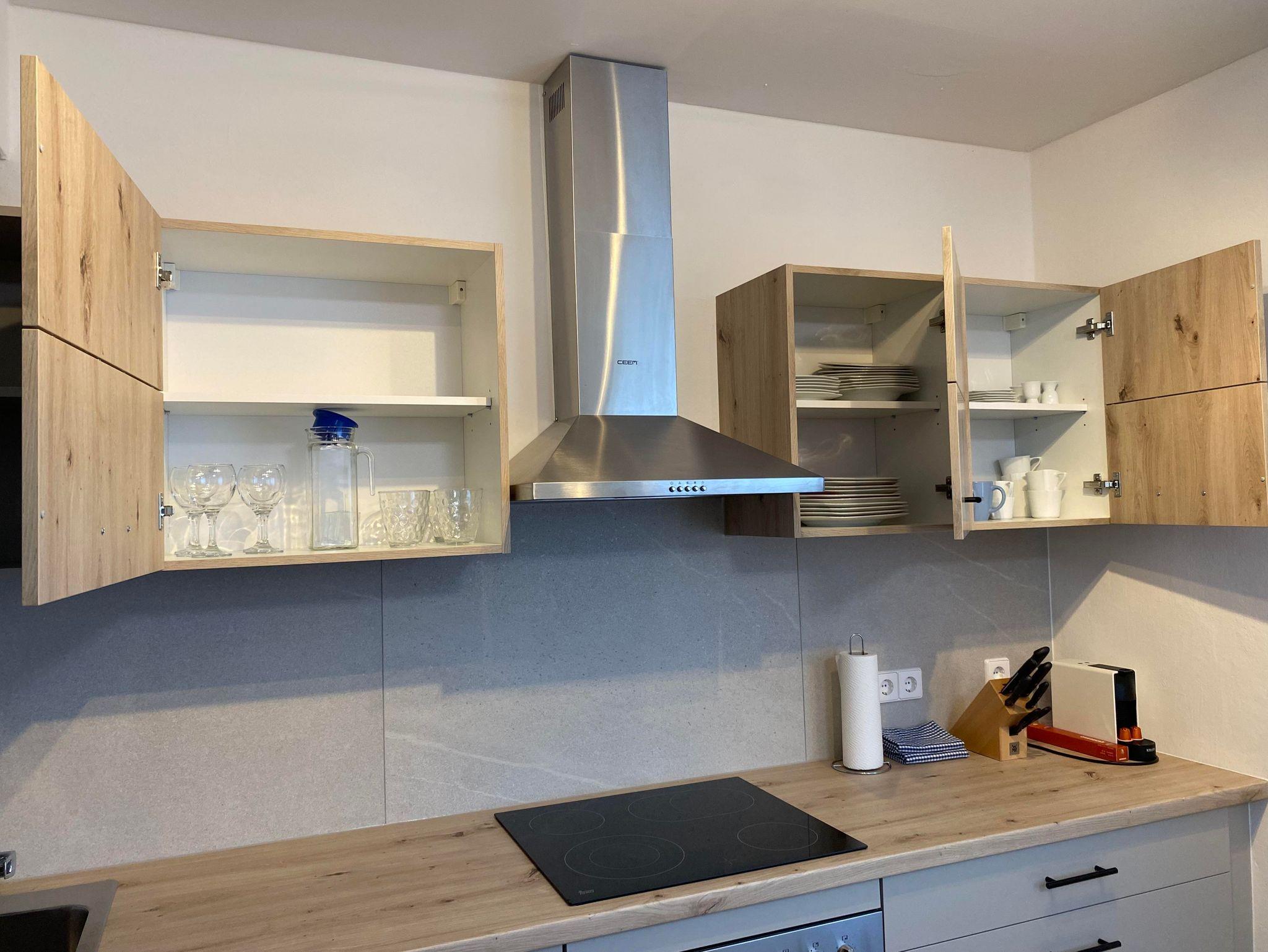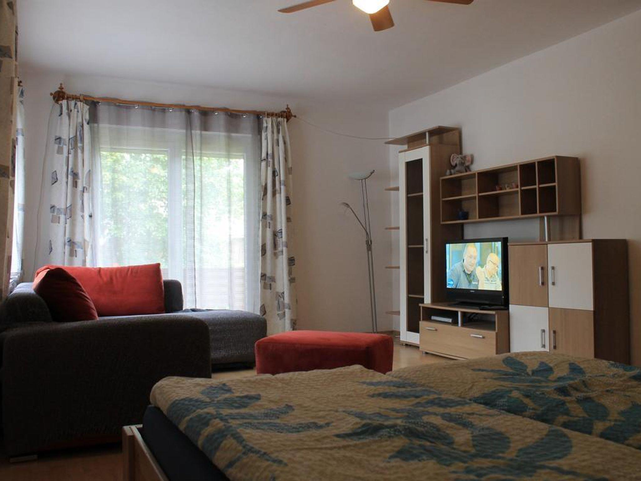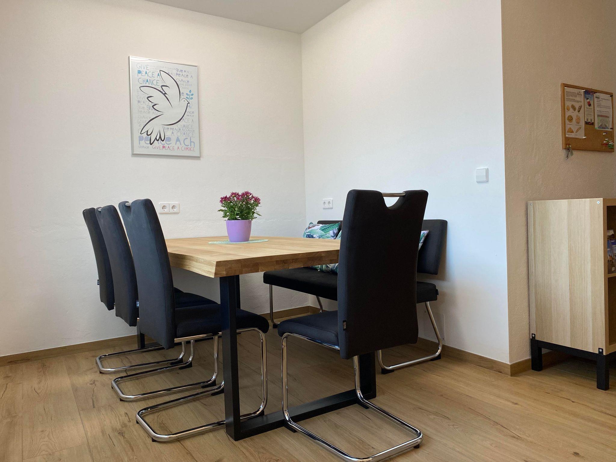 Das Appartement liegt in einem eigenständigen Ferienhaus mit separaten Eingang. Die Wohnung besteht aus einer großen voll ausgestatteten Küche mit Geschirrspüler, Backofen, Mikrowelle und genügend Geschirr. Im großen Wohnzimmer befindet sich eine Auszieh-Couch sowie ein Doppelbett. Weiters gibt es ein Schlafzimmer für bis zu 3 Erwachsene mit einem Doppel- und einem Einzelbett. Ein Gang, ein separates WC sowie ein Badezimmer mit Dusche und Wanne stehen auch zur Verfügung. Das Angebot wird abgerundet durch den Balkon mit Aussicht ins Grüne und Sonnenschein ab Mittag bis zum Abend.