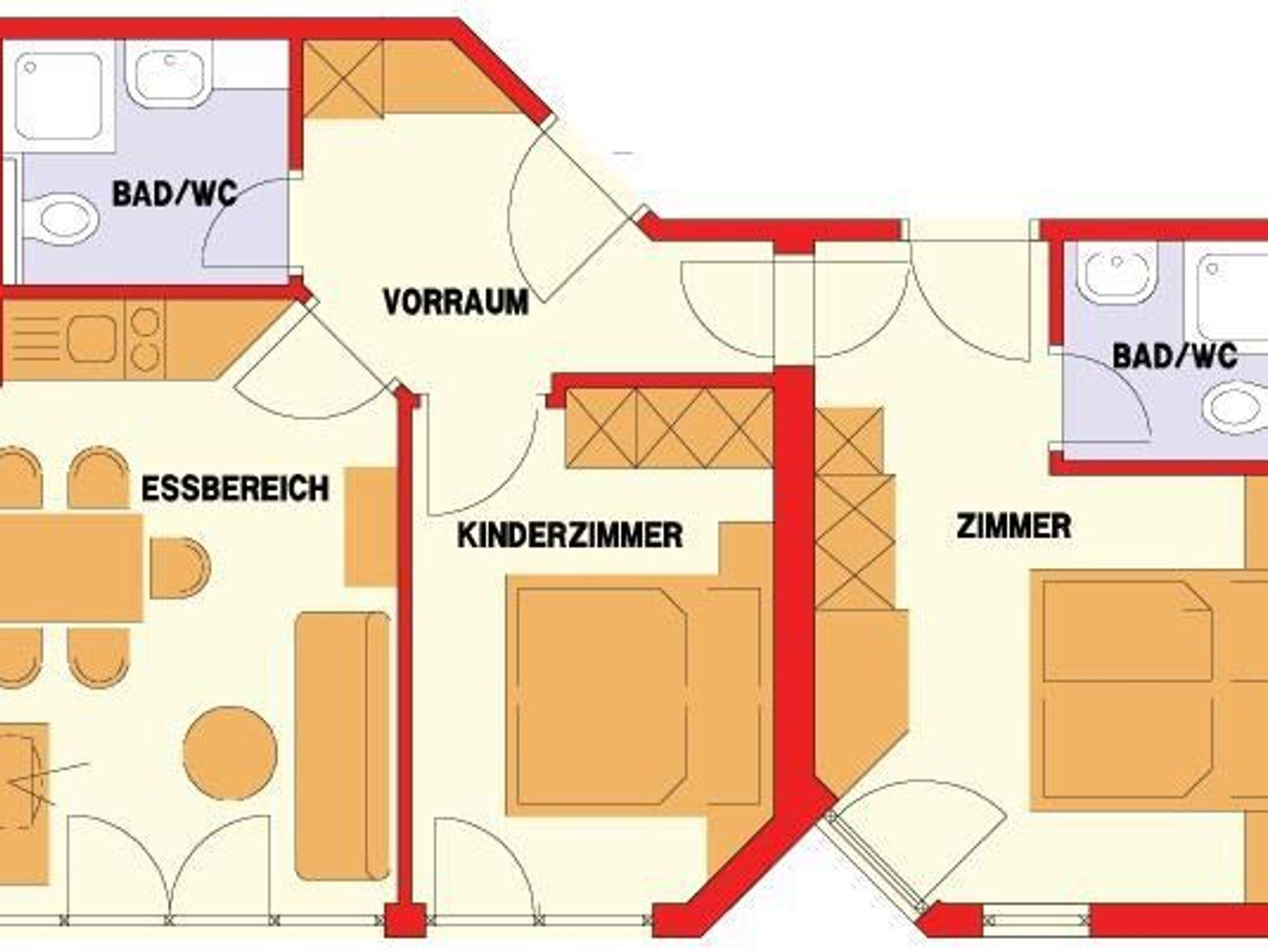 Zwei getrennte Schlafzimmer mit je eigener DU/WC,Vorraum,