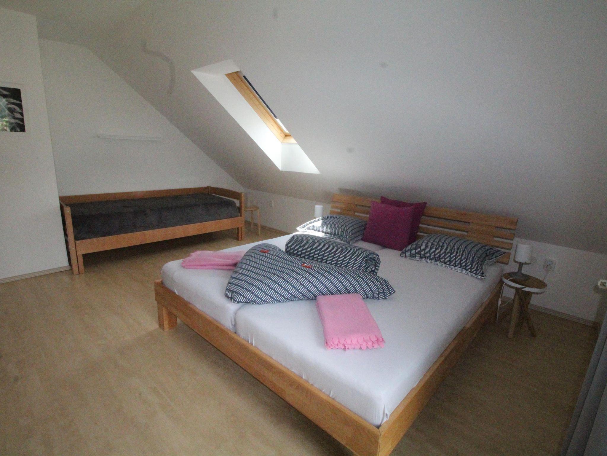 Wir haben drei Apartments, eine großen Garten, in dem Kinder spielen können, und eine große Dachterrasse, auf der Sie sich entspannen und die schöne Aussicht genießen können.