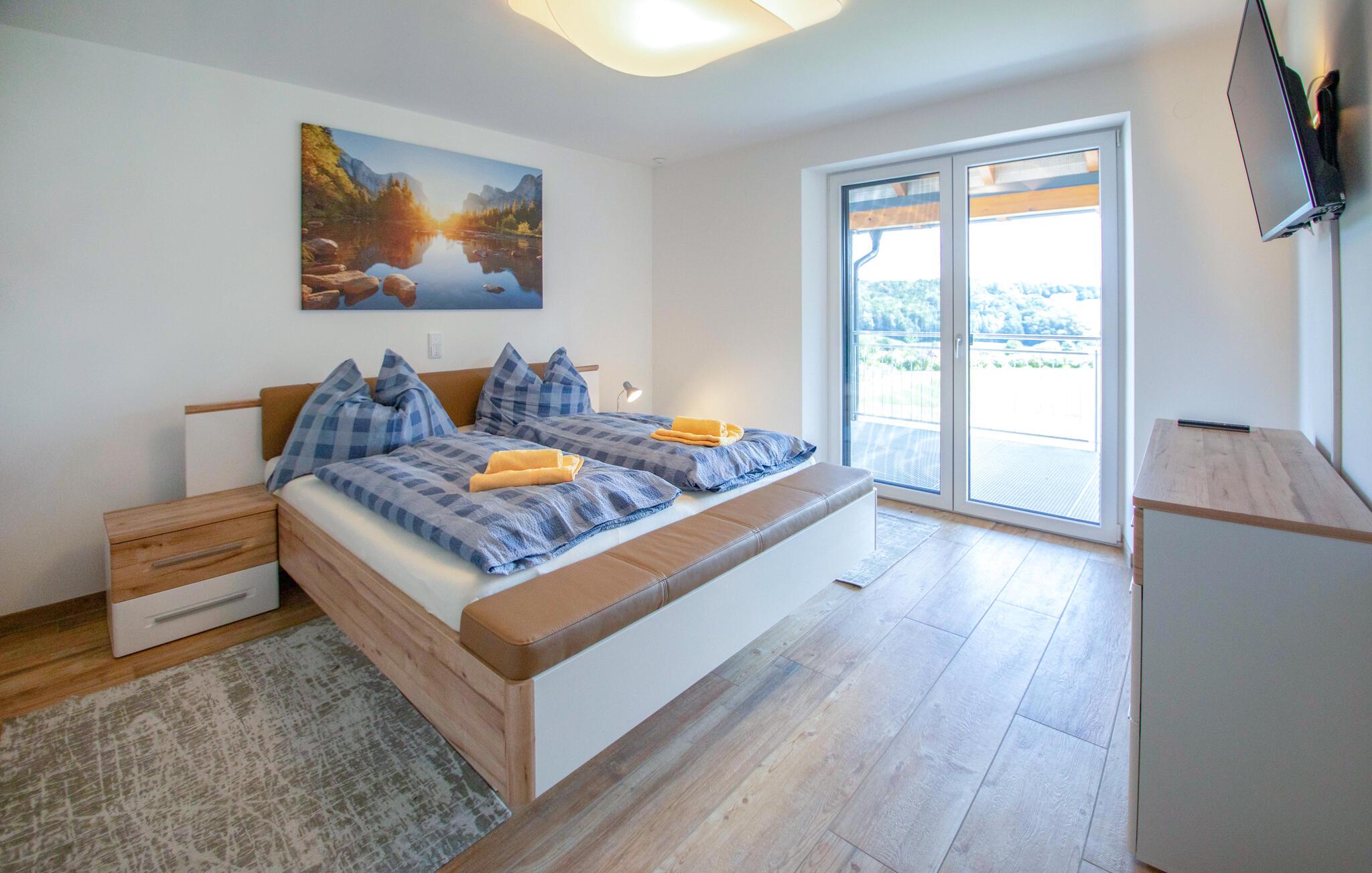 Gled deg til en vakker utsikt over landskapet fra dette komfortable feriehuset.