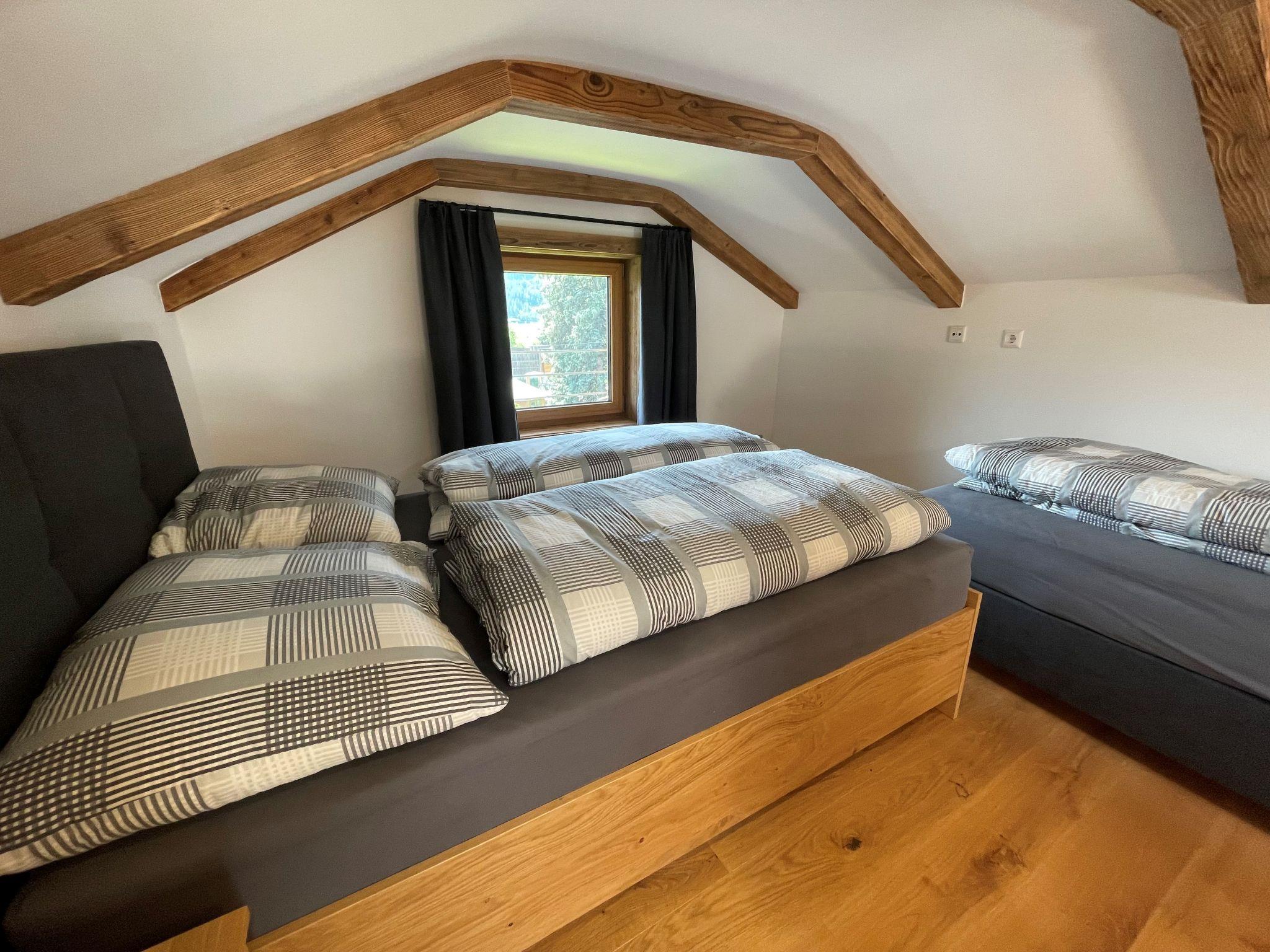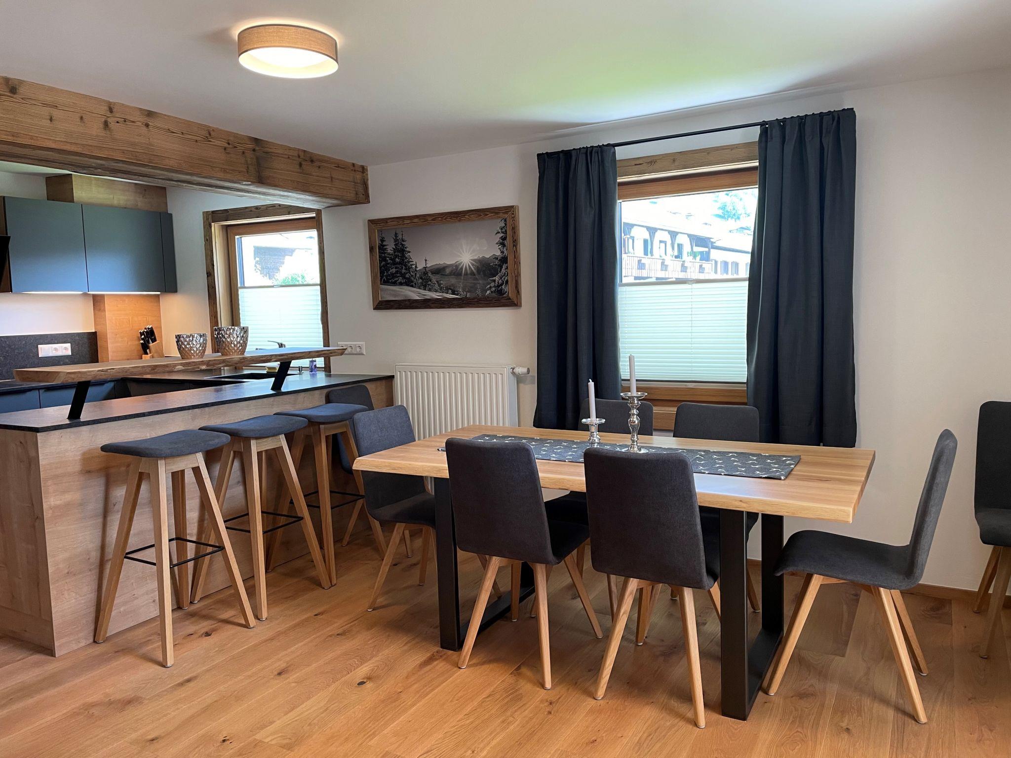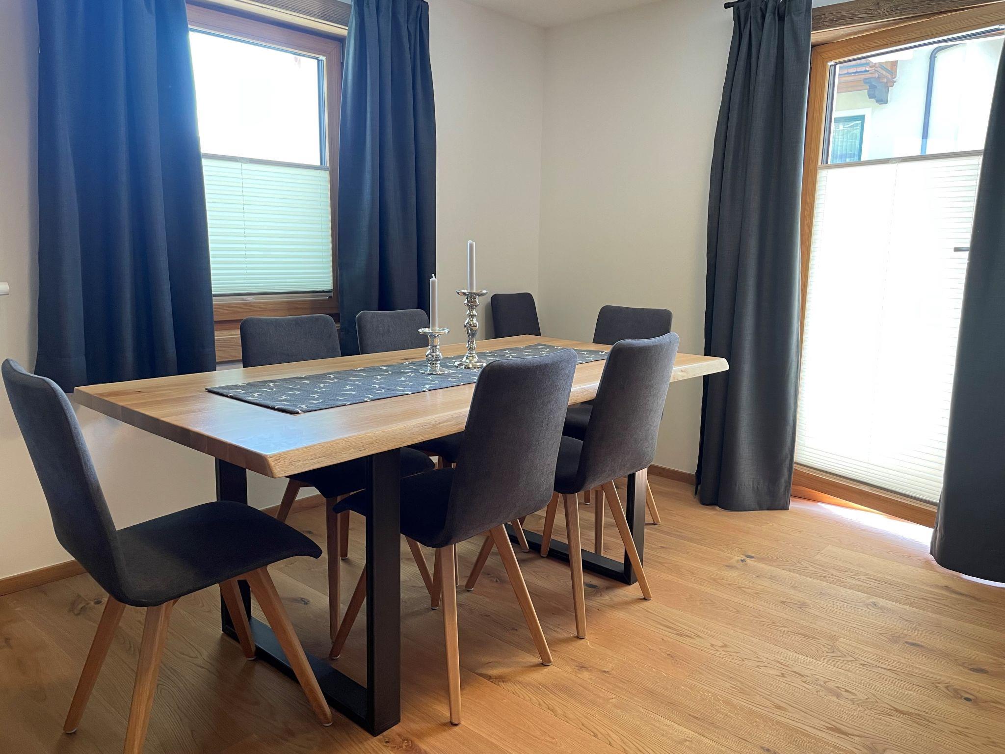 "Haus Nussbaum", 4-room house 100 m2 on 2 levels. Spacious and bright, comfortable and modern furnishings: entrance hall with separate WC. Living/dining room with Scandinavian wood stove, dining table, satellite TV, international TV channels and flat screen. Exit to the terrace. Open kitchen (oven, dishwasher, 4 ceramic glass hob hotplates, toaster, kettle, electric coffee machine) with bar. Upper floor: 1 double bedroom. 1 room with 2 beds. Open gallery with 1 sofabed and 1 double bed. 2 showers/WC. Wooden floors, natural stone floors. Large terrace 20 m2. Terrace furniture. Facilities: iron. Internet (WiFi, free). Parking, garage on the property. Please note: non-smokers only. Maximum 1 pet/ dog allowed. Fire extinguisher. Instead of an enclosed bedroom, some sleeping areas are located in an open-plan area (gallery, alcove, etc.). 50616-001354-2021