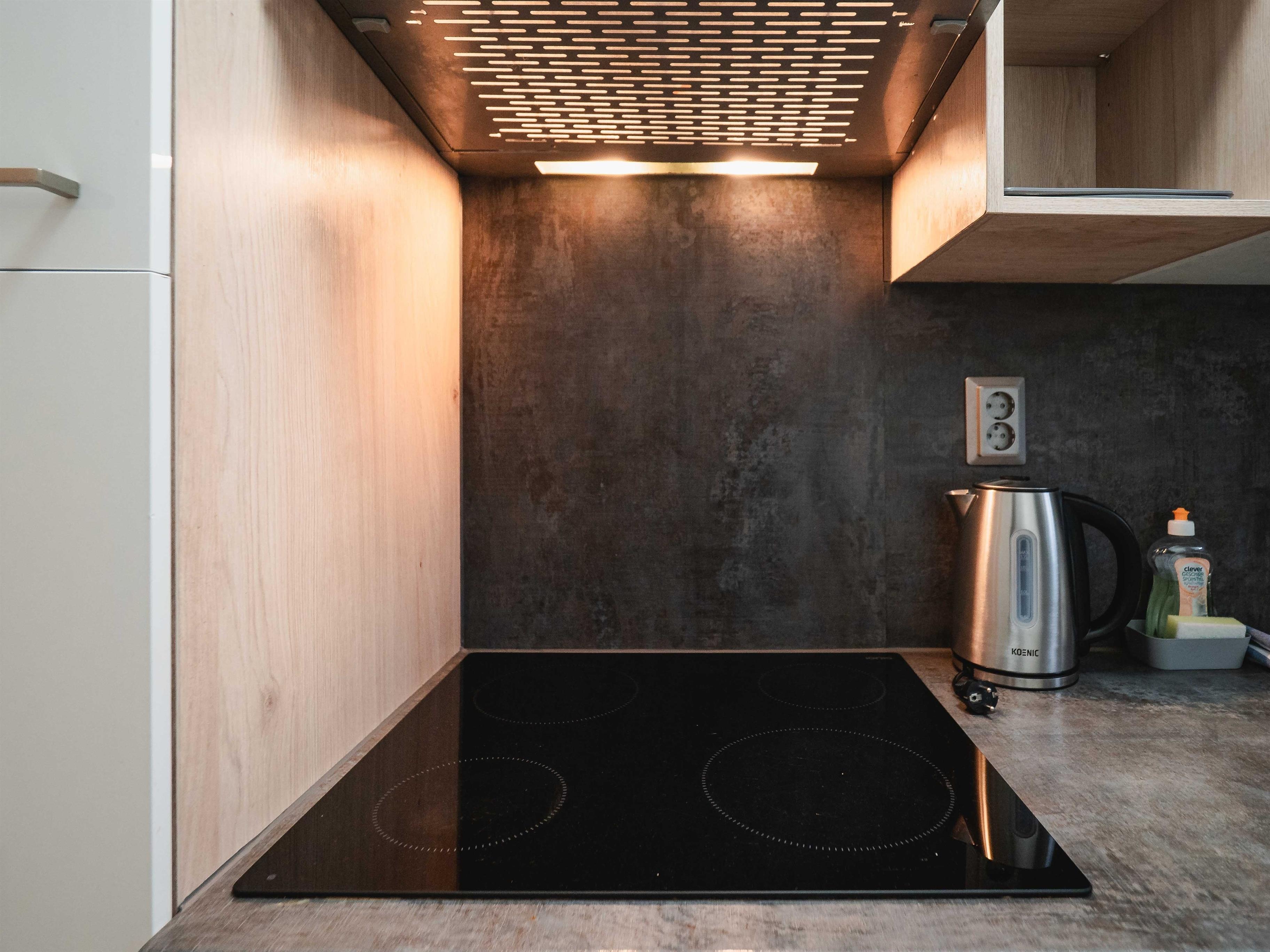 Richtige Urlaubsstimmung kommt auf dem schönen Balkon der Ferienwohnung auf. In der gut ausgestatteten Küche finden Sie neben einem Kühlschrank auch eine Mikrowelle und einen Backofen.