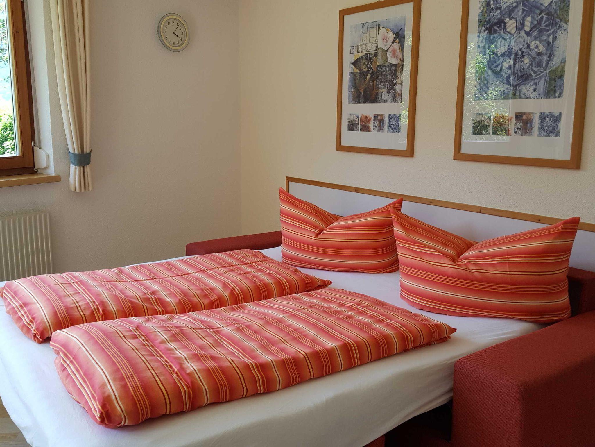 Wohnschlafzimmer mit ausziehbarer Doppelcouch, smart TV