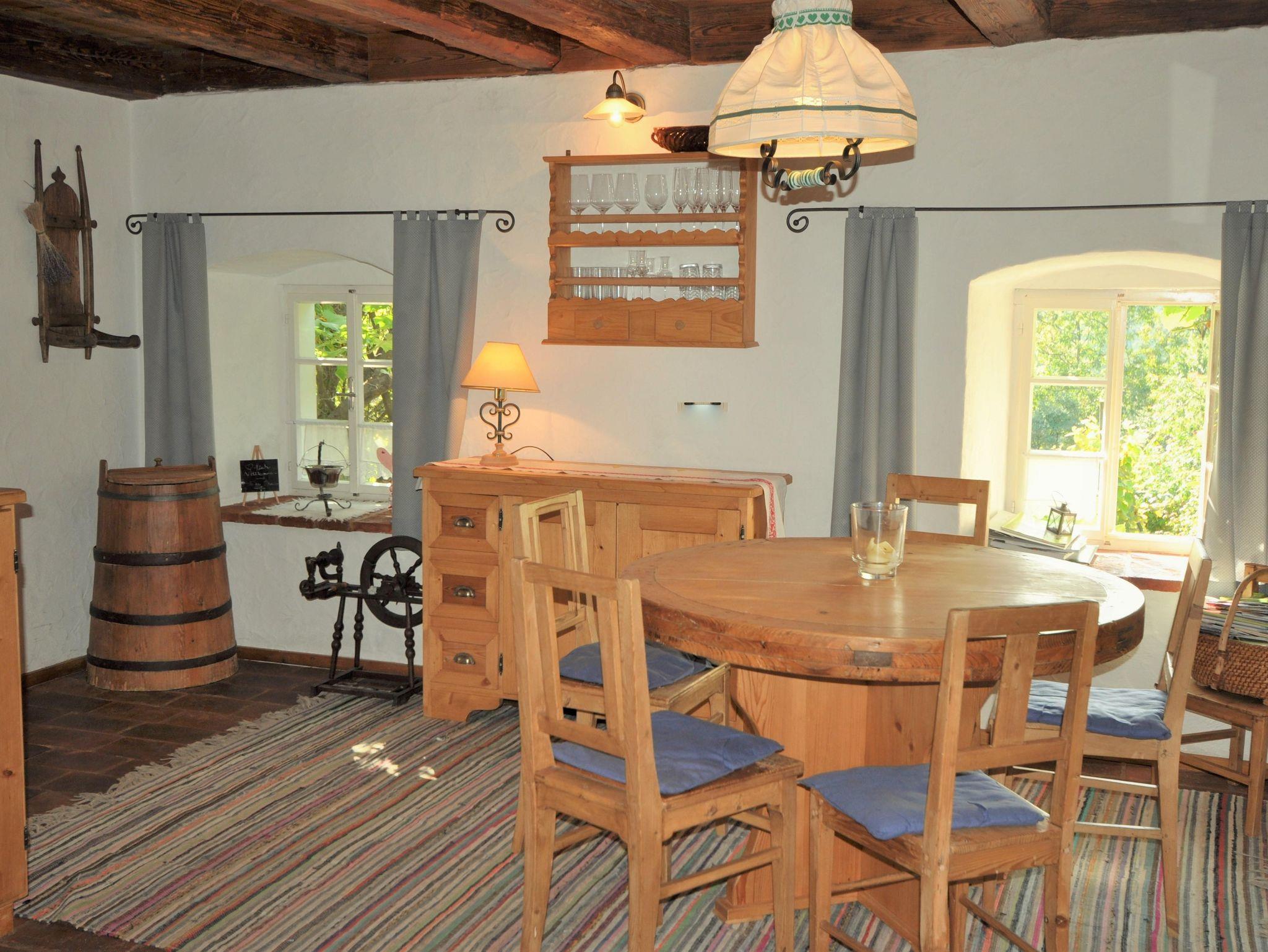 PRESSHAUS Originell, gemütlich und rustikal. Im Erdgeschoß gibt’s: *Eine rustikale Küche mit einem gemütlichen Essplatz. *Eine urige Wohnstube mit Kaminfeuer. *Einen urigen Terrassenplatz. *WC und Waschbecken. *Eine Waschmaschine. Im Obergeschoß gibt’s: *Ein gemütliches „Oma-Schlafzimmer“. *Eine kuschelige Sitzgarnitur. *Bad mit WC, Dusche und Waschbecken *Einen herrlichen Panoramablick aus dem Galeriefenster. *Und,...noch eine weitere Schlafmöglichkeit. PERFEKT FÜR EINE FAMILIE MIT ZWEI KINDERN ODER ZU NUR ZU ZWEIT