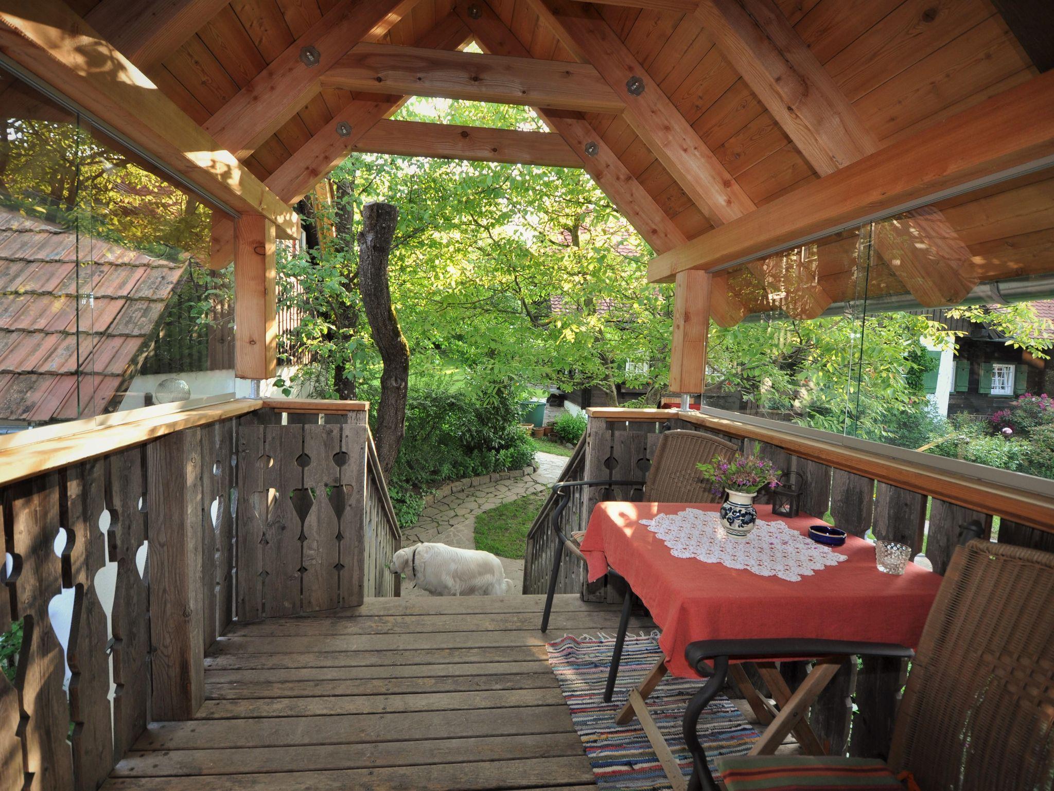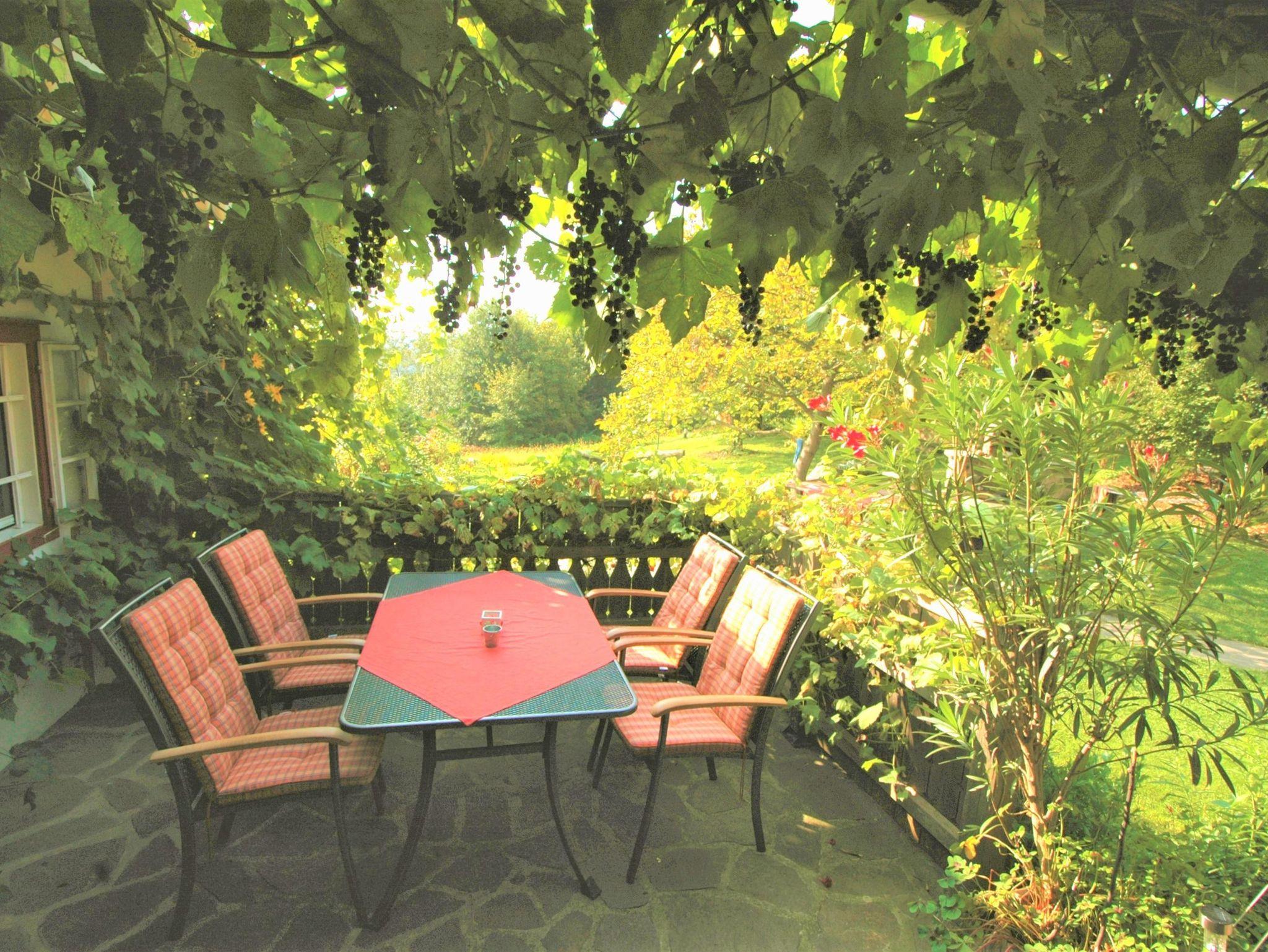 *Und.....einen schönen Sitzplatz am überdachten Balkon und unter dem Nussbaum