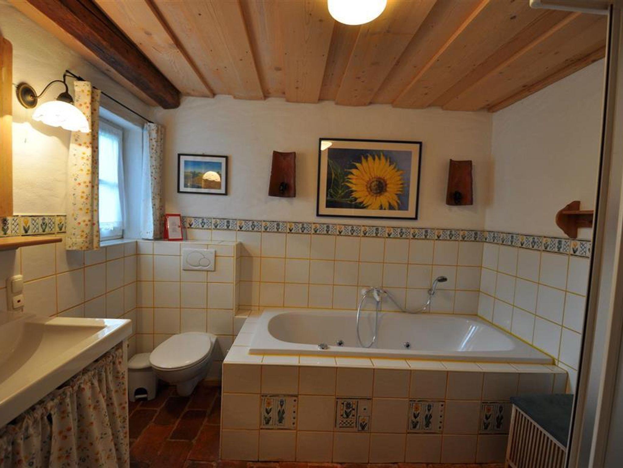 • Großes Bad mit Whirl-Wanne, Dusche , Waschbecken und WC