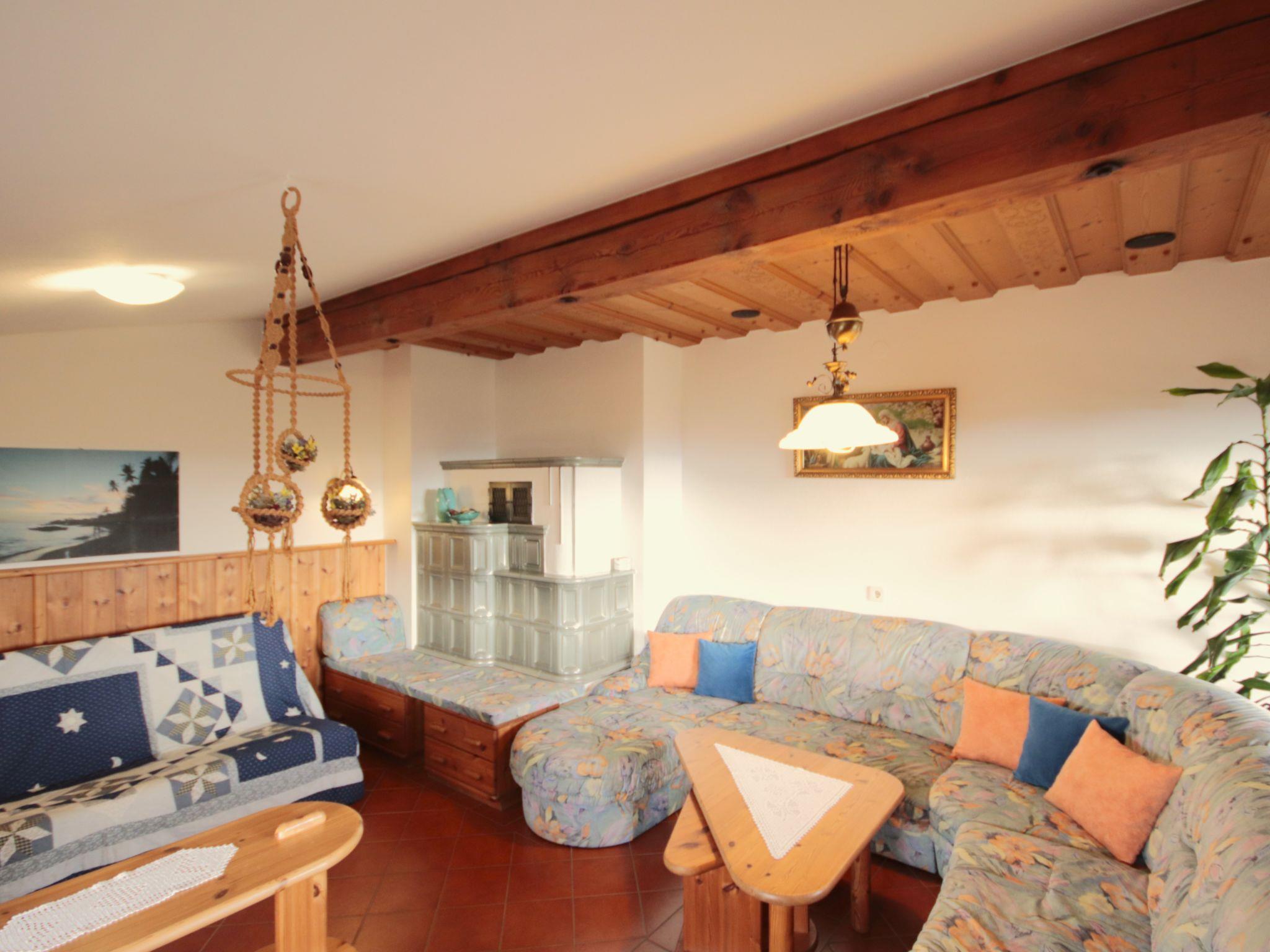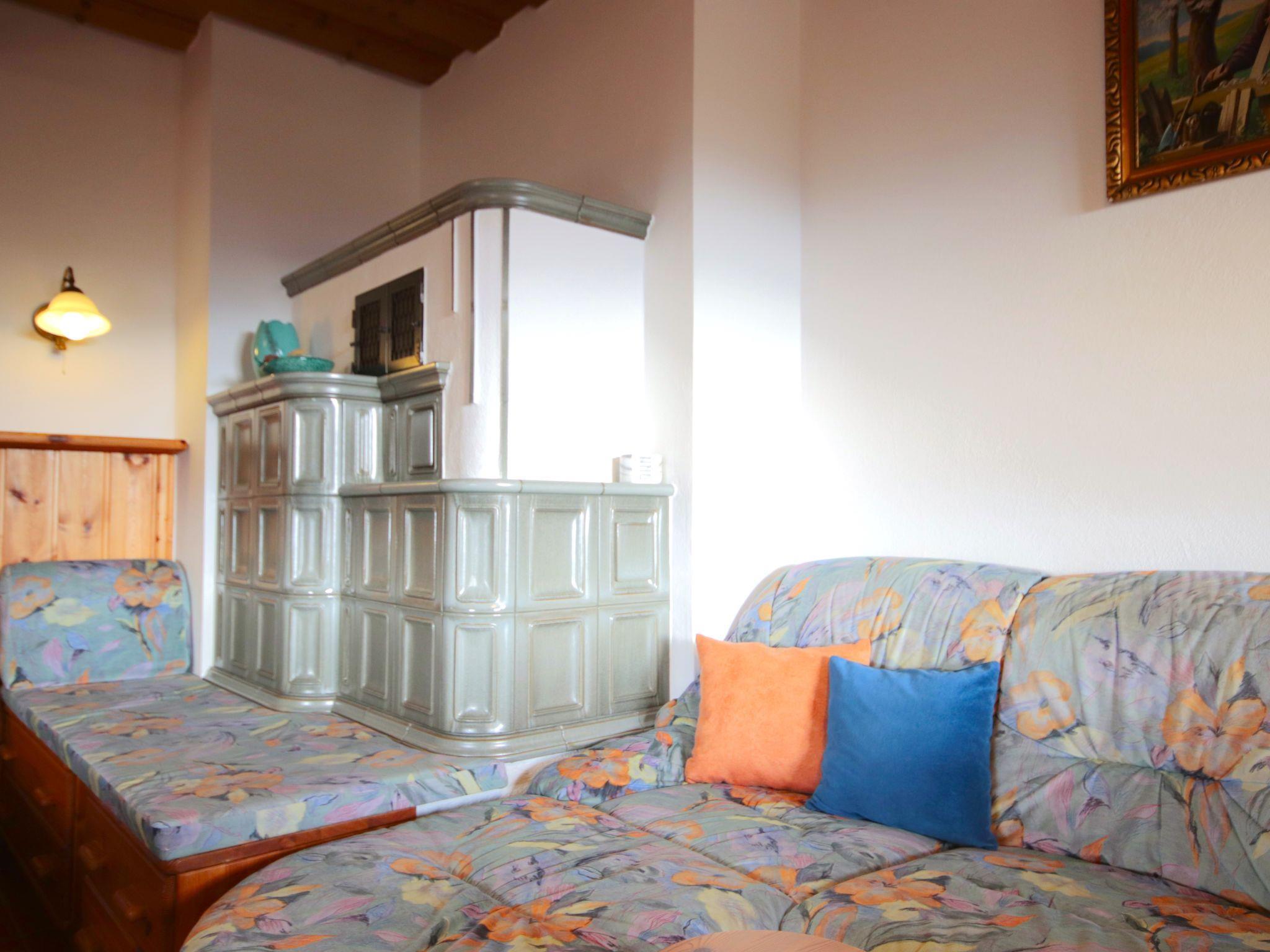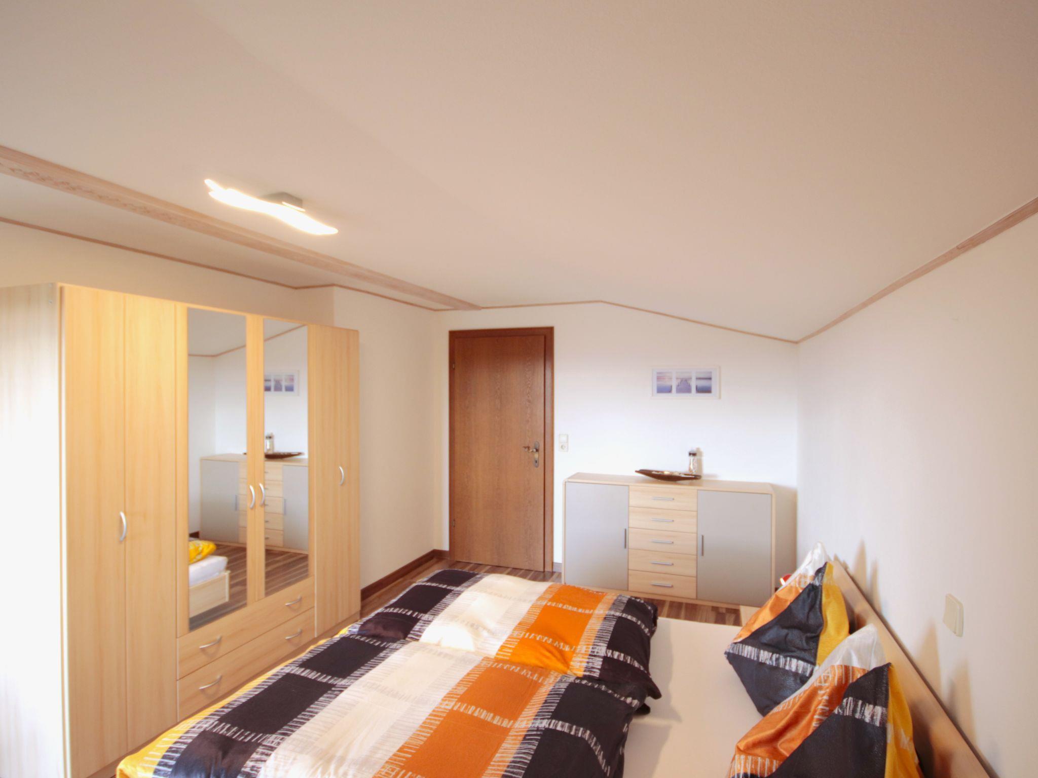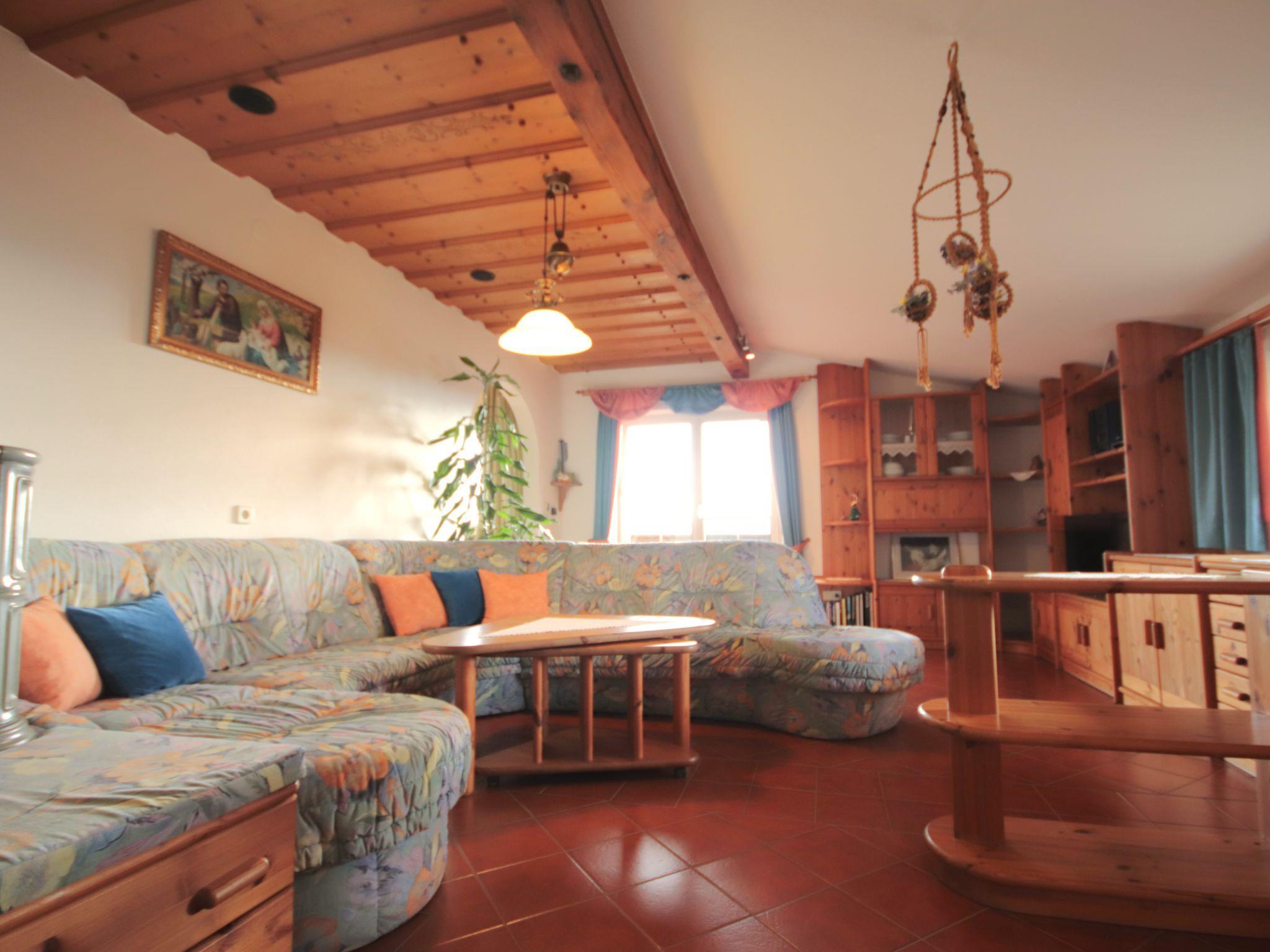 3-room apartment 100 m2, on the upper floor. Spacious and bright, comfortable and cosy furnishings: entrance hall. Large living/sleeping room with 1 double sofabed (140 cm, length 200 cm), Scandinavian wood stove and satellite TV. 2 double bedrooms. Kitchen (oven, dishwasher, 4 ceramic glass hob hotplates, electric coffee machine) with dining nook. Bath/shower, sep. WC. Balcony 10 m2. Balcony furniture. Marvellous panoramic view of the countryside. Facilities: baby cot for up to 2 year olds. Internet (WiFi, free). Please note: suitable for families. Non-smoking house.
