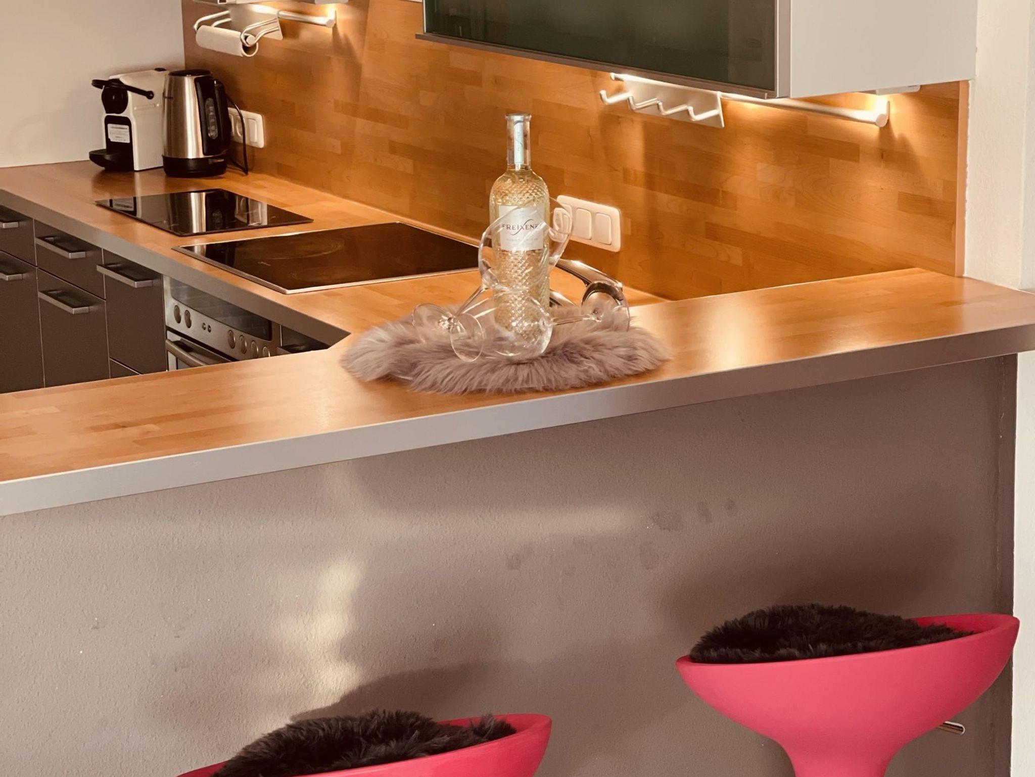 Die Ferienwohnung mit einer Größe von zirka 80 m² befindet sich im 1. Stock und verfügt über eine große gemütliche Wohnküche, welche mit einem Flachbild-TV im Wohnbereich sowie einem Geschirrspüler, Kühlschrank und einem Ofen im Küchenbereich ausgestattet ist. Weiters verfügt die Wohnung über 2 Schlafzimmer, einem großen Bad mit Badewanne, Dusche und WC, einem separatem WC, sowie einem Balkon. Die gesamte Wohnung ist mit einer Fußbodenheizung ausgestattet.