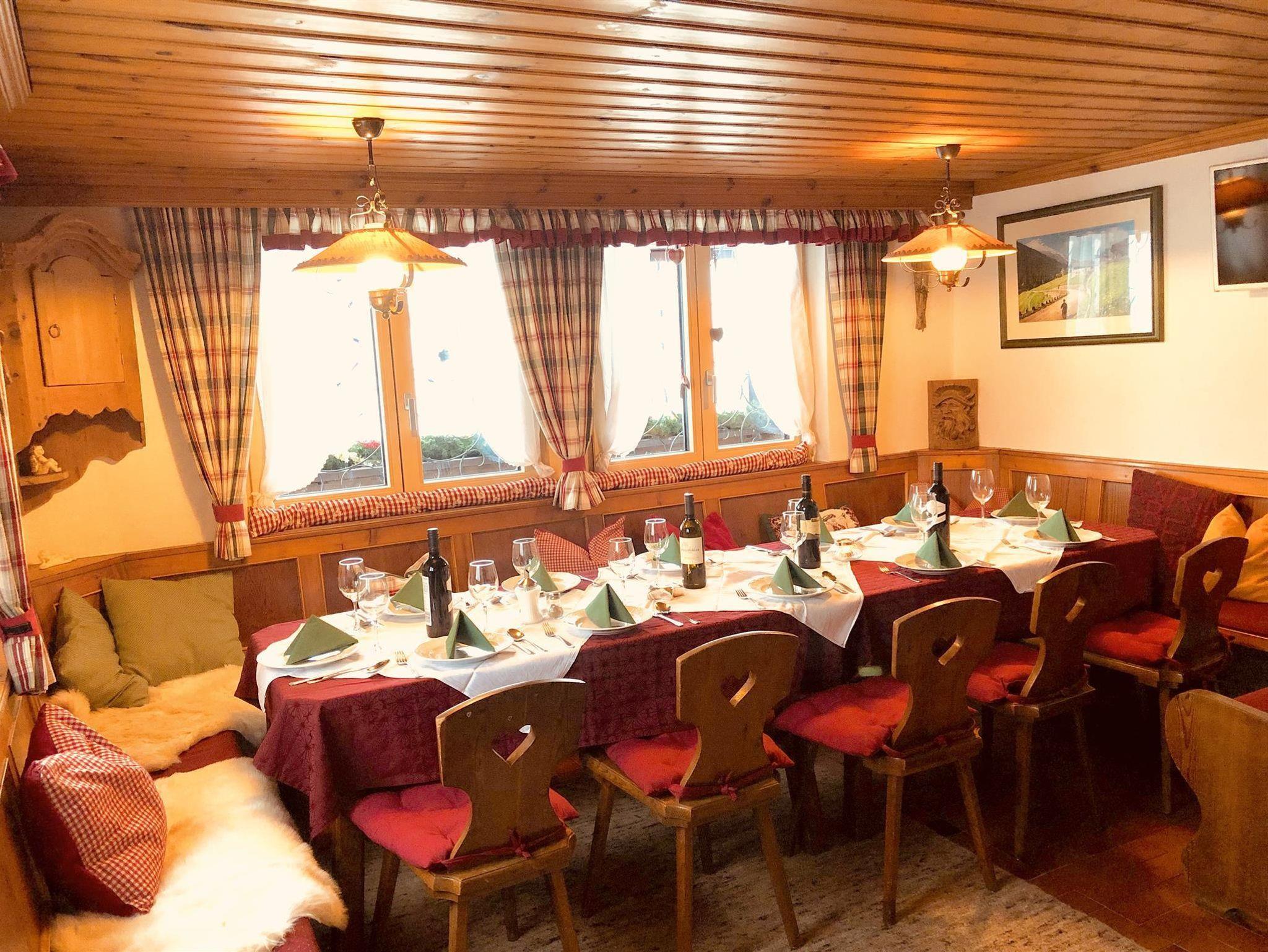Eine Etage tiefer, im Erdgeschoss, befindet sich eine 7 m² große, separate, modern eingerichtete Küche (Bäckofen, Spülmaschine) zur freien Benutzung, sowie der geräumige, 40 m² Aufenthaltsraum(2 Esstische-12 Personen), in dem Sie sich nach einem aufregenden Schitag entspannen können.