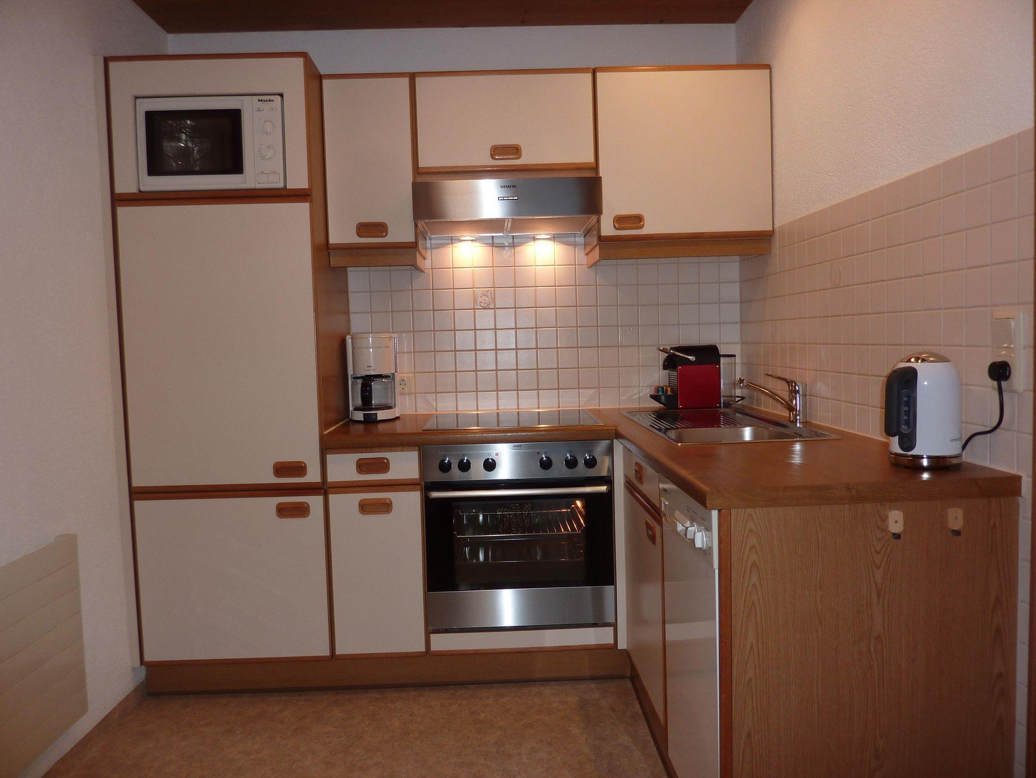 Vollholzmöbel, Spülmaschine, Mikrowelle, Kapselkaffeemaschine, Kaffeemaschine, Wasserkocher, Filtertüten, Küchenrolle, Geschirrspülmittel, Waschmittel, Spültabs, Müllsäcke und Küchenwäsche.