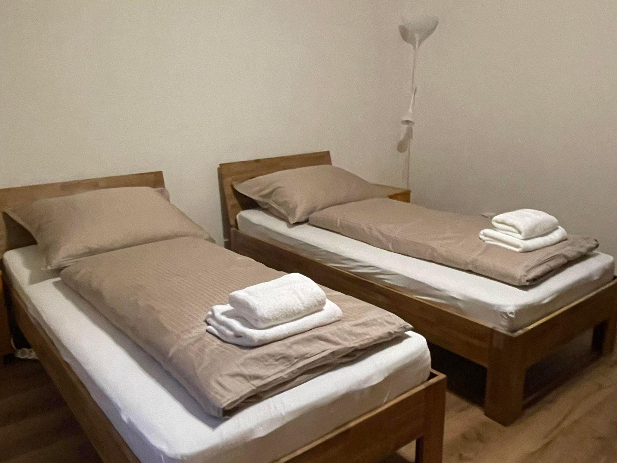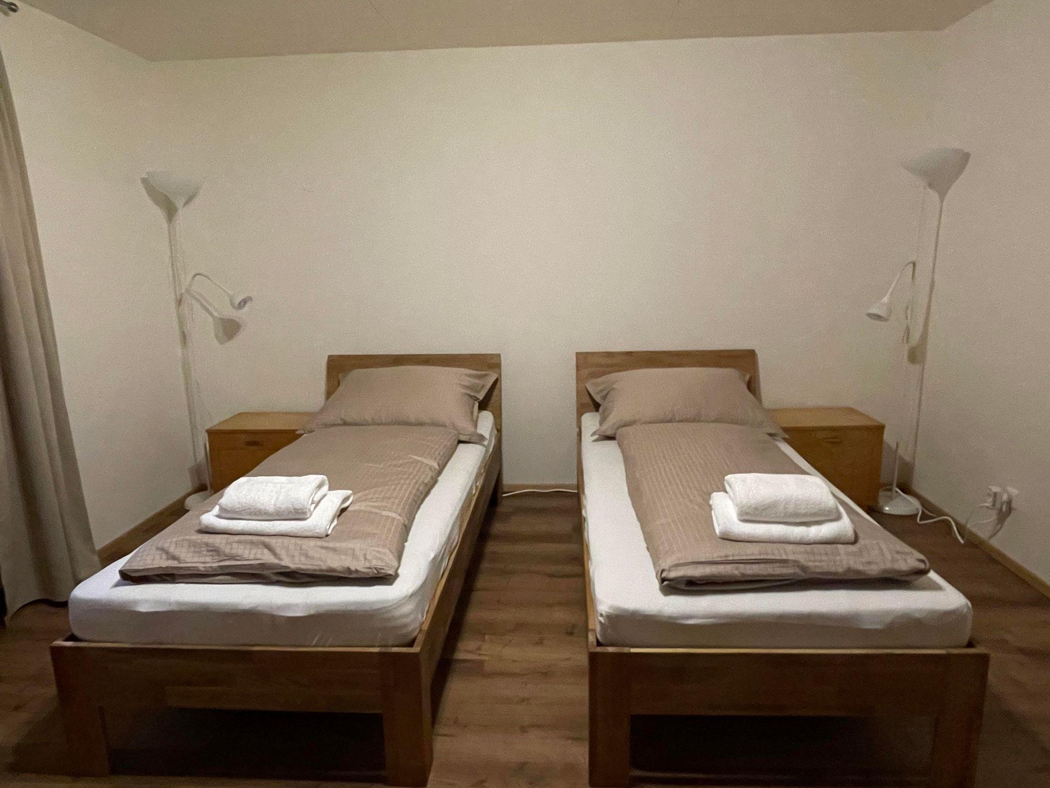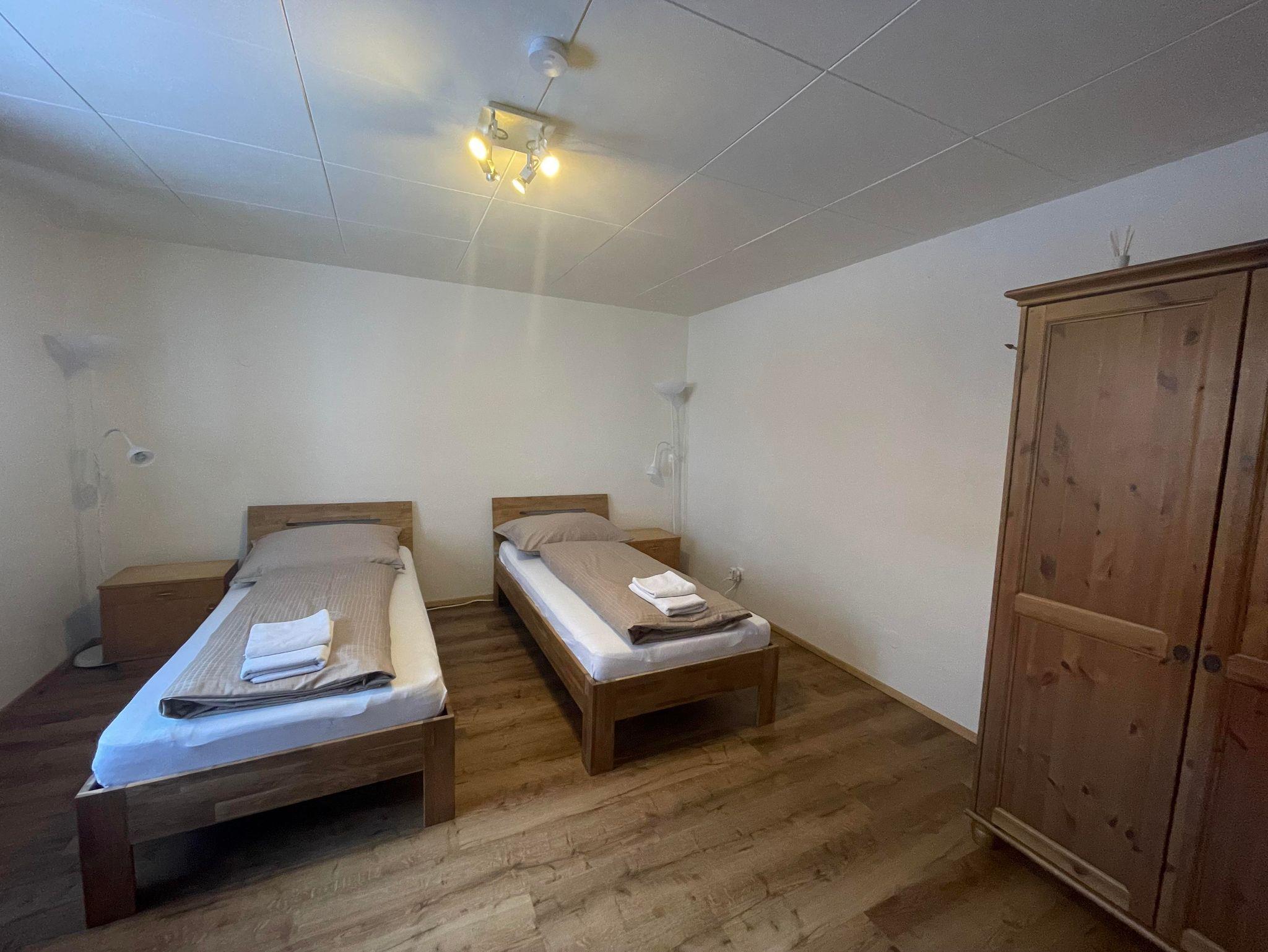 Genießen Sie Ihren Aufenthalt im gemütlichen Zweibettzimmer mit Gemeinschaftsbad! In dem Zimmer haben Sie ein großes Schlafzimmer mit zwei Einzelbetten, Kleiderschrank, Fernseher und Stühlen. Auf dem Flur haben Sie ein Badezimmer, das nur mit einem weiteren Zimmer geteilt wird. Im Badezimmer haben Sie Badewanne, Waschbecken und Toilette. Bettwäsche und Handtücher stellen wir kostenlos zur Verfügung. Sie haben auch Zugang zu einer großen, voll ausgestatteten Gemeinschaftsküche. Sie können gerne den Kühlschrank und andere Geräte benutzen, um Ihre Mahlzeiten zuzubereiten. Wir haben eine Kaffeemaschine für Filterkaffee und Nespresso, die Ihnen zur Verfügung stehen. Wir haben Platz für Ihre Skier sowie einen Skischuhtrockner. In Ihrem Zimmer und im ganzen Haus haben Sie Highspeed-WLAN.