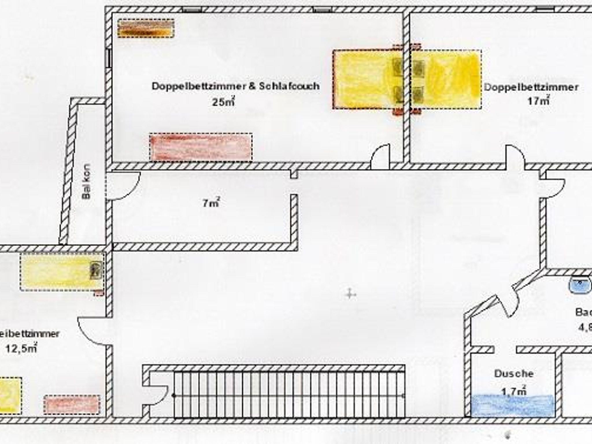 Für einen erholsamen Urlaub hat unser Haus zwei Doppelzimmer, ein Familienzimmer mit Doppelbett und einer Schlafcouch für zwei Personen, sowie ein Zimmer mit zwei Einzelbetten. Die Zimmer sind alle abgetrennt. Somit hat jeder auch seine Rückzugsmöglichkeit. Gerne bieten wir Ihnen ein Brötchenservice zum Frühstück an.