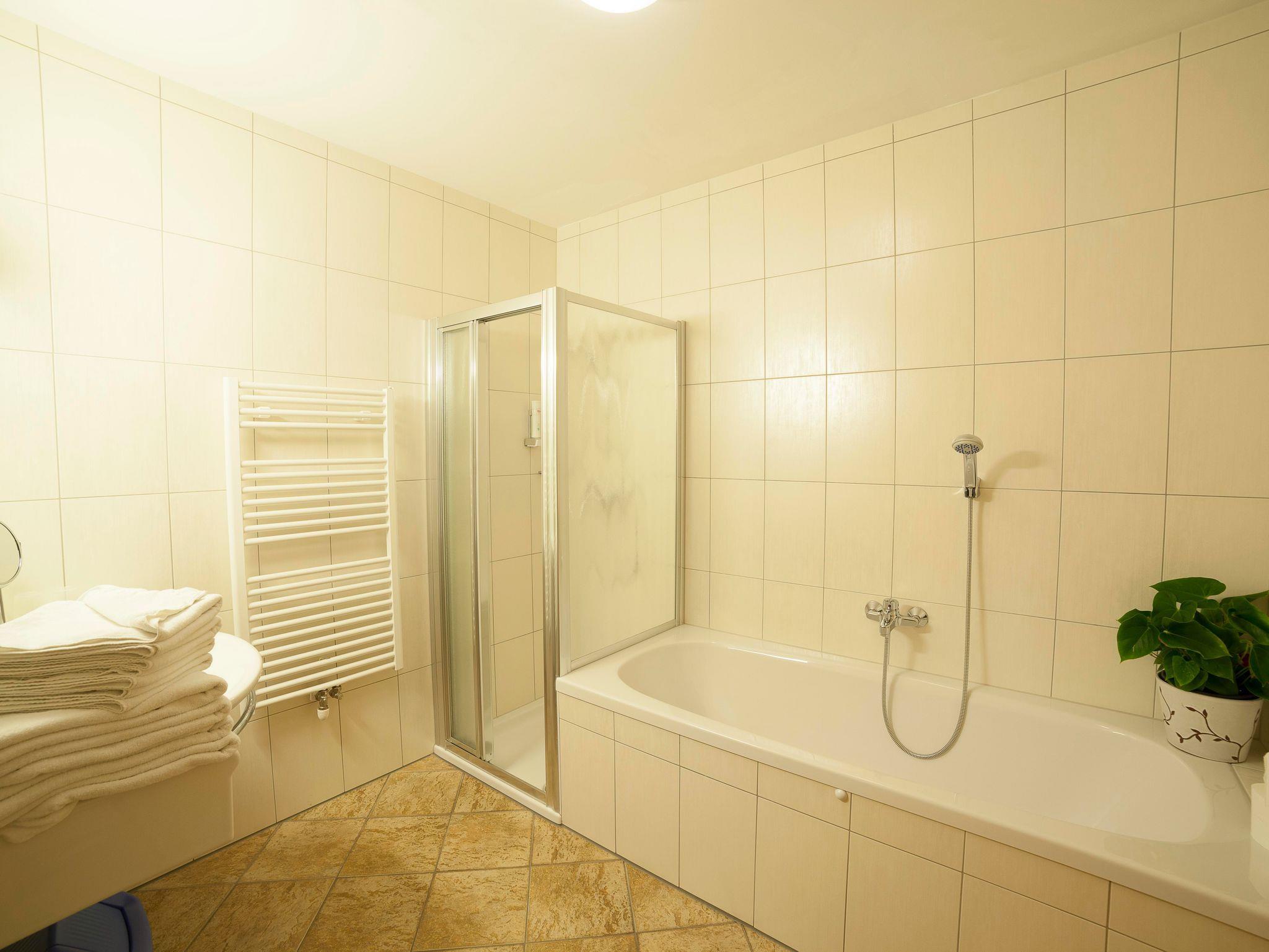 Doppelzimmer 25m² mit Bad Schöner Wellnessbereich mit Sauna, Dampfbad, Infrarotkabine, Erlebnisduschen & Ruhebereich Frühstück & Abendessen auf Wunsch möglich Check in 15.00h/Check out 10.00h
