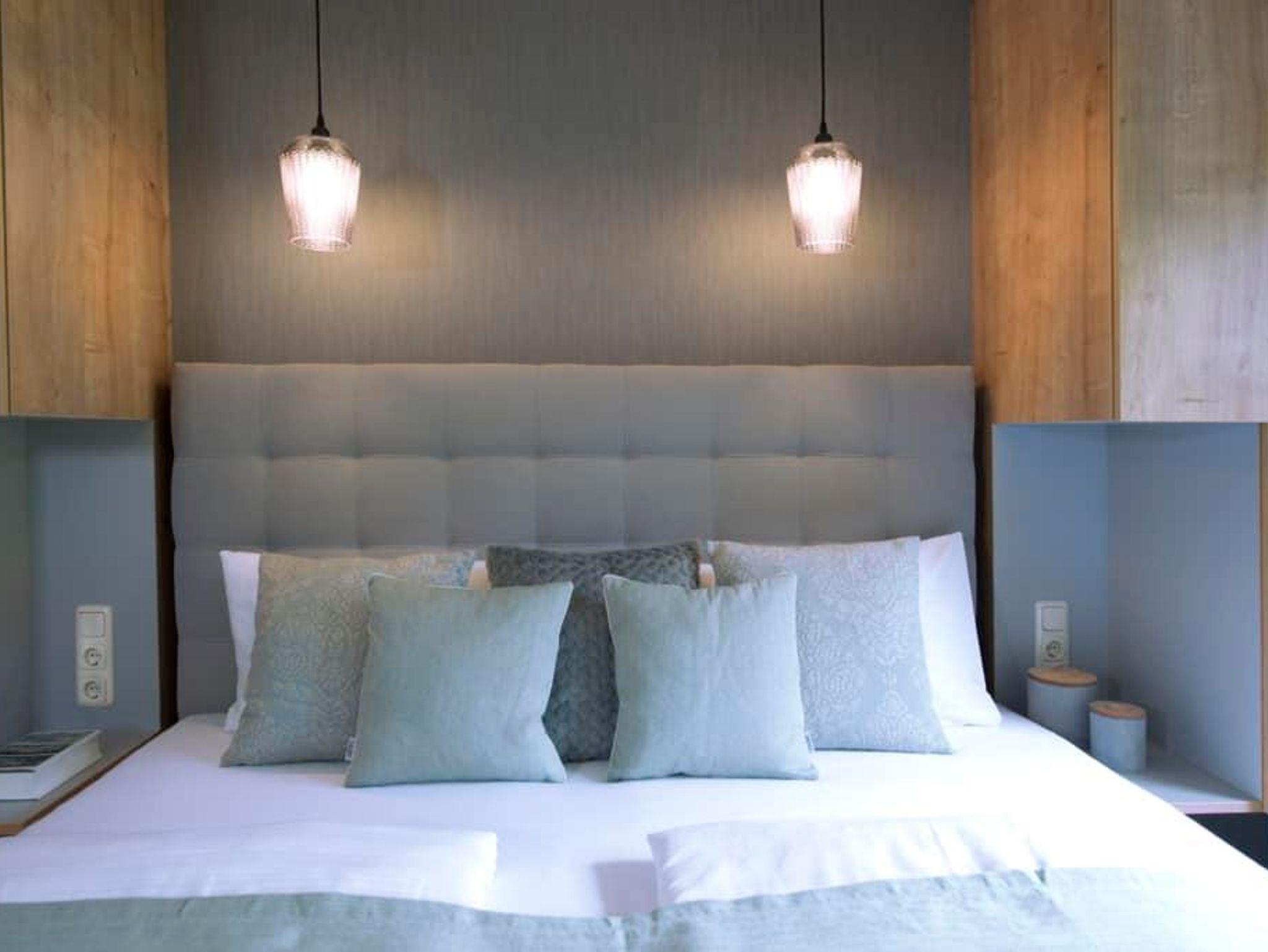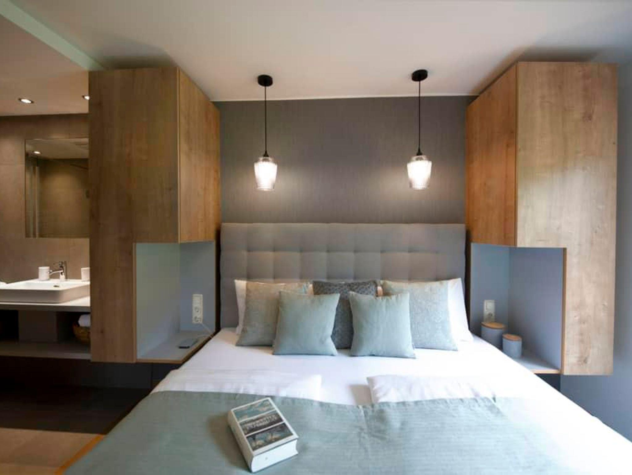 Das Apartment Waage im ersten Stock bietet auf 36 m² Platz für bis zu 4 Personen. Es verfügt über ein Schlafzimmer mit Doppelbett sowie eine Schlafcouch, die ideal für zwei Kinder geeignet ist. Das Schlafzimmer ist mit einem eigenen Badezimmer mit Dusche und WC ausgestattet – für besonderen Komfort und Privatsphäre.