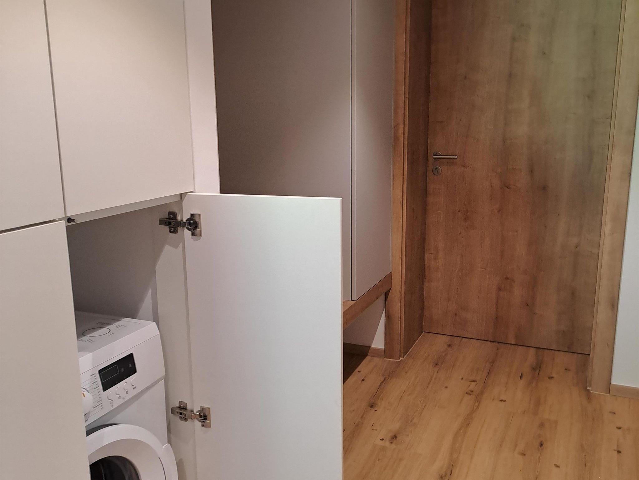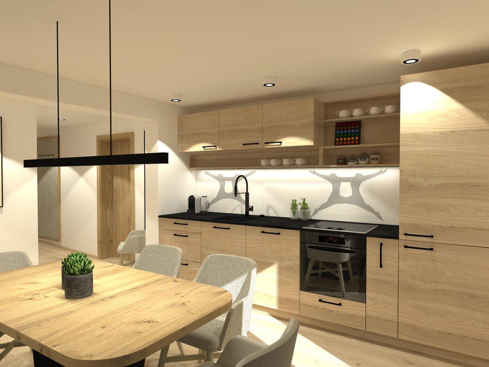 Das großzügige Apartment Zwilling im zweiten Stock bietet auf 78 m² Platz für bis zu 8 Personen. Es verfügt über drei Schlafzimmer mit Doppelbett und 2 Einzelbetten, jeweils mit eigenem Badezimmer mit Dusche und WC – ideal für Privatsphäre und Komfort. Die Wohnküche ist mit einem gemütlichen Esstisch ausgestattet und verfügt über eine moderne Küche mit E-Herd, Geschirrspüler, Espressomaschine und Mikrowelle.