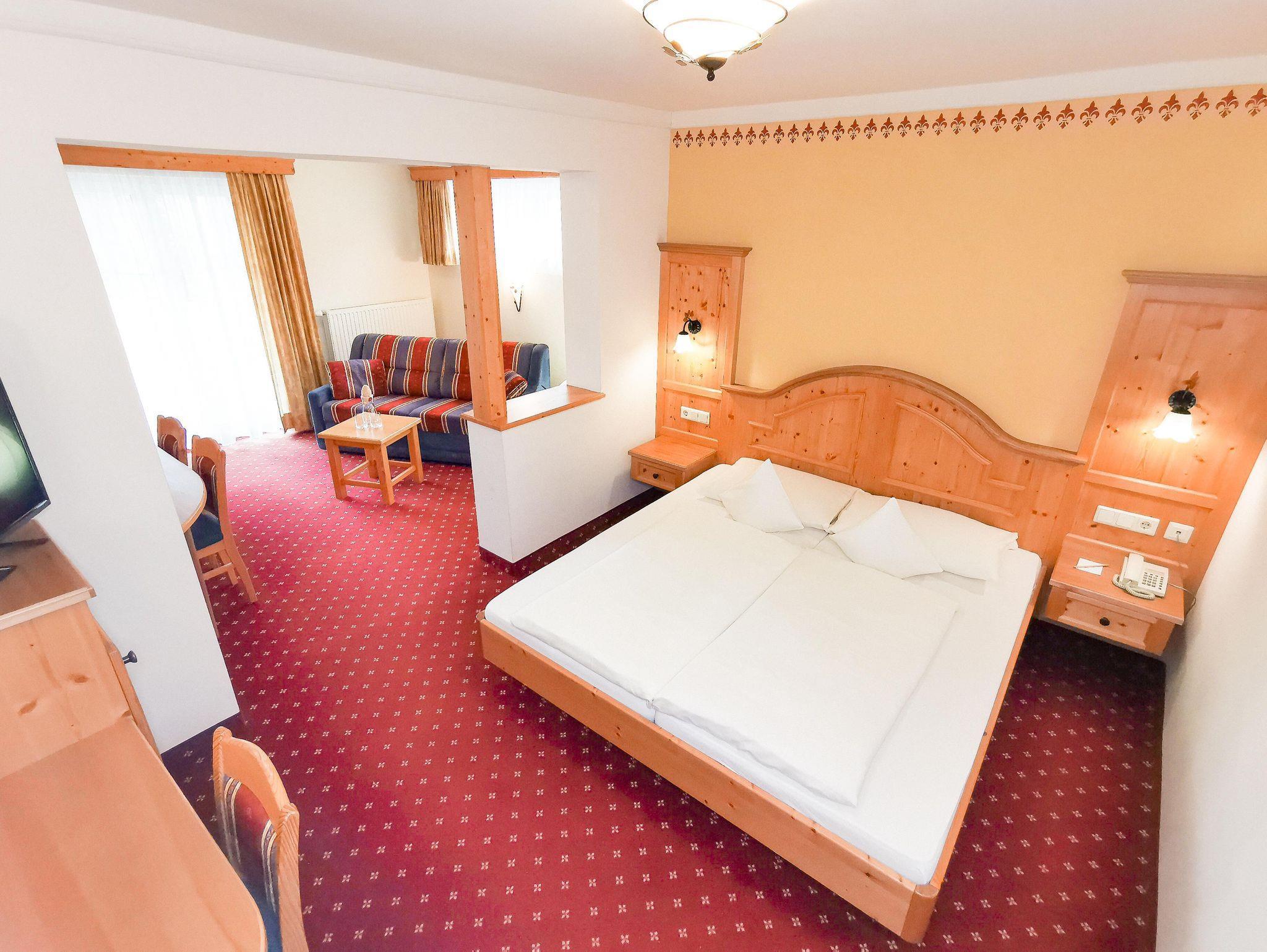 Familien genießen großzügige Zimmer & Studios, den Kinderspielraum im Haus sowie den Garten mit Kleinkinder-Spielturm, Freibad mit beheiztem Außenpool und eigenem Kleinkinderbecken (im Sommer, 3 Gehminuten vom Hotel)