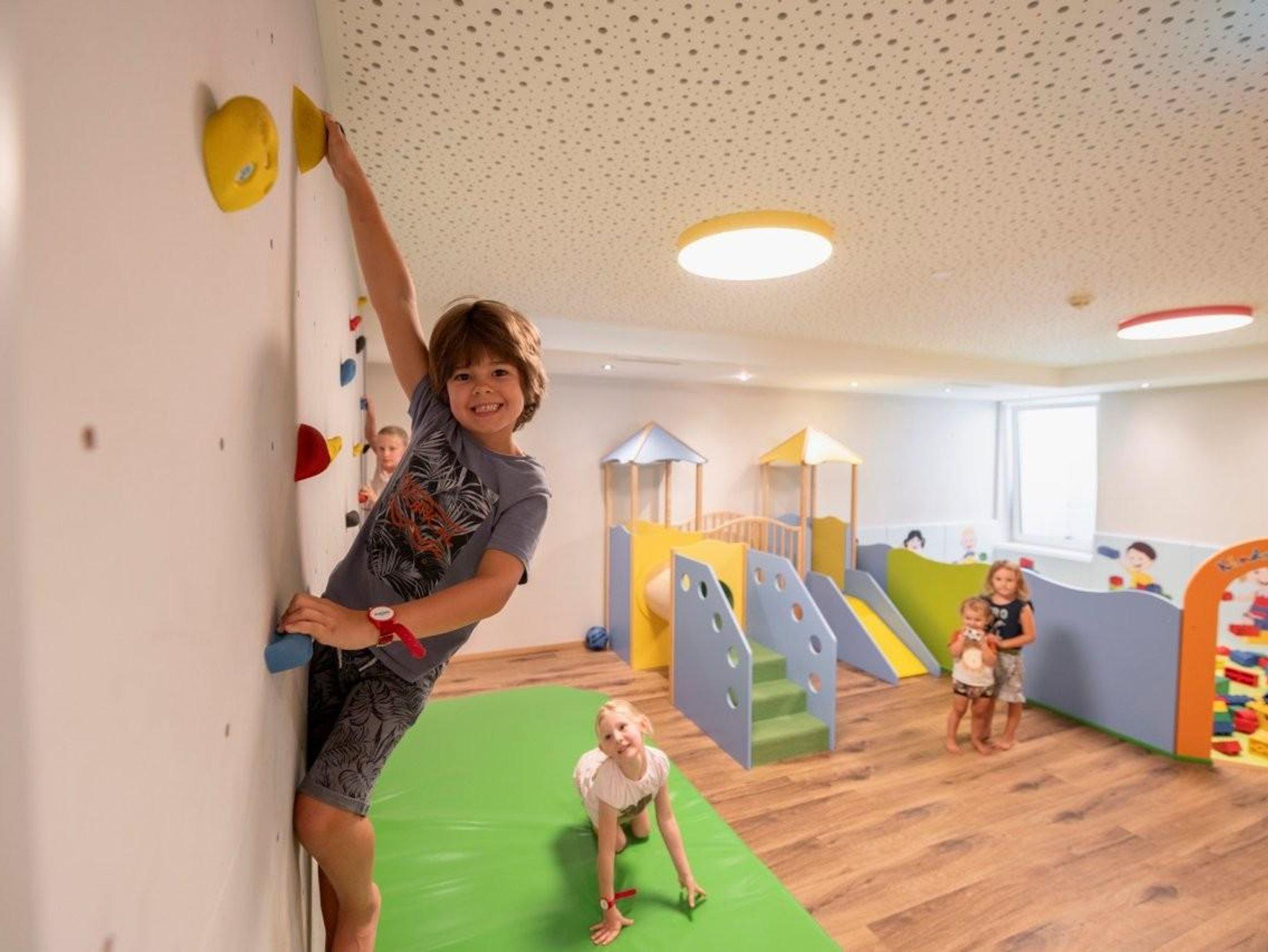 Auf der weitläufigen Liegewiese begeistert der große Spielplatz mit Klettergeräten, Schaukeln und Rutschen. Fußballtore und Gokarts sorgen für Action, während das Indoor-Spielparadies auch an Regentagen für Spaß sorgt.