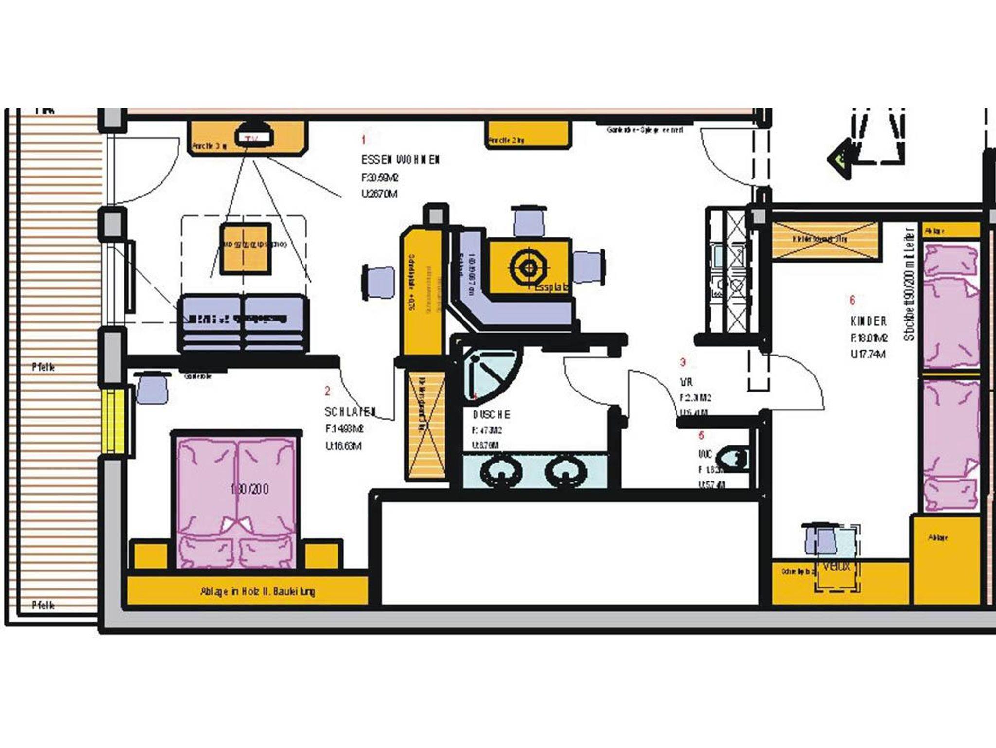 3-Zimmer-Appartement für 1-7 Personen mit 64,50 m², im 2. Obergeschoss, mit Blick auf das Rofangebirge und dem Reintalersee, Fenster u. Balkon: West Ausstattung: 1 Doppelbettzimmer, 1 Kinderzimmer mit 1 Stockbett und 1 Einzelbett, 1 Sofa im Wohnbereich - zum Ausziehen als Doppelbett verwendbar, Küchenbereich mit Kochnische und gemütlicher Eckbank, Bad: Dusche und Doppelwaschbecken, WC extra, Vorraum; inkl. Bettwäsche.