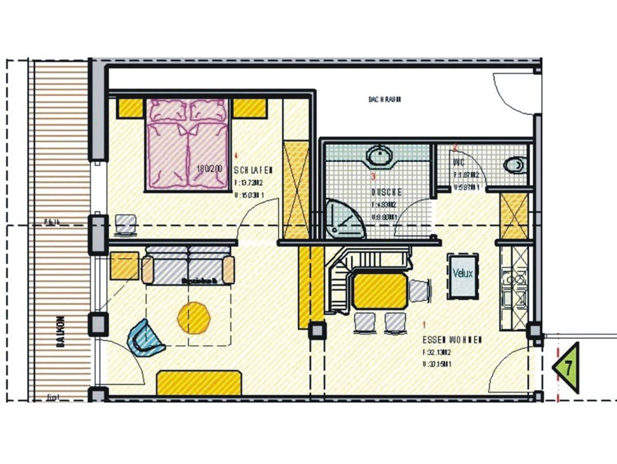 2-Zimmer-Appartement mit 52,55 m², für 1-4 Personen, im 2. Obergeschoss, mit Blick auf das Rofangebirge und dem Reintalersee, Fenster u. Balkon: West Ausstattung: 1 Doppelbettzimmer, 1 Sofa im Wohnbereich - zum Ausziehen als Doppelbett verwendbar, Küchenbereich mit Kochnische und gemütlicher Eckbank, Bad: Dusche und Waschbecken; WC extra, Vorraum; inkl. Bettwäsche.
